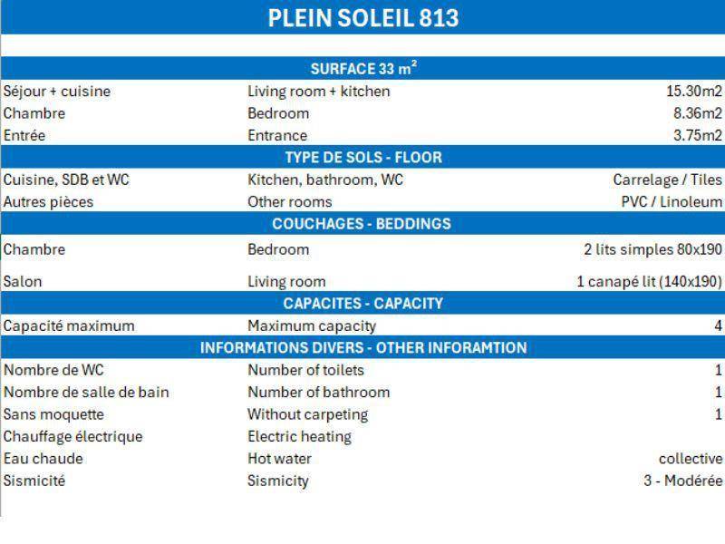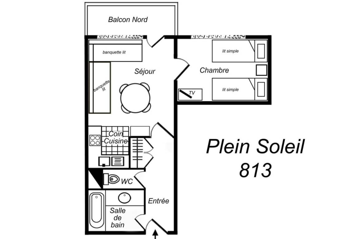 Die Residenz Plein Soleil mit Aufzug liegt ideal in der Nähe von Geschäften, 100 m von der Residenz entfernt. Sie erreichen sie über die Treppe zwischen den Residenzen des Einkaufszentrums von Mottaret. Die nächste Bushaltestelle ist nur 100 m entfernt. Die Residenz bietet zusätzliche Dienstleistungen wie Halbpension im Restaurant Le Grain de Sel und WLAN-Internetzugang. Es gibt auch ein Spielzimmer und eine Rezeption... Fläche von ungefähr 33 m². 1te Etage. Orientierung : Nord. Wohnzimmer mit 2 Sofabetten. Schlafzimmer mit 2 Einzelbetten. Kochnische mit Wasserkocher, Kaffeemaschine (filtre), Backofen, Toaster, Geschirrspülmaschine, 2 elektronische Herdplatten, Kühlschrank. Badezimmer mit Badewanne. separates WC. Balkon.