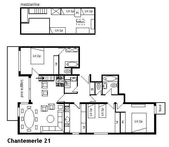 Die Residenz Le Chantemerle mit Aufzug befindet sich am Fuße der Pisten (Ski-in und Ski-out) im Gebiet Le Plateau, etwa 200 m von der Skibushaltestelle (kostenloser Service) entfernt. Skischrank im Gebäude. Fläche von ungefähr 120 m². 4te Etage. Orientierung : Süd. Niveau 0 : Wohnzimmer mit Kamin, TV. Schlafzimmer mit Doppelbett (140*190), Badezimmer, WC. Schlafzimmer mit 2 Einzelbetten. Schlafzimmer mit Doppelbett (160*190). Küche mit Kaffeemaschine (Nespresso), Backofen, kleiner Backofen mit Mikrowellenfunktion, Geschirrspülmaschine, 2 elektronische Herdplatten, Kühl-Gefrier-Kombination. Badezimmer mit Badewanne. Waschräume mit Dusche. WC. Balkon. Loggia. Niveau 1 : Zwischengeschoss mit 3 Einzelbetten (80).