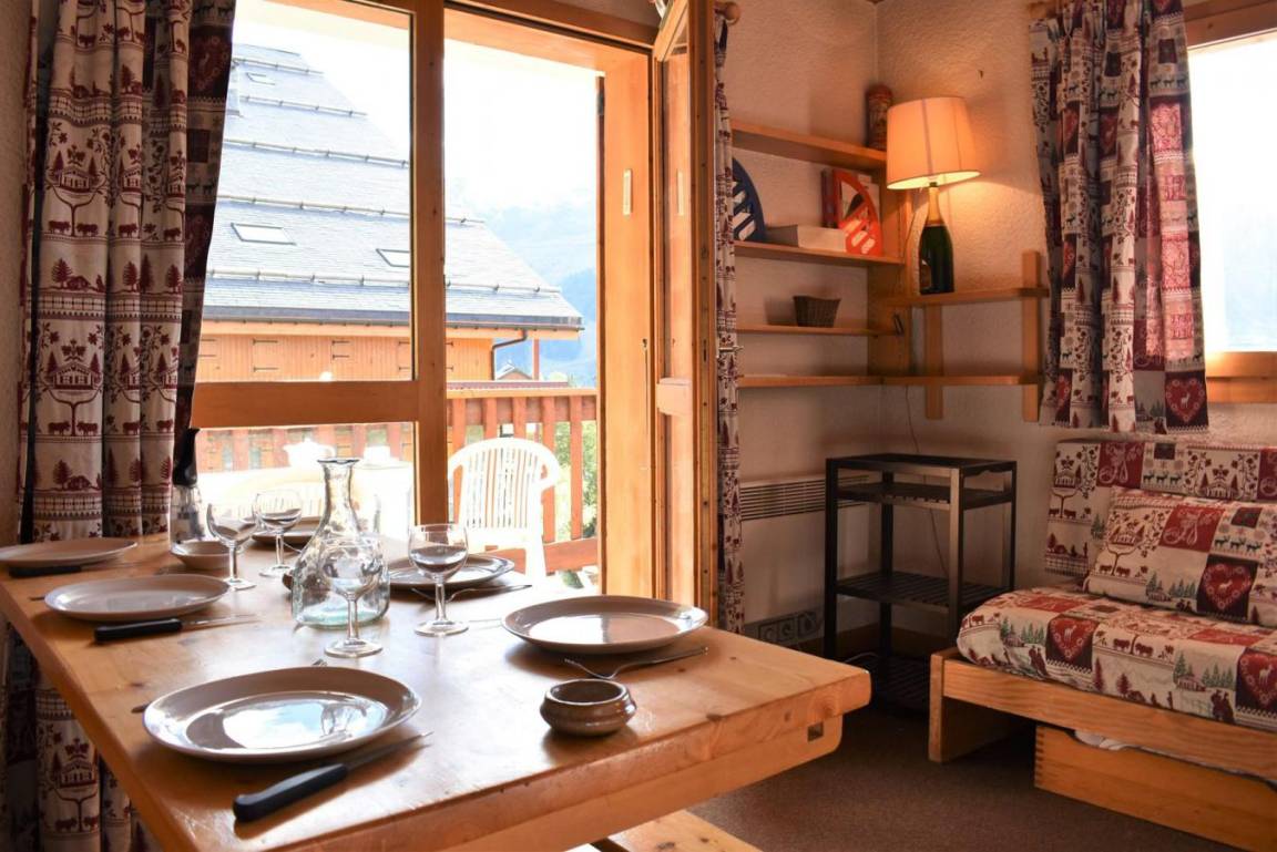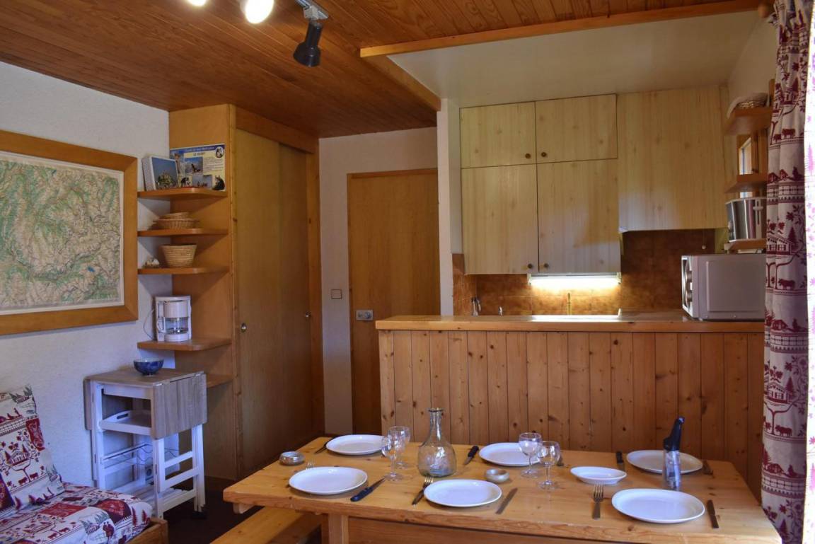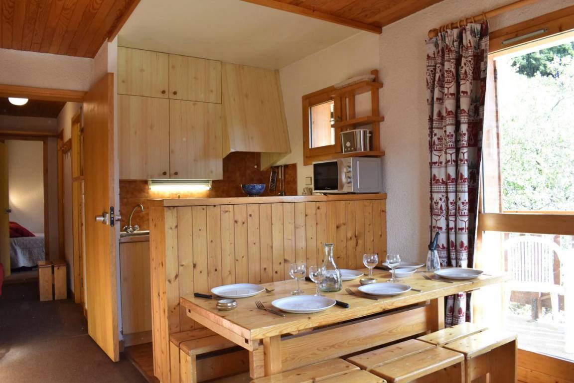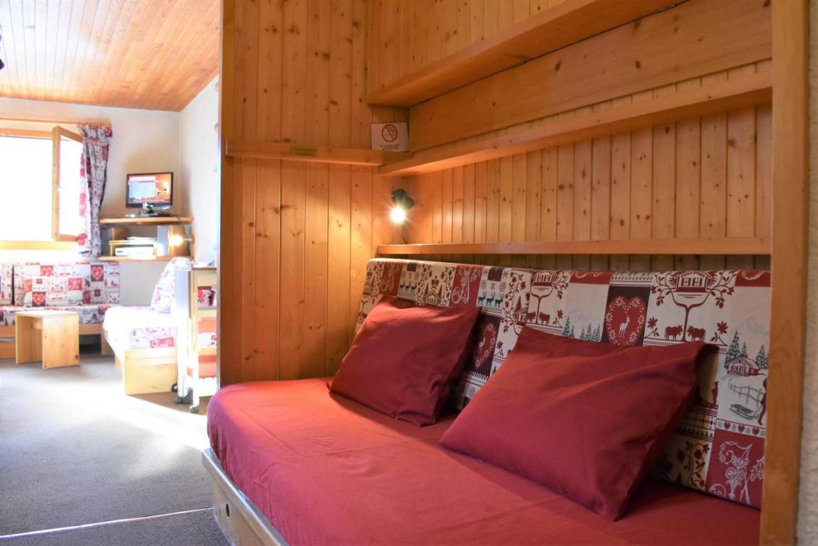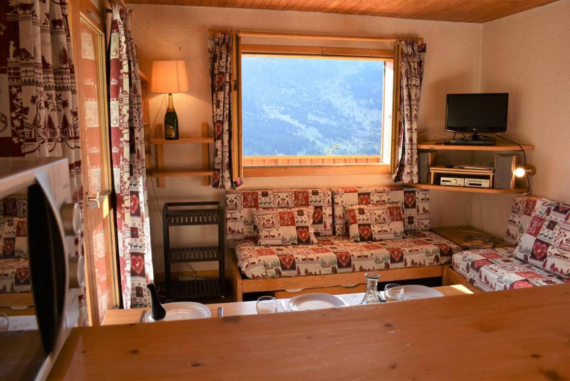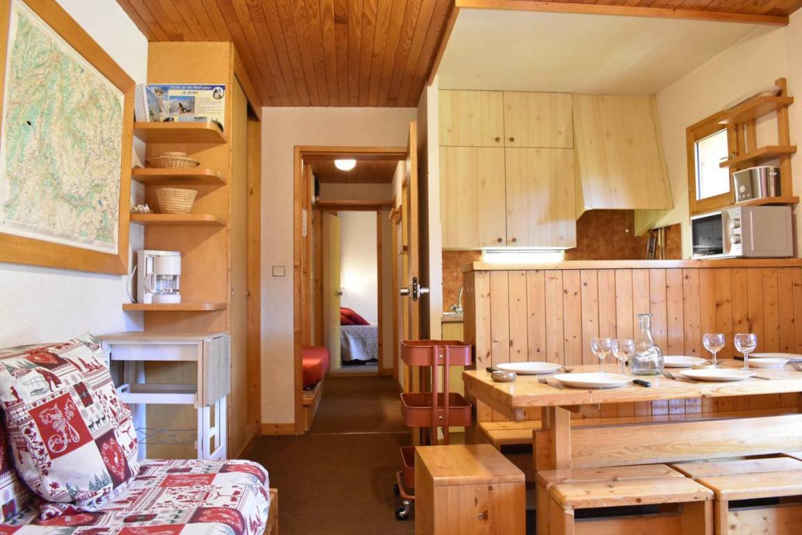 Die Résidence Les Chandonnelles II befindet sich im Plateau-Gebiet von Méribel. Eine Haltestelle des kostenlosen Shuttlebusses befindet sich 200 m entfernt und die Skipisten sind 300 m entfernt. Die Résidence ist mit einem Aufzug ausgestattet. Méribel ist Teil des Skigebiets Les Trois Vallées. Fläche von ungefähr 33 m². 2te Etage. Orientierung : Süd-West. Diele mit Einzelbett (80). Wohnzimmer mit 2 Ausziehbetten (80). Schlafzimmer mit 2 Einzelbetten (80). Kochnische mit kleiner Backofen mit Mikrowellenfunktion, Geschirrspülmaschine, 2 elektronische Herdplatten, Kühlschrank. Badezimmer. separates WC. Balkon.