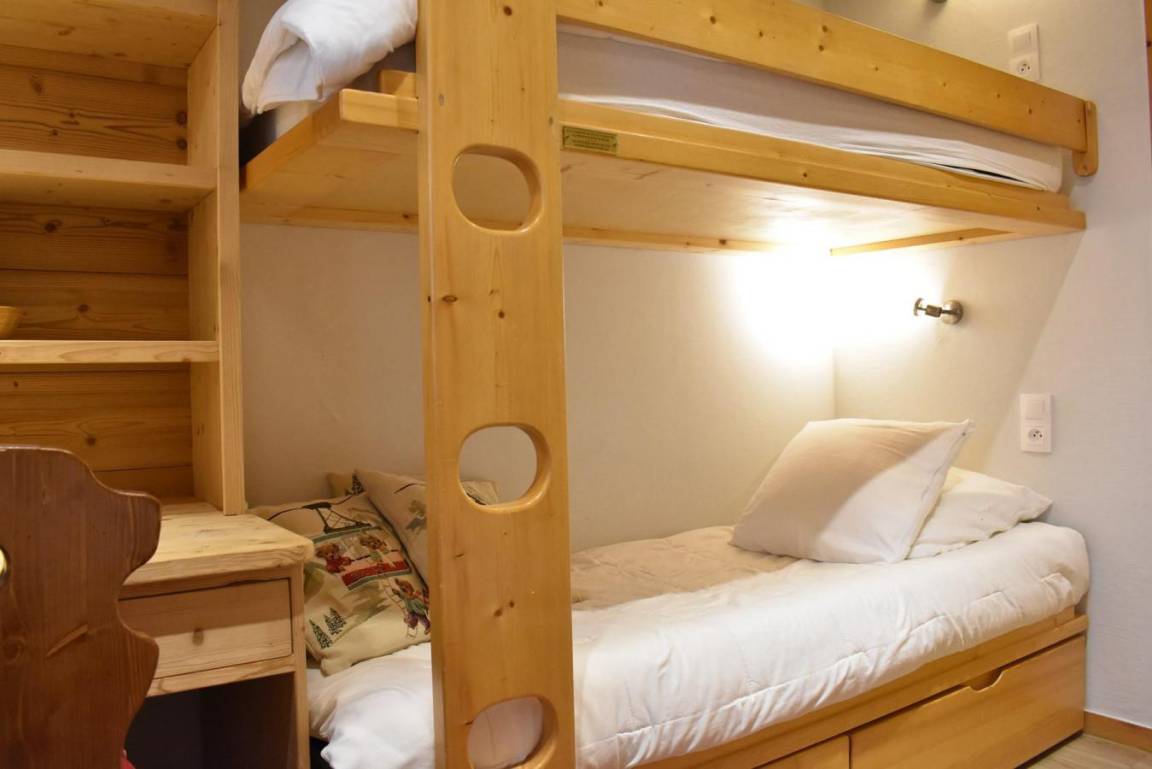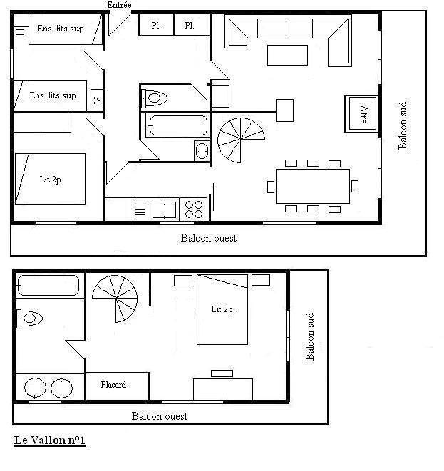 Die Residenz Le Vallon liegt im Zentrum von Méribel, etwa 50 m von der Skibushaltestelle (kostenloser Service) entfernt und am Fuße der Skipisten. Jedes Studio oder Apartment verfügt über einen Balkon und einen Skischrank. Muriel liegt im Skigebiet Drei Täler. Fläche von ungefähr 105 m². Orientierung : Süd-West. Niveau 0 : Wohnzimmer mit Kamin. Schlafzimmer mit Doppelbett (140*190). Schlafzimmer mit 4 Stockbetten (80*190). Kochnische mit kleiner Backofen mit Mikrowellenfunktion, Waschmaschine, Geschirrspülmaschine, Glaskeramikkochfelder, Kühlschrank. Badezimmer. WC mit Waschbecken. Balkon. Niveau 1 : Schlafzimmer mit Balkon, Doppelbett (160*200). Badezimmer mit WC. Die oberen Betten sind nicht für Kinder unter 6 Jahren geeignet.