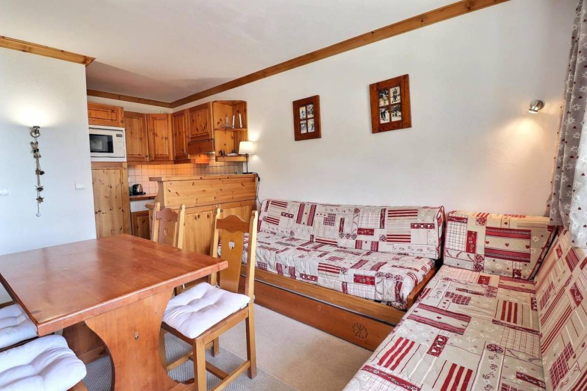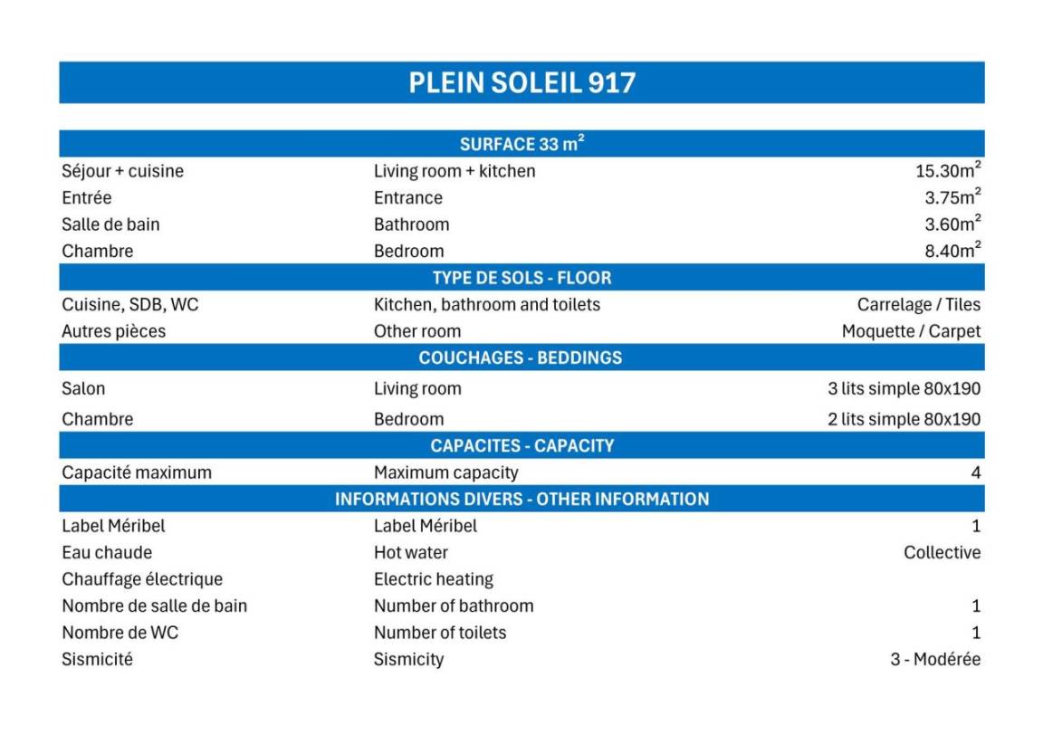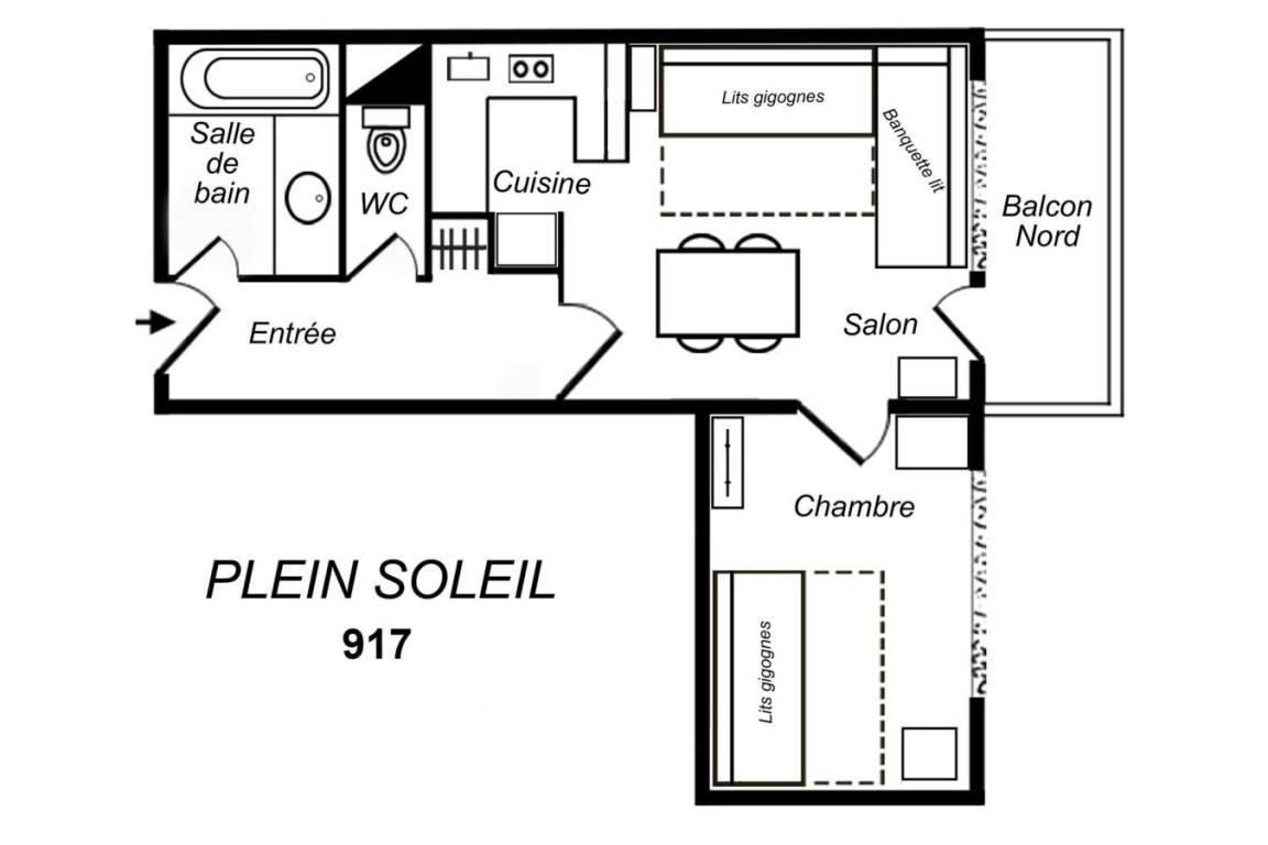 Die Residenz Plein Soleil mit Aufzug liegt ideal in der Nähe von Geschäften, 100 m von der Residenz entfernt. Sie erreichen sie über die Treppe zwischen den Residenzen des Einkaufszentrums von Mottaret. Die nächste Bushaltestelle ist nur 100 m entfernt. Die Residenz bietet zusätzliche Dienstleistungen wie Halbpension im Restaurant Le Grain de Sel und WLAN-Internetzugang. Es gibt auch ein Spielzimmer und eine Rezeption... Fläche von ungefähr 33 m². 9te Etage. Orientierung : Nord. Wohnzimmer mit einfache Klappschlafcouch, Ausziehsofas. Schlafzimmer mit Ausziehsofas. Kochnische mit Wasserkocher, Kaffeemaschine, kleiner Backofen mit Mikrowellenfunktion, Toaster, Dunstabzugshaube, Geschirrspülmaschine, 2 Glaskeramikkochfelder, Kühlschrank. Badezimmer. separates WC. Balkon. Waschmaschine.