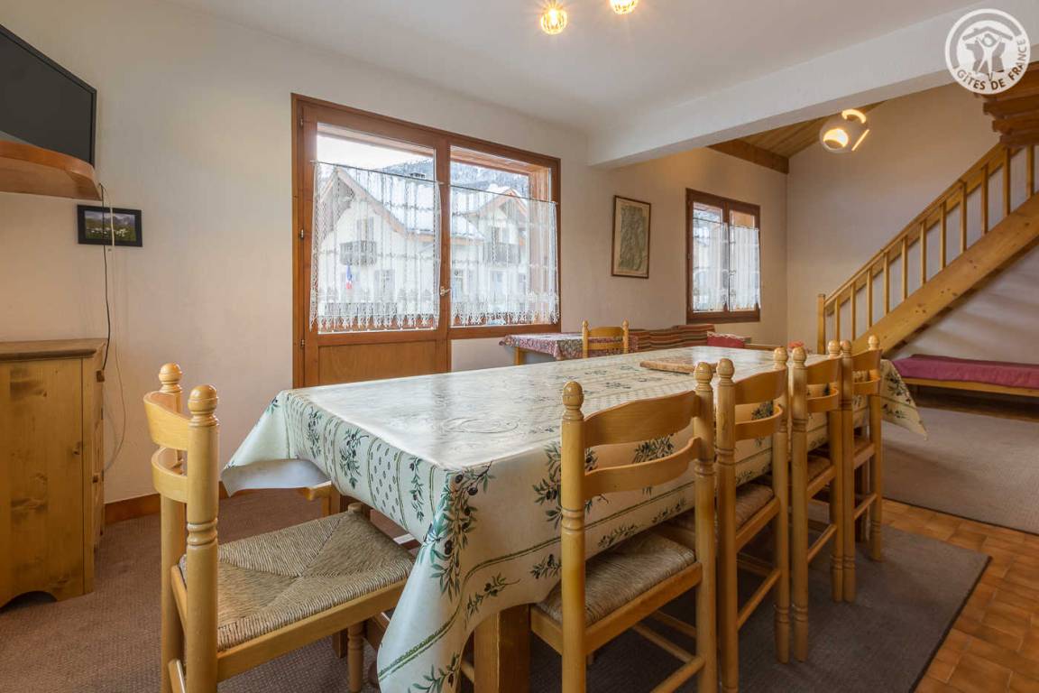 „Le gîte est particulièrement adapté à une (grande) famille ou un groupe d'amis skieurs. Il est vaste, bien équipé, doté d'un grand local à skis (cave). La literie est de qualité. Trois sdb, c'est pratique. La navette pour les pistes est à moins de 10 minutes à pied, la télécabine à un quart d'heure. Un loueur sur place, une petite supérette, des bars/restaurants. Seul bémol: Le lit double annoncé en mezzanine est plutôt dans un couloir sous rampants, entre un escalier et une chambre, à côté des toilettes, sans aucune intimité. A réserver à de solides dormeurs... Mais dans l'ensemble, une très bonne adresse !“