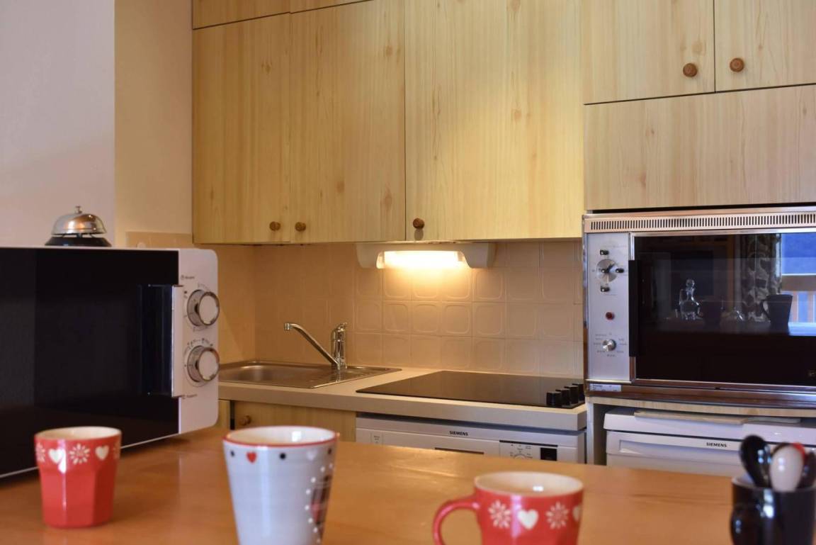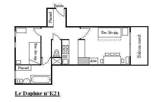 Die Residence Le Daphné liegt im Plateau-Gebiet von Méribel. Eine Haltestelle des kostenlosen Shuttlebusses befindet sich 100 m entfernt und die Skipisten sind 300 m entfernt. Méribel ist Teil des Skigebiets Drei Täler. Fläche von ungefähr 35 m². 4te Etage. Orientierung : West. Wohnzimmer mit Ausziehschlafcouch für 2 Personen. Schlafzimmer mit 2 Stockbetten, Ausziehbett. Kochnische mit kleiner Backofen mit Mikrowellenfunktion, Geschirrspülmaschine, 4 elektronische Herdplatten, Kühlschrank. Badezimmer mit Waschmaschine. WC. Balkon. Die oberen Betten sind nicht für Kinder unter 6 Jahren geeignet.