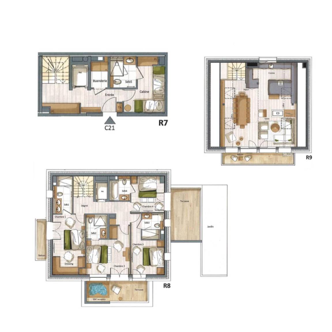 Fläche von ungefähr 171 m². Einige als Maisonette. 2te Etage. Orientierung : Süd, West. Blick berg. Niveau 0 : Waschküche mit Waschmaschine. mit 4 Stockbetten, , WC. Aufzug. Niveau 1 : Schlafzimmer mit Balkon, Doppelbett, , Haartrockner, Handtuchtrockner, WC. Schlafzimmer mit (avec jacuzzi), Doppelbett, , Haartrockner, Handtuchtrockner, WC. Schlafzimmer mit Doppelbett, , Haartrockner, Handtuchtrockner, WC. Schlafzimmer mit Ankleideraum, Doppelbett, , Haartrockner, Handtuchtrockner, WC. Terrasse mit Whirlpool. Terrasse-Garden. Niveau 2 : Wohnzimmer mit Kamin. Küche mit Wasserkocher, Kaffeemaschine (Nespresso), Backofen, Toaster, Dunstabzugshaube, Geschirrspülmaschine, Herdplatten, , Kühlschrank. Balkon. Die oberen Betten sind nicht für Kinder unter 6 Jahren geeignet.