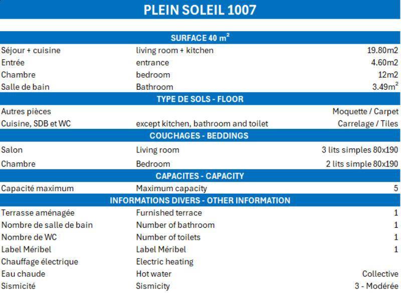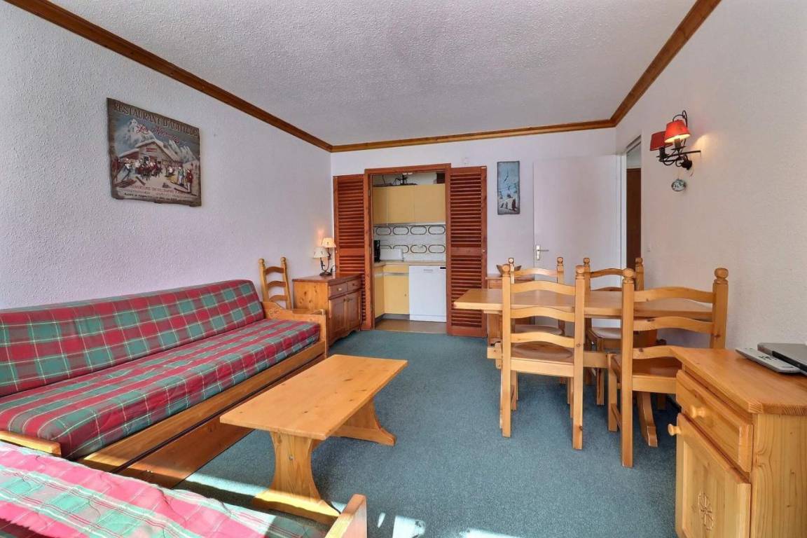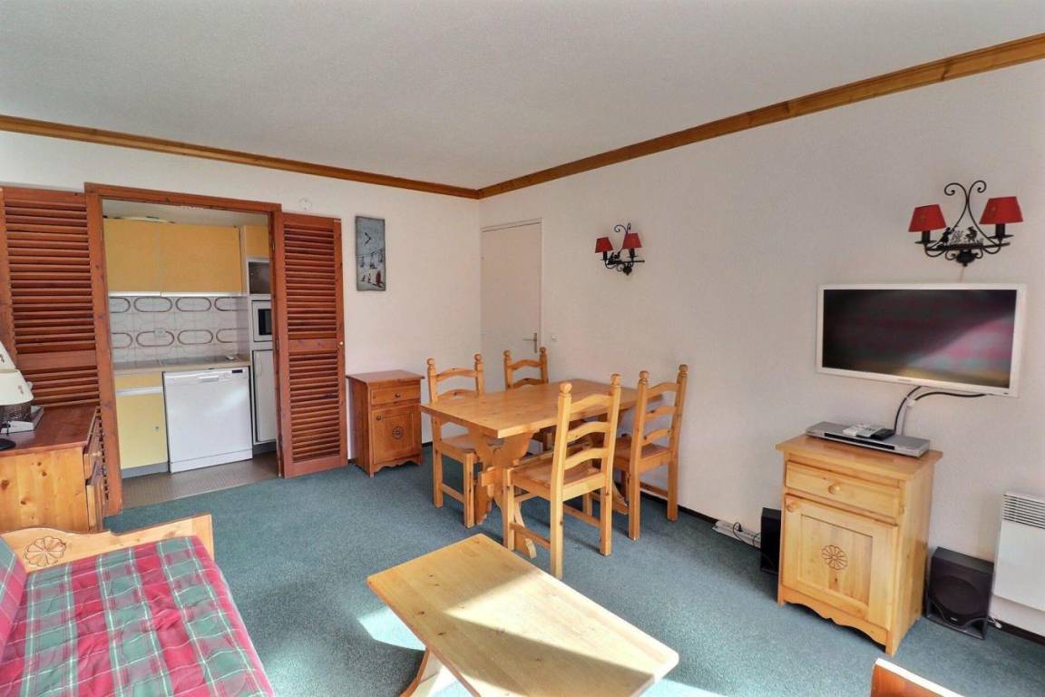 Die Residenz Plein Soleil mit Aufzug liegt ideal in der Nähe von Geschäften, 100 m von der Residenz entfernt. Sie erreichen sie über die Treppe zwischen den Residenzen des Einkaufszentrums von Mottaret. Die nächste Bushaltestelle ist nur 100 m entfernt. Die Residenz bietet zusätzliche Dienstleistungen wie Halbpension im Restaurant Le Grain de Sel und WLAN-Internetzugang. Es gibt auch ein Spielzimmer und eine Rezeption... Fläche von ungefähr 40 m². 1te Etage. Orientierung : Süd. Wohnzimmer mit einfache Klappschlafcouch (80*190), Ausziehschlafcouch für 2 Personen (80*190). Schlafzimmer mit Doppelbett, 2 Einzelbetten. Küche mit Wasserkocher, Kaffeemaschine, Toaster, Geschirrspülmaschine, Mikrowellenherd, 4 elektronische Herdplatten, Kühlschrank. separates WC. Badezimmer mit Badewanne. Balkon.