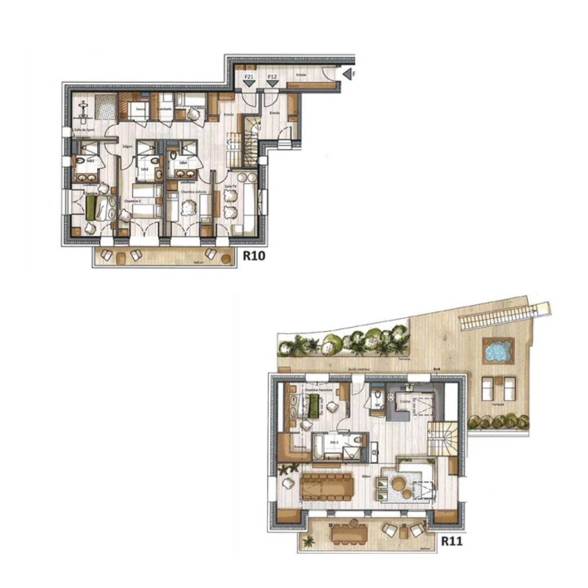Fläche von ungefähr 206 m². Einige als Maisonette. 2te Etage. Orientierung : Nord, Ost, West. Blick berg. Niveau 0 : Schlafzimmer mit Doppelbett, , Haartrockner, Handtuchtrockner, WC. Schlafzimmer mit Doppelbett (séparable), , Haartrockner, Handtuchtrockner, WC. offener Schlafbereich mit 2 Stockbetten. Badezimmer mit Haartrockner, Handtuchtrockner, WC. Waschküche mit Waschmaschine, Wäschetrockner. Balkon. mit 4 Stockbetten. Sauna. . . Niveau 1 : Wohnzimmer mit Kamin. Mansardenzimmer mit Ankleideraum, Doppelbett, (baignoire et douche), Haartrockner, Handtuchtrockner, WC. Küche mit Wasserkocher, Kaffeemaschine (Nespresso), Backofen, Toaster, Dunstabzugshaube, Geschirrspülmaschine, Herdplatten, , Kühlschrank. separates WC. Terrasse mit Whirlpool. Die oberen Betten sind nicht für Kinder unter 6 Jahren geeignet.