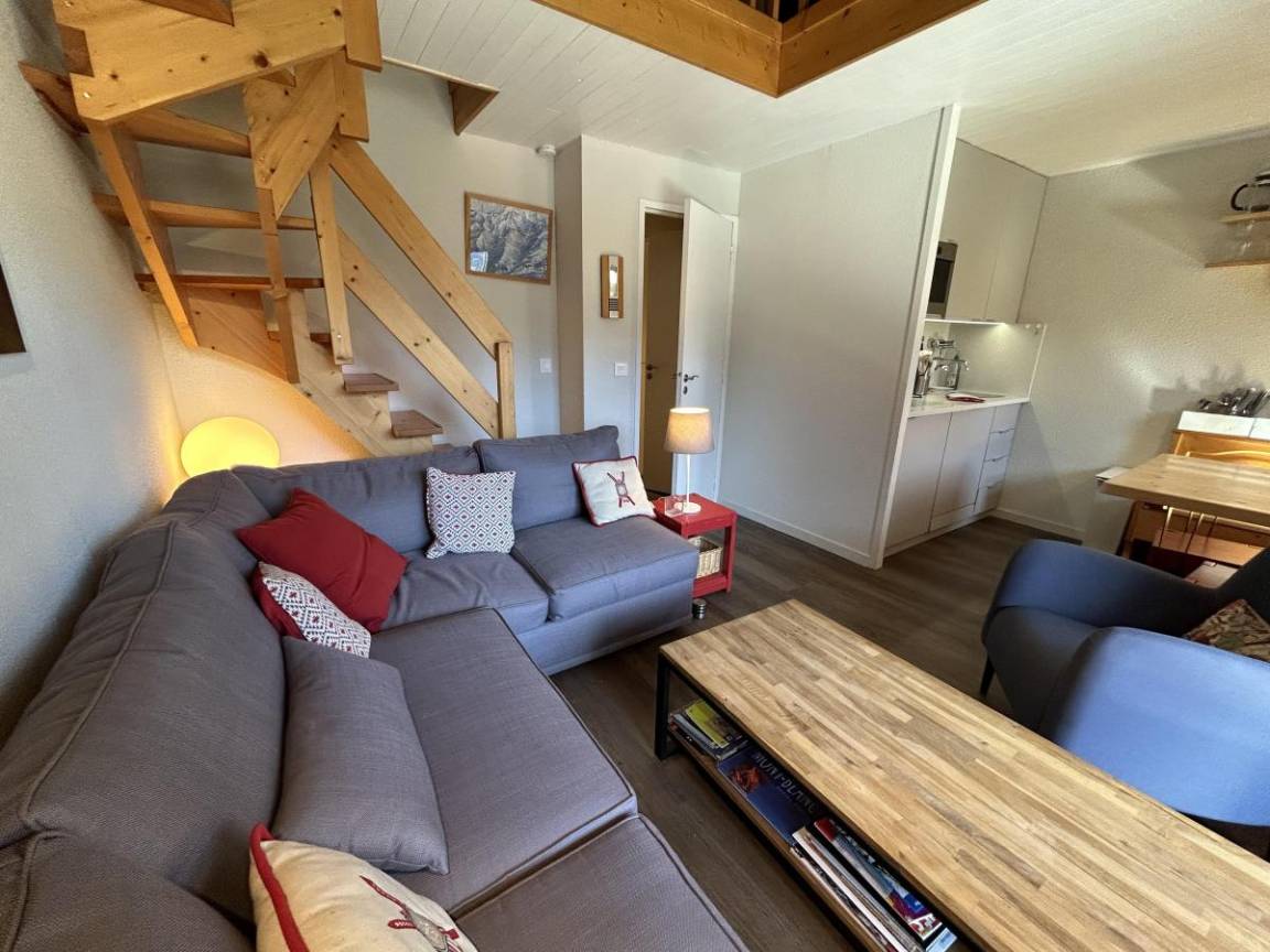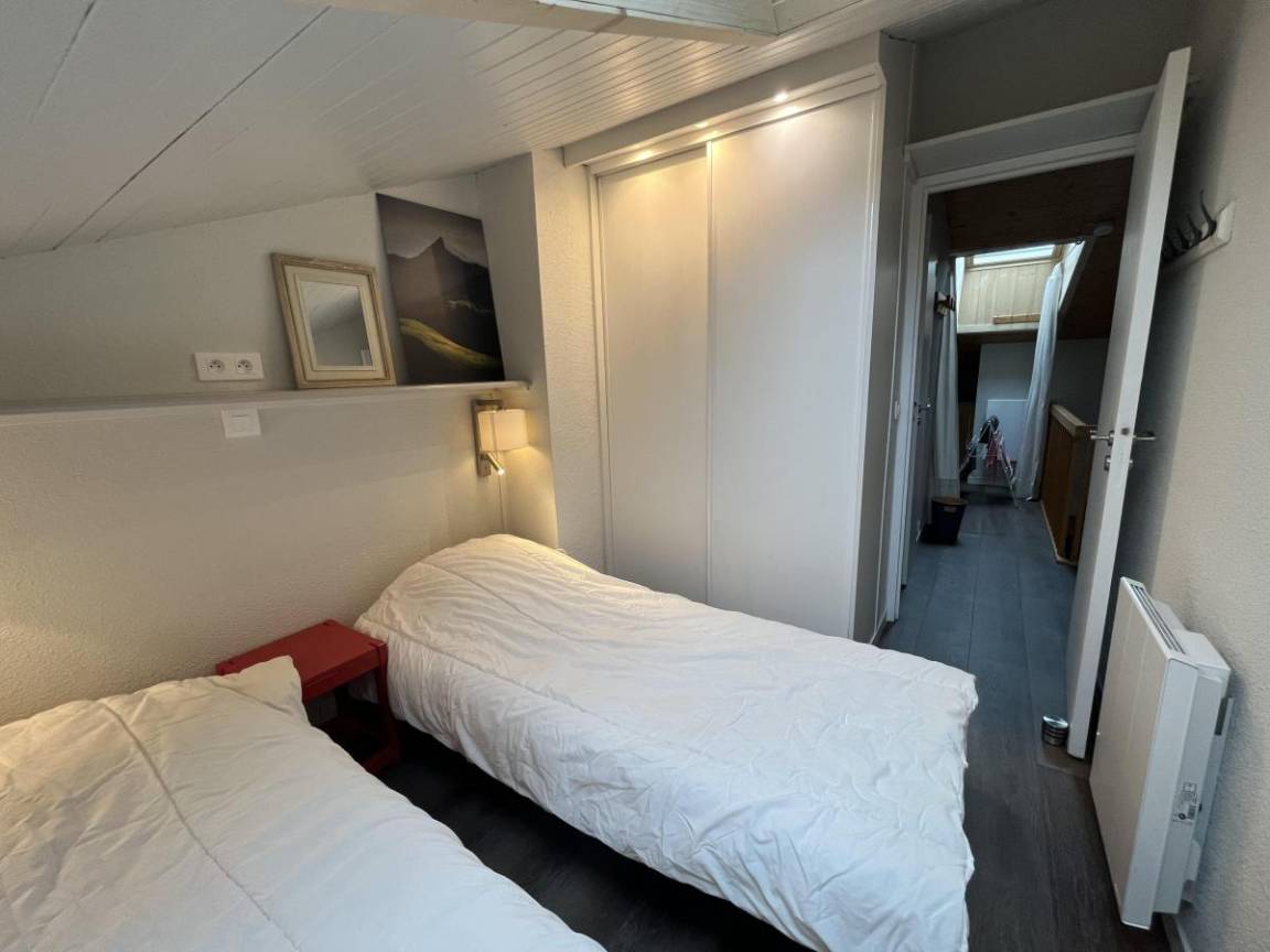 Fläche von ungefähr 51 m². 1te Etage. Orientierung : Nord, Süd, Süd-West. Blick tal. Diele. Wohnzimmer mit Heizkörper. Schlafzimmer mit Einzelbett (80x190), Heizkörper. Schlafzimmer mit Doppelbett (140x190), Heizkörper. Schlafzimmer mit 2 Einzelbetten (80x190). Schlafzimmer mit 2 Einzelbetten (80x190), Heizkörper. Zwischengeschoss mit DVD-Spieler, Einzelbett (80x190), Heizkörper. Küche mit Kaffeemaschine, Toaster, Mikrowellenherd, Mixer, Induktionsherdplatten, Kühlschrank, Tisch. 2 Badezimmer. WC. Balkon.