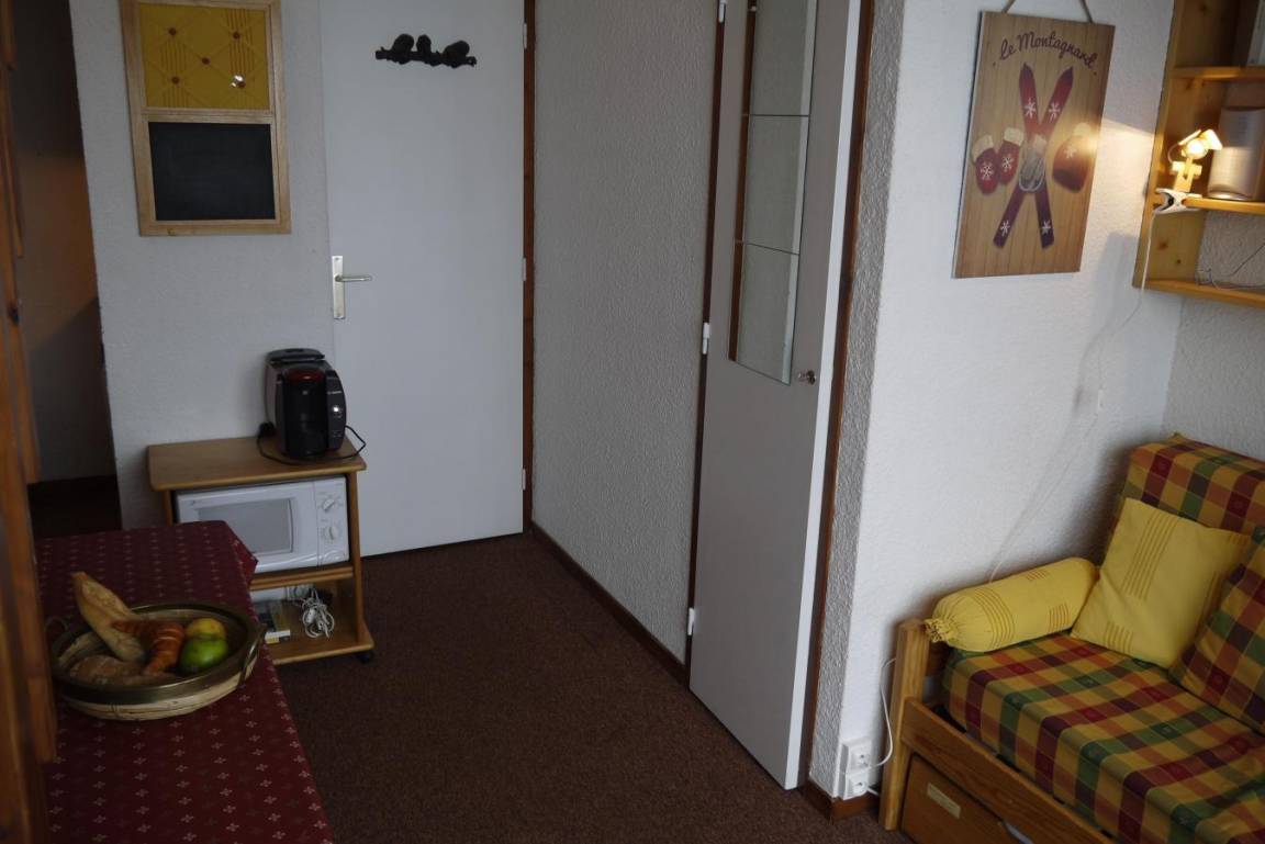 Fläche von ungefähr 30 m². 5te Etage. Orientierung : Nord-Ost. Blick tal. Diele. Wohnzimmer mit einfache Klappschlafcouch, Hi-Fi, Ausziehschlafcouch für 2 Personen, Heizkörper. Zwischengeschoss mit Ausziehschlafcouch für 2 Personen, Einzelbett (90x190), Heizkörper. Küche mit Kaffeemaschine, Backofen, kleiner Backofen mit Mikrowellenfunktion, Toaster, Glaskeramikkochfelder, Kühlschrank. Badezimmer. WC. Balkon.