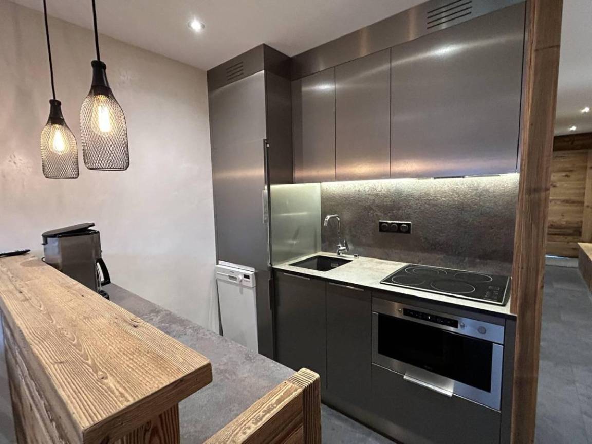 Fläche von ungefähr 30 m². Etage -2. Orientierung : Süd. Blick berg. Wohnzimmer mit Klappschlafcouch (140x190), TV. Schlafzimmer mit 4 Stockbetten (80x190). offene Küche mit Fonduegerät, Raclettegerät, Wasserkocher, Kaffeemaschine (filtre), kleiner Backofen mit Mikrowellenfunktion, Toaster. Badezimmer mit Waschmaschine, Haartrockner, Wäschetrockner, Handtuchtrockner, WC. Balkon. Die oberen Betten sind nicht für Kinder unter 6 Jahren geeignet.