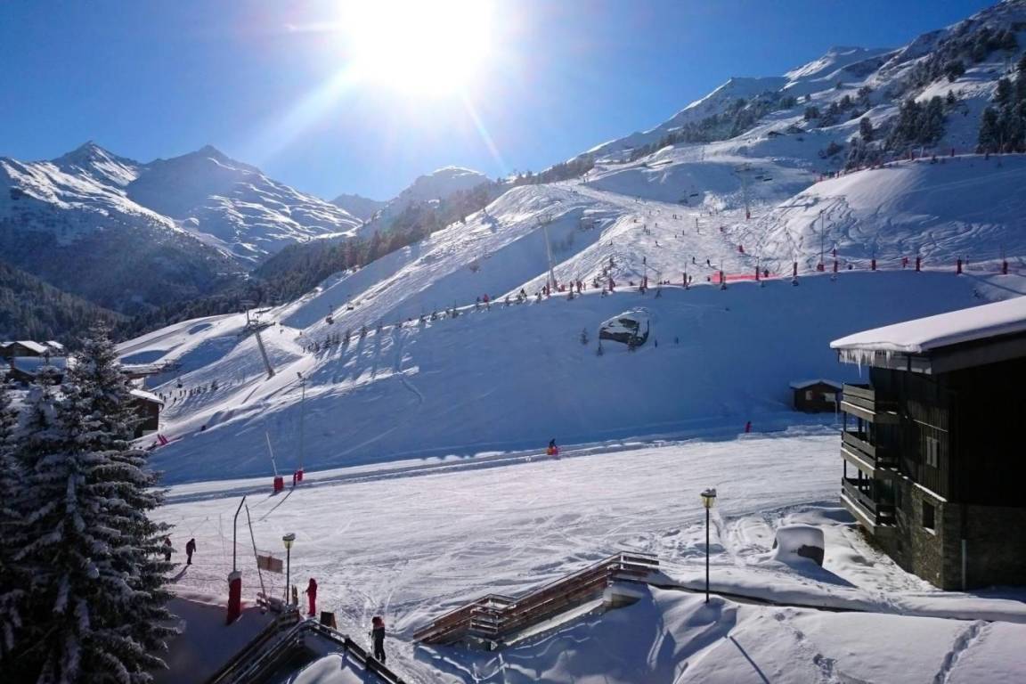 Die Residenz Plein Soleil mit Aufzug liegt ideal in der Nähe von Geschäften, 100 m von der Residenz entfernt. Sie erreichen sie über die Treppe zwischen den Residenzen des Einkaufszentrums von Mottaret. Die nächste Bushaltestelle ist nur 100 m entfernt. Die Residenz bietet zusätzliche Dienstleistungen wie Halbpension im Restaurant Le Grain de Sel und WLAN-Internetzugang. Es gibt auch ein Spielzimmer und eine Rezeption... Fläche von ungefähr 40 m². 5te Etage. Orientierung : Nord, Süd. Wohnzimmer mit einfache Klappschlafcouch, 2 Ausziehbetten. Schlafzimmer mit 2 Einzelbetten. Kochnische mit Wasserkocher, Kaffeemaschine, kleiner Backofen mit Mikrowellenfunktion, Toaster, Dunstabzugshaube, Geschirrspülmaschine, 4 elektronische Herdplatten, Kühlschrank. Badezimmer mit Badewanne. separates WC. Balkon.
