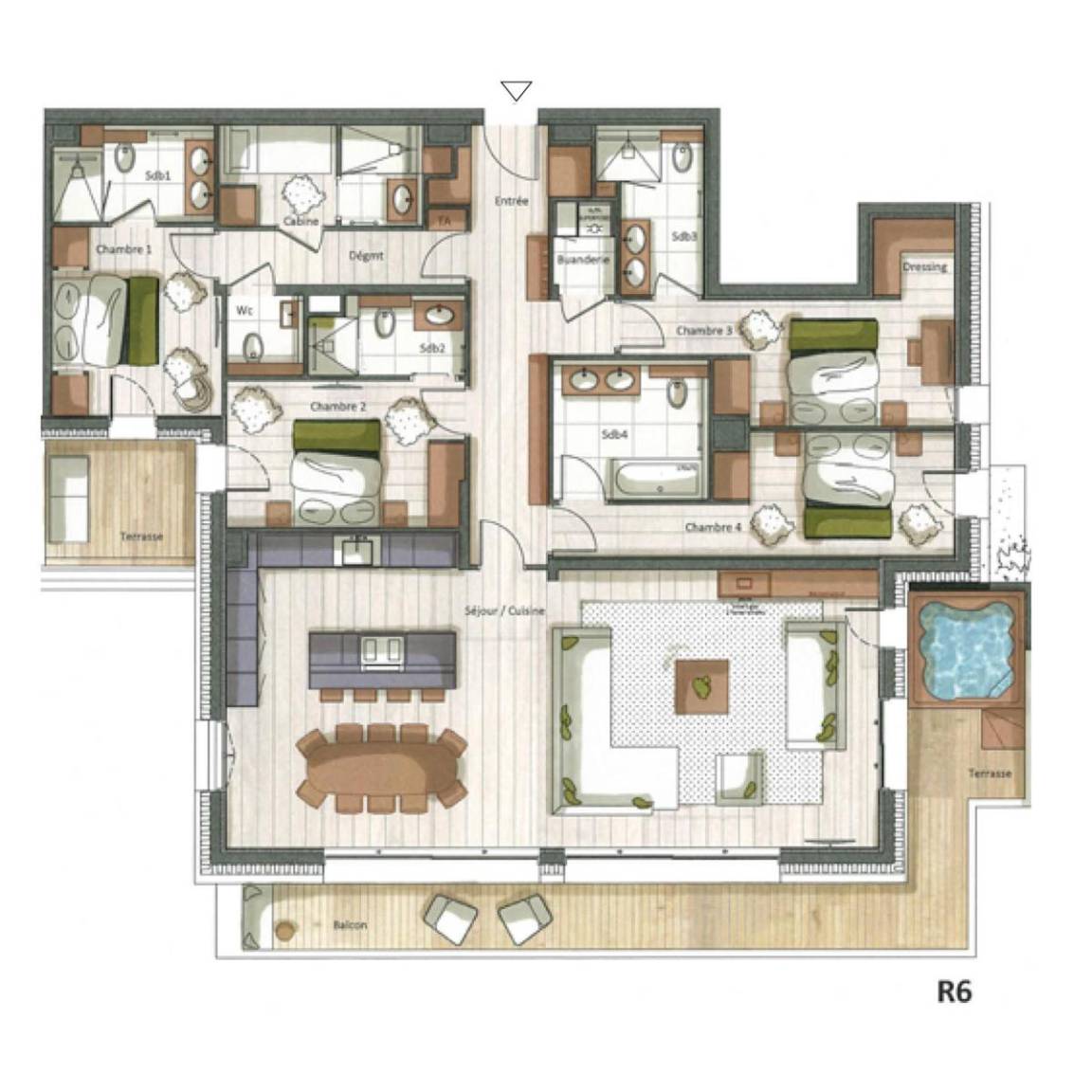 Fläche von ungefähr 168 m². 1te Etage. Orientierung : Süd, West. Wohnzimmer mit Ethanol-Kamin. 2 Schlafzimmer mit Doppelbett, , Haartrockner, Handtuchtrockner, WC. Schlafzimmer mit Ankleideraum, Doppelbett, , Haartrockner, Handtuchtrockner, WC. Schlafzimmer mit Doppelbett, , Haartrockner, Handtuchtrockner, WC. offener Schlafbereich mit 2 Stockbetten, , Haartrockner, Handtuchtrockner. Küche mit Wasserkocher, Kaffeemaschine (Nespresso), Backofen, Toaster, Dunstabzugshaube, Geschirrspülmaschine, Herdplatten, , Kühlschrank. Waschküche mit Waschmaschine. separates WC. Terrasse mit Whirlpool. Die oberen Betten sind nicht für Kinder unter 6 Jahren geeignet.