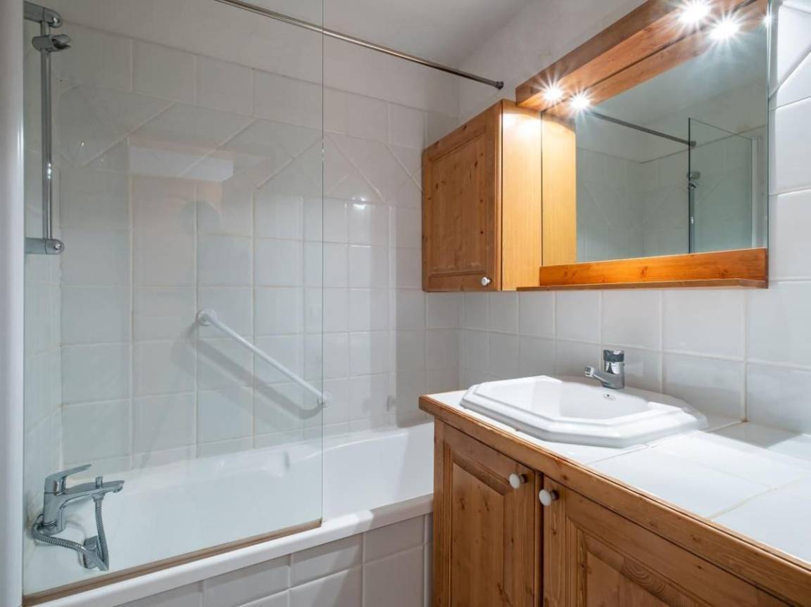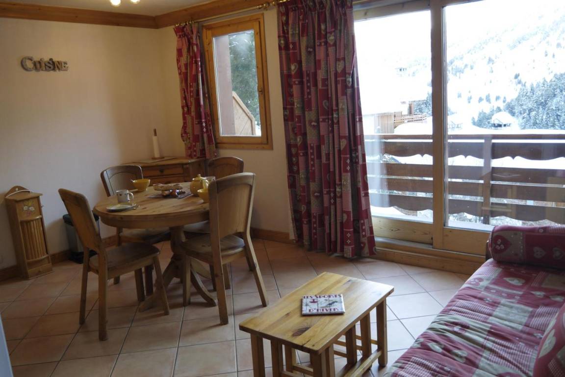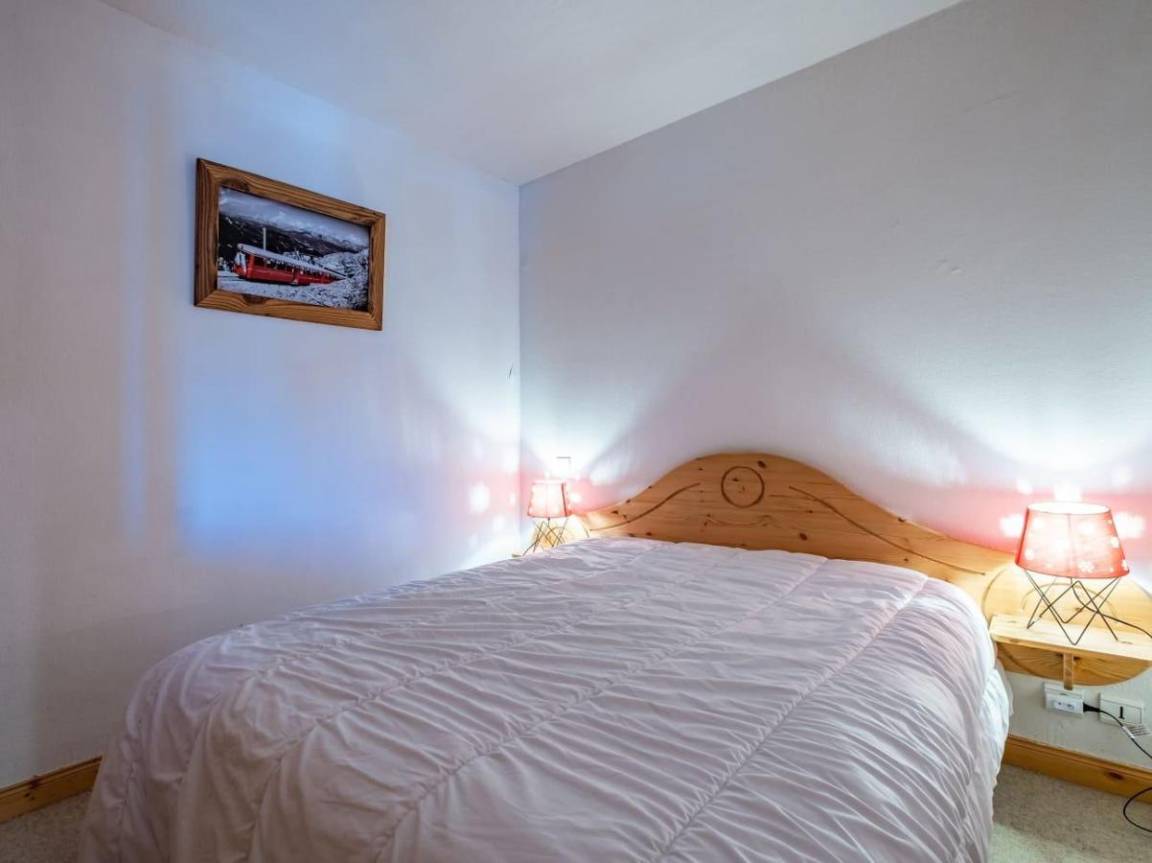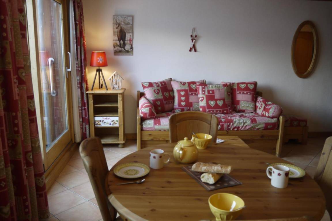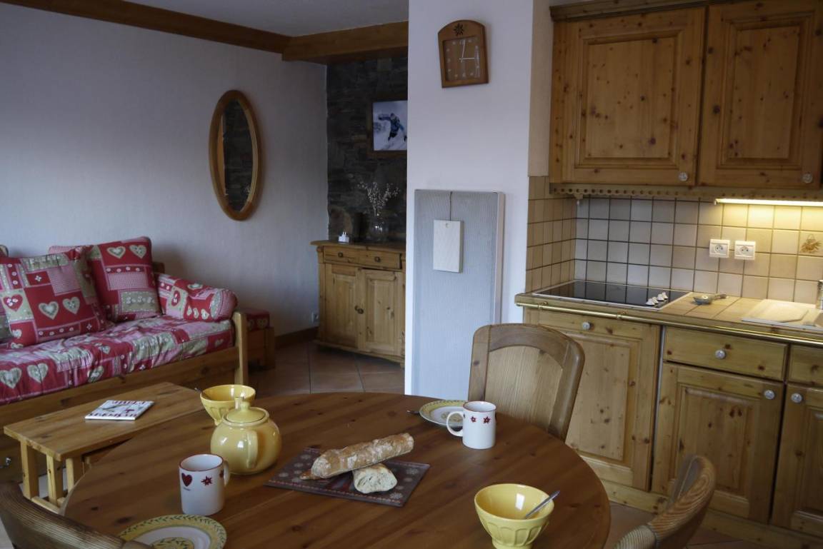 Fläche von ungefähr 44 m². 3te Etage. Orientierung : Süd. Blick berg. Diele. Wohnzimmer mit einfache Klappschlafcouch, Ausziehschlafcouch für 2 Personen, Heizkörper. Schlafzimmer mit Doppelbett (140x190), Heizkörper. offener Schlafbereich mit 2 Stockbetten, Heizkörper. Küche mit Raclettegerät, Kaffeemaschine, kleiner Backofen mit Mikrowellenfunktion, Toaster, Mixer, Glaskeramikkochfelder, Kühlschrank. Badezimmer. separates WC. Balkon. Die oberen Betten sind nicht für Kinder unter 6 Jahren geeignet.