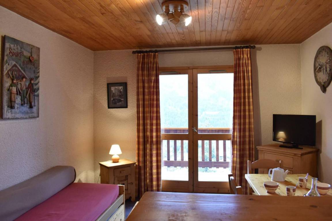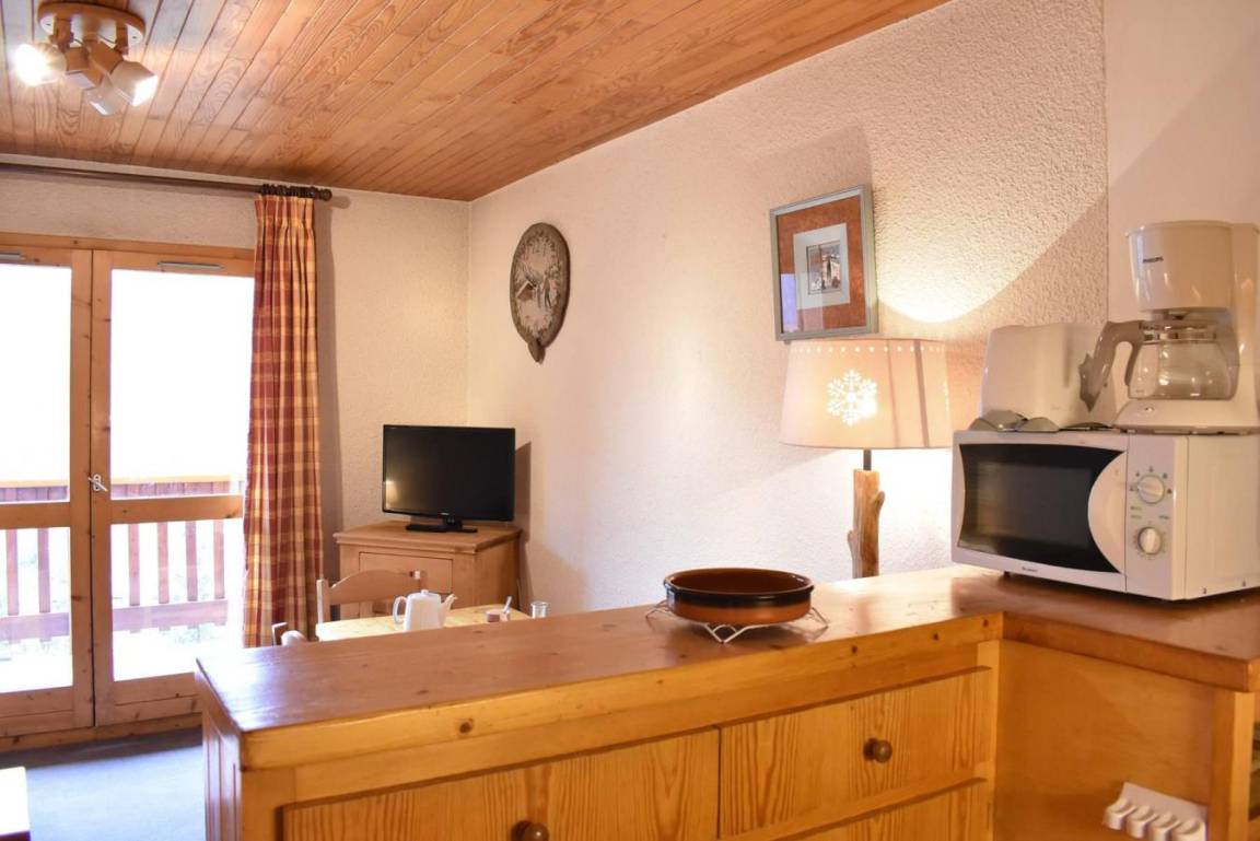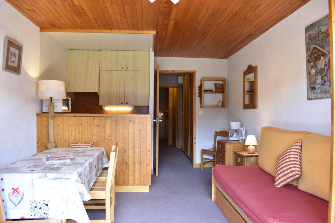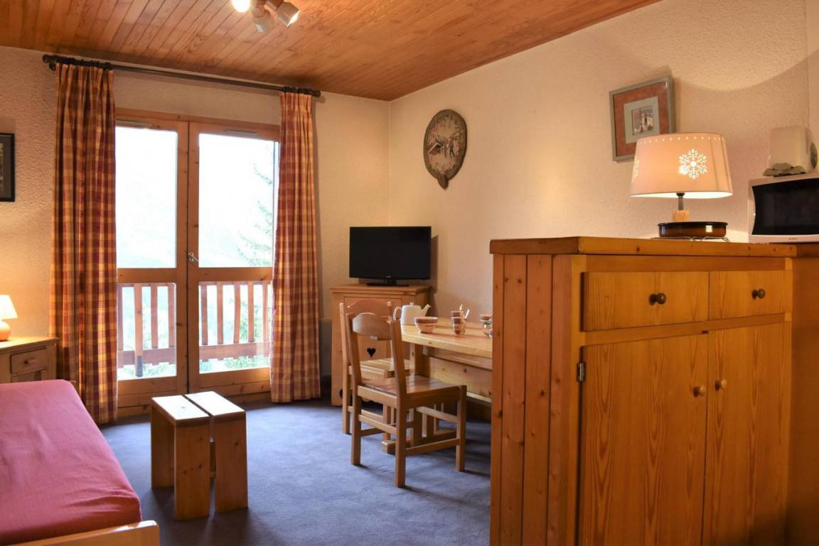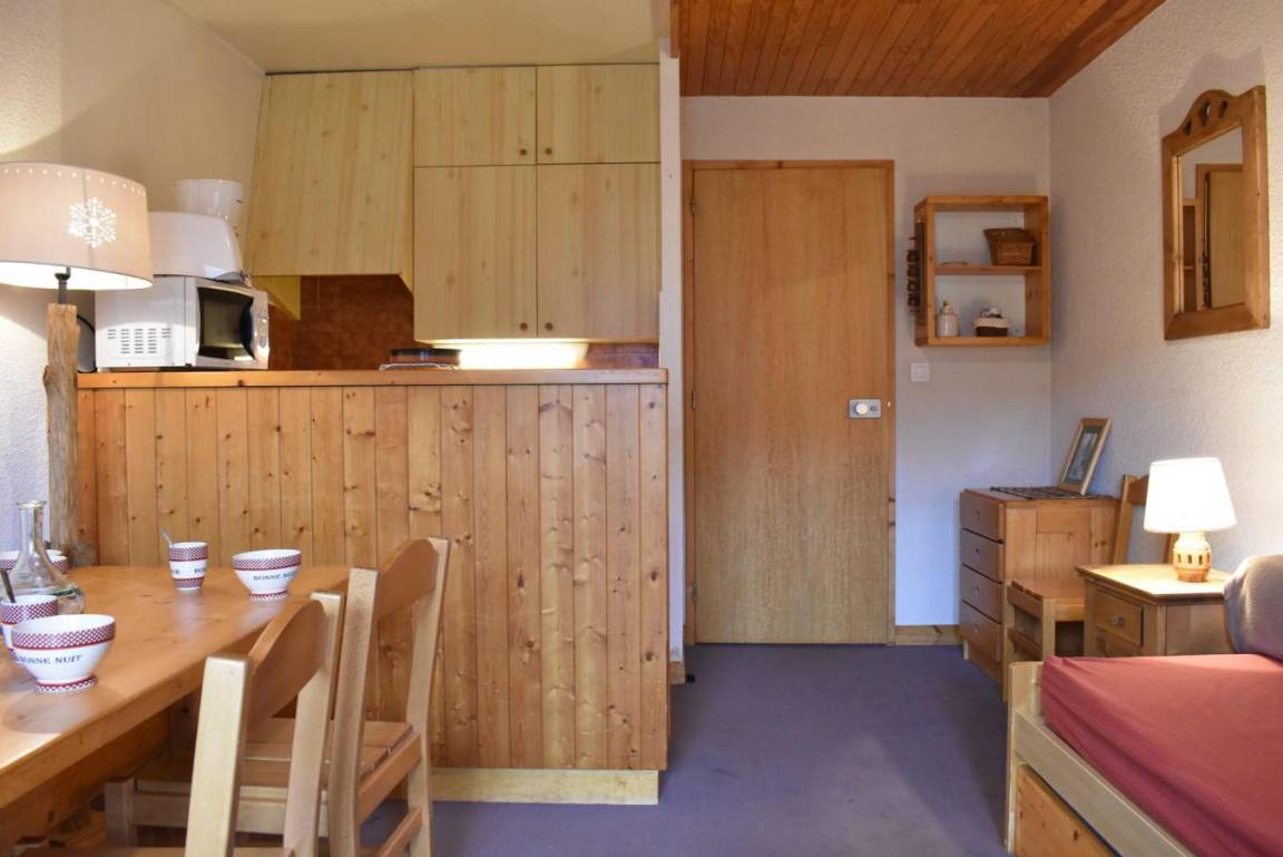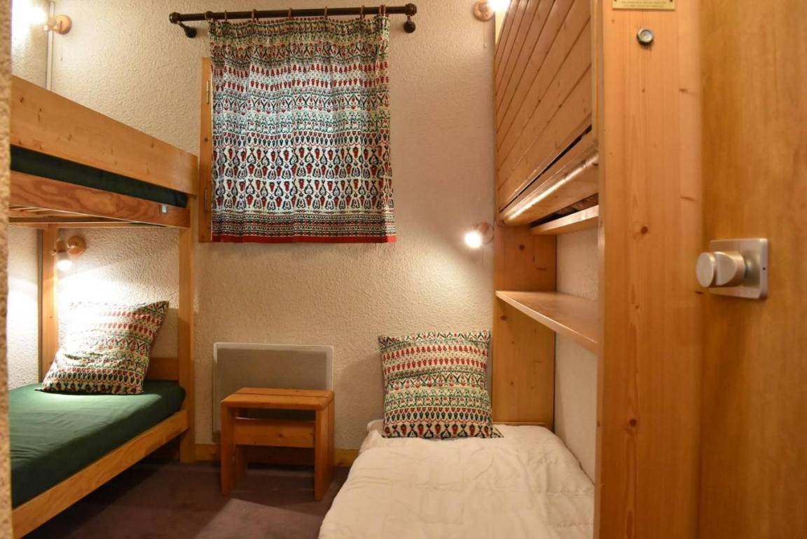 Die Résidence Les Chandonnelles II befindet sich im Plateau-Gebiet von Méribel. Eine Haltestelle des kostenlosen Shuttlebusses befindet sich 200 m entfernt und die Skipisten sind 300 m entfernt. Die Résidence ist mit einem Aufzug ausgestattet. Méribel ist Teil des Skigebiets Les Trois Vallées. Fläche von ungefähr 33 m². 3te Etage. Orientierung : West. Blick berg. Wohnzimmer mit 2 Ausziehbetten, TV. Schlafzimmer mit ausklappbares Wandbett, 2 Stockbetten. Kochnische mit kleiner Backofen mit Mikrowellenfunktion, Geschirrspülmaschine, 2 elektronische Herdplatten, Kühlschrank. Badezimmer. WC. Balkon. Die oberen Betten sind nicht für Kinder unter 6 Jahren geeignet.