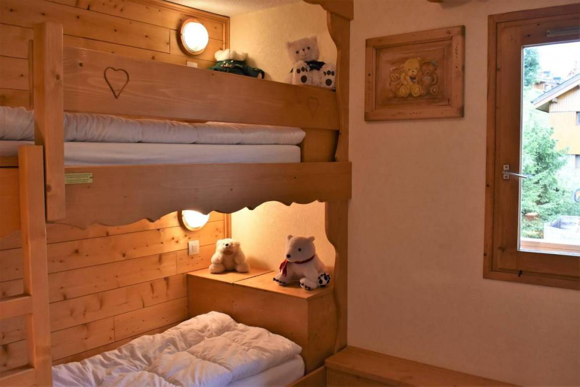 Die Residenz Les Silènes liegt im Zentrum des Resorts, etwa 100 m von der Skibushaltestelle (kostenloser Service) und 150 m von den Skipisten entfernt. Alle Unterkünfte verfügen über Balkon und Skischrank. Fläche von ungefähr 58 m². 3te Etage. Orientierung : Süd, Süd-West, West. Wohnzimmer mit 2 Einzelbetten (80). Schlafzimmer mit Doppelbett (160). Schlafzimmer mit 2 Stockbetten, Ausziehbett. Kochnische mit Backofen, Geschirrspülmaschine, Mikrowellenherd, 4 elektronische Herdplatten, Kühlschrank. Badezimmer. separates WC. Balkon. Die oberen Betten sind nicht für Kinder unter 6 Jahren geeignet.
