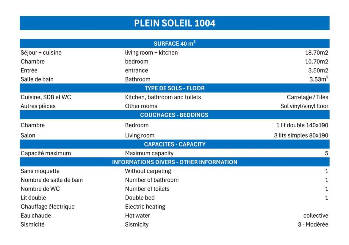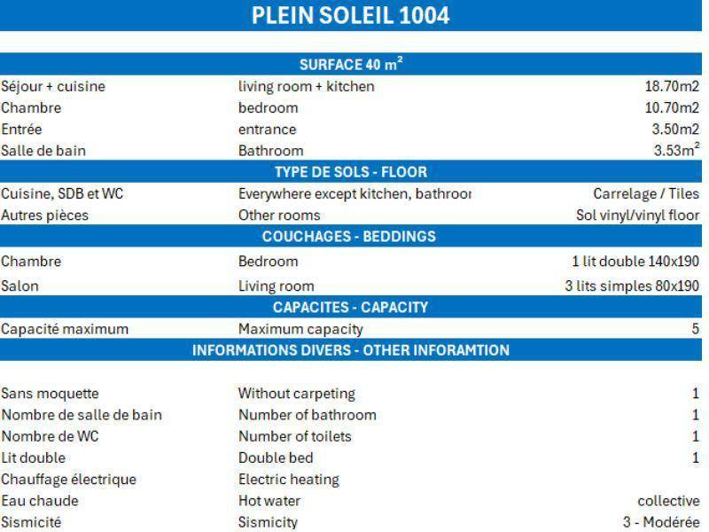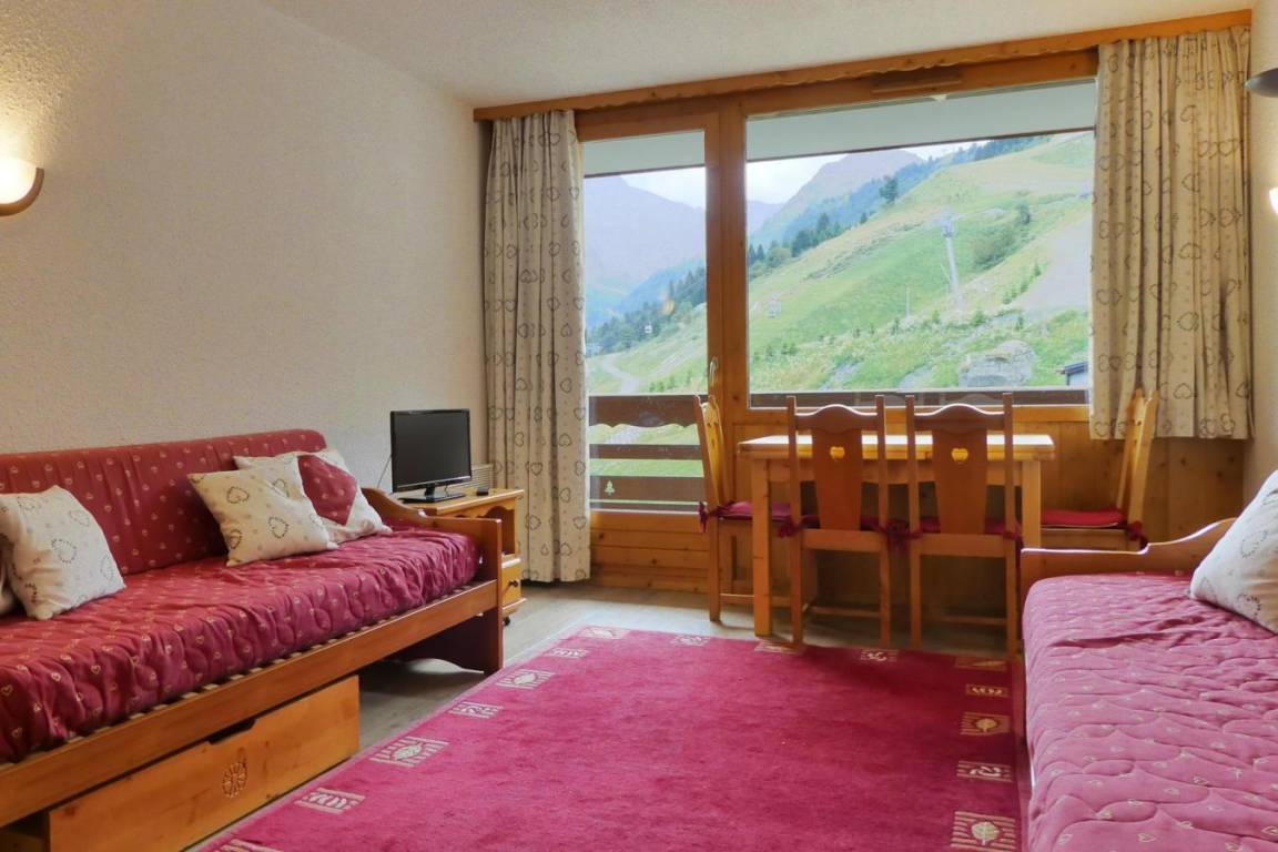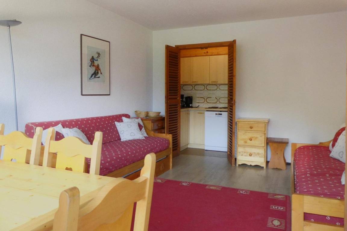 Die Residenz Plein Soleil mit Aufzug liegt ideal in der Nähe von Geschäften, 100 m von der Residenz entfernt. Sie erreichen sie über die Treppe zwischen den Residenzen des Einkaufszentrums von Mottaret. Die nächste Bushaltestelle ist nur 100 m entfernt. Die Residenz bietet zusätzliche Dienstleistungen wie Halbpension im Restaurant Le Grain de Sel und WLAN-Internetzugang. Es gibt auch ein Spielzimmer und eine Rezeption... Fläche von ungefähr 40 m². 4te Etage. Orientierung : Süd. Wohnzimmer mit einfache Klappschlafcouch (80*190), 2 Ausziehbetten (80*190). Schlafzimmer mit Doppelbett (140*190). Kochnische mit Wasserkocher, Kaffeemaschine (filtre), Backofen, Toaster, Geschirrspülmaschine, 2 Glaskeramikkochfelder, Kühlschrank. Badezimmer mit Badewanne. separates WC. Balkon.
