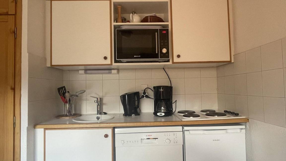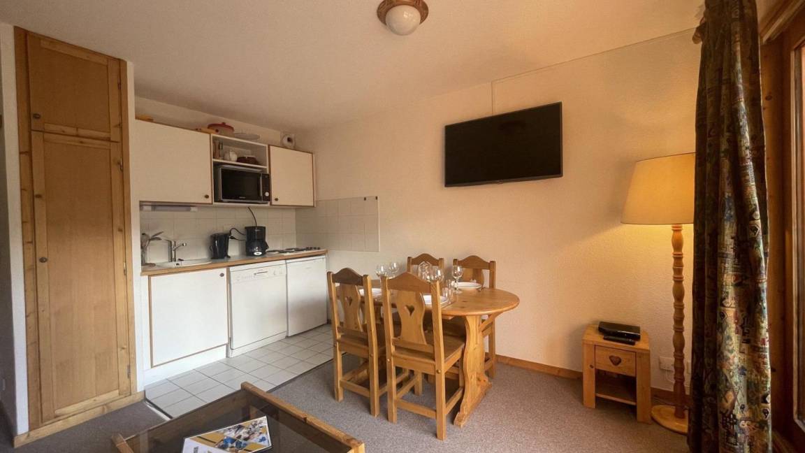 Die Residenz Le Cristal mit Aufzug befindet sich im Zentrum des Ferienortes Méribel, 250 Meter vom Tourismusbüro entfernt und in der Nähe aller Geschäfte. Zu Ihrer Verfügung: Fernseher, überdachte Garage und nur im Sommer ein beheizter Außenpool. Fläche von ungefähr 32 m². 5te Etage. Orientierung : Süd. Blick skipisten und Station. Wohnzimmer mit Ausziehschlafcouch für 2 Personen (2 x 80). Schlafzimmer mit Doppelbett (140). Kochnische mit kleiner Backofen mit Mikrowellenfunktion, Geschirrspülmaschine, 2 elektronische Herdplatten, Kühlschrank. Badezimmer mit Badewanne. separates WC. Balkon.