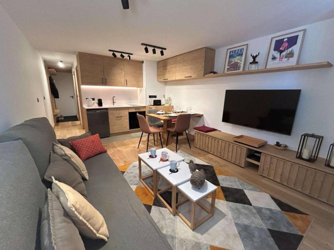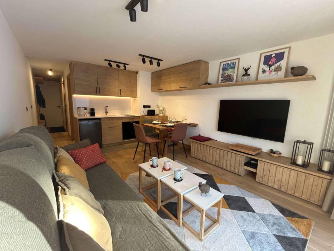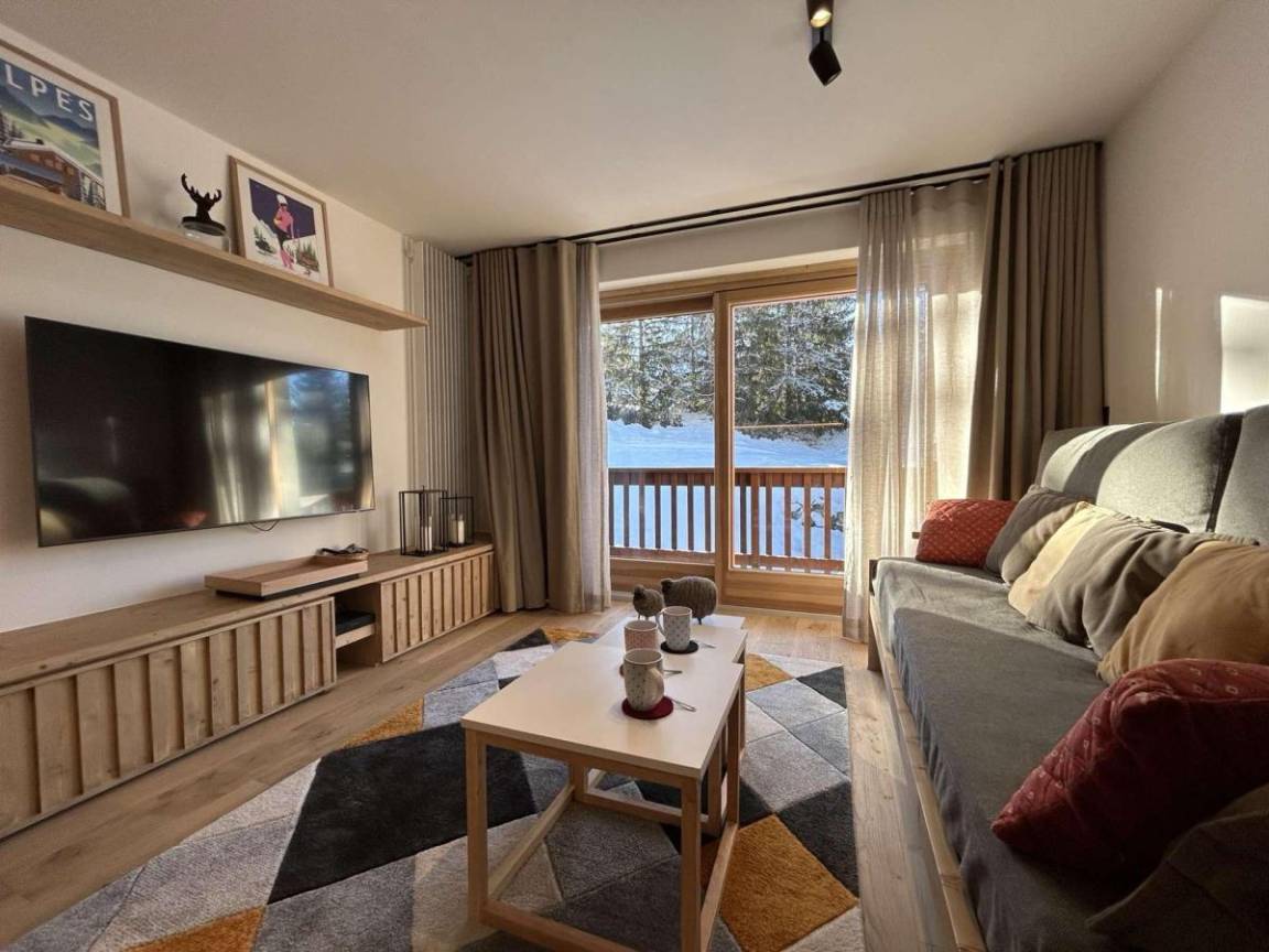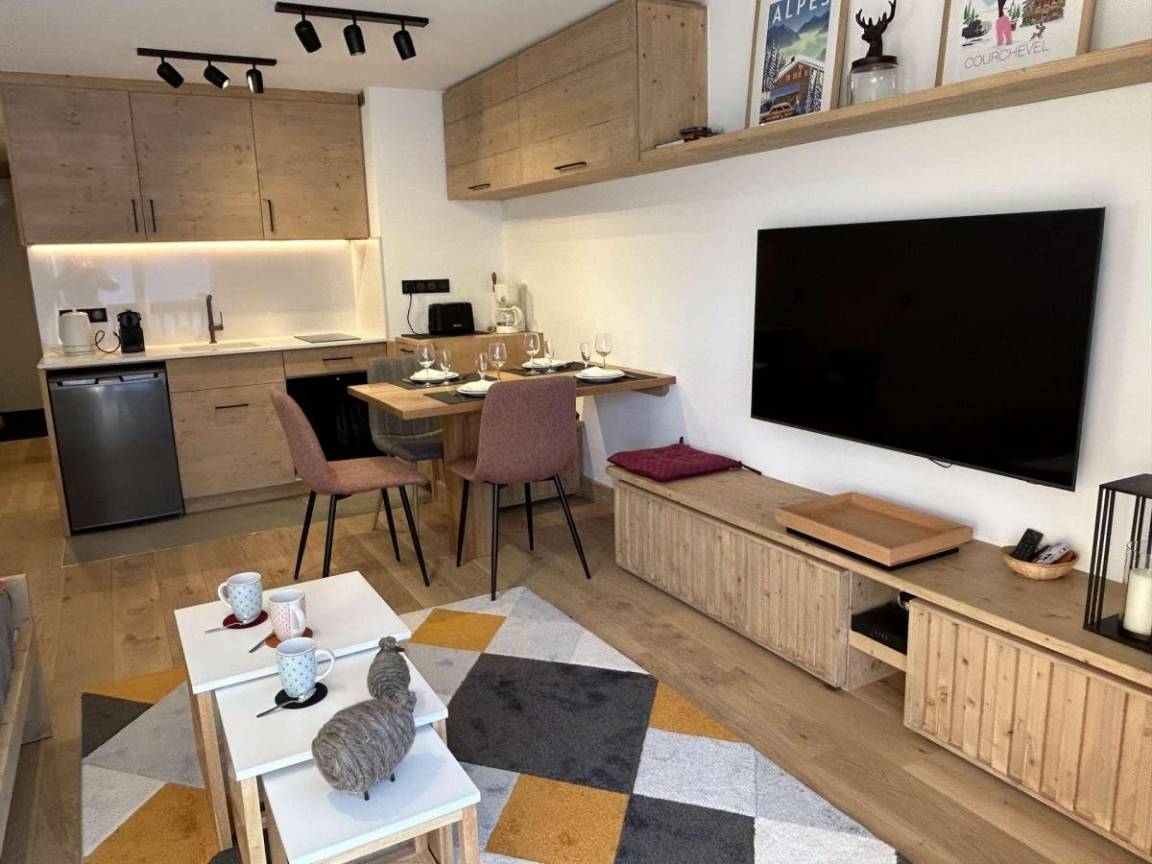 Die Residenz Le Chasseforêt (mit Aufzug) befindet sich 50 meter entfernt von den Skipisten im Viertel Le Plateau und 150 Meter entfernt von der Haltestelle fürs kostenlose Pendelbussensystem. Fläche von ungefähr 31 m². Erdgeschoss. Orientierung : West. Wohnzimmer mit Kamin (décorative), 2 Ausziehbetten (80). offener Schlafbereich mit Doppelbett (160*200). Kochnische mit Kaffeemaschine (Expresso et filtres), Backofen, Geschirrspülmaschine, 2 Induktionsherdplatten, Kühlschrank. Badezimmer mit WC. Balkon.