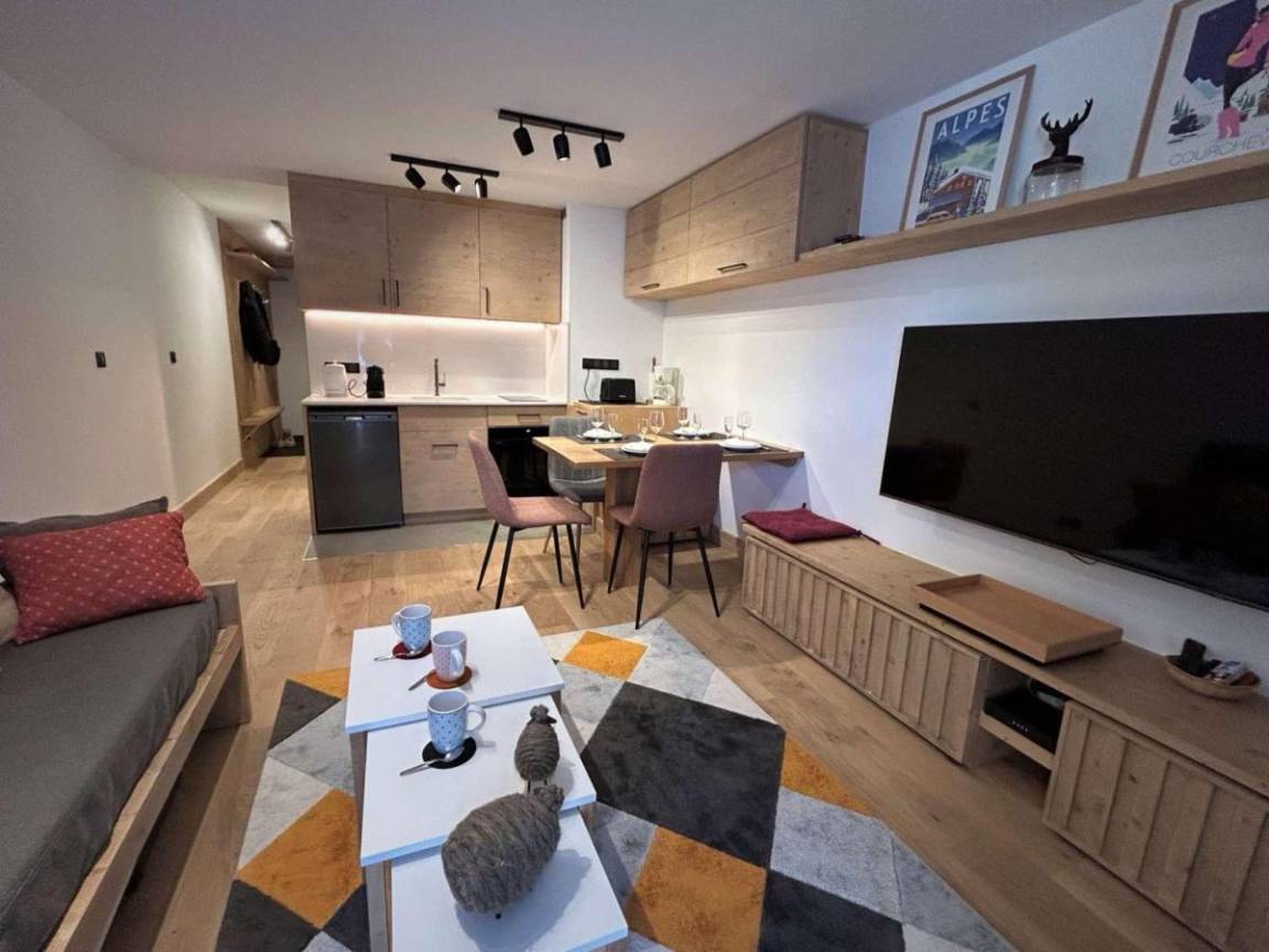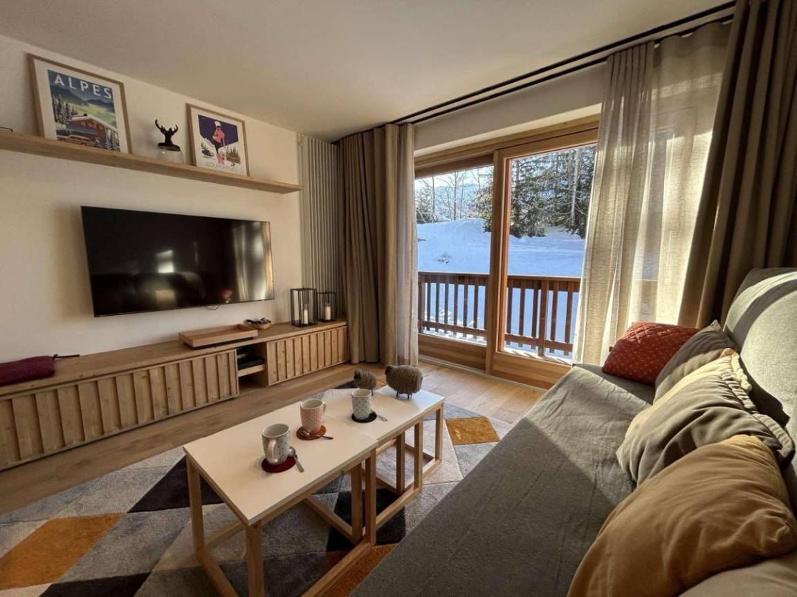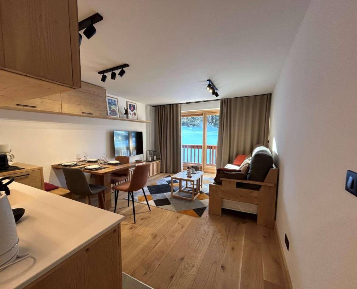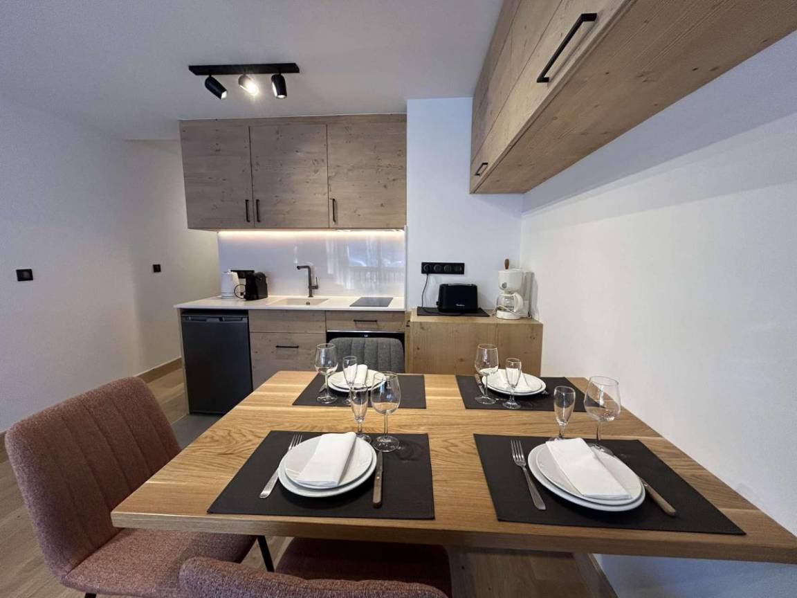 Die Residenz Le Chasseforêt (mit Aufzug) befindet sich 50 meter entfernt von den Skipisten im Viertel Le Plateau und 150 Meter entfernt von der Haltestelle fürs kostenlose Pendelbussensystem. Fläche von ungefähr 31 m². Erdgeschoss. Orientierung : West. Wohnzimmer mit Kamin (décorative), 2 Ausziehbetten (80). offener Schlafbereich mit Doppelbett (160*200). Kochnische mit Kaffeemaschine (Expresso et filtres), Backofen, Geschirrspülmaschine, 2 Induktionsherdplatten, Kühlschrank. Badezimmer mit WC. Balkon.