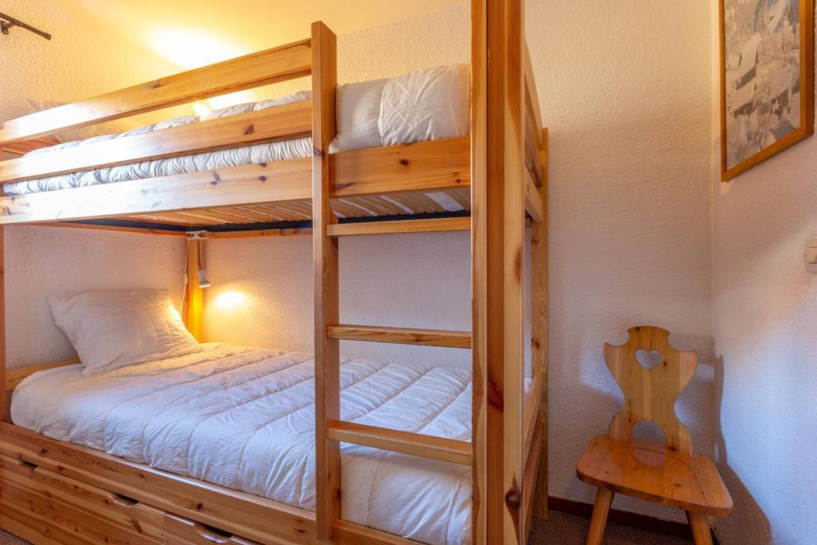 Fläche von ungefähr 60 m². 4te Etage. Orientierung : Nord, Süd. Blick skipisten und Tal. Diele mit Heizkörper. Wohnzimmer mit Klappschlafcouch (140x200), Heizkörper. Schlafzimmer mit Stuhl, Dusche, 2 Stockbetten, Heizkörper. Schlafzimmer mit Stuhl, Doppelbett (140x190), Heizkörper. Zwischengeschoss mit Klappschlafcouch. Küche mit Raclettegerät, Kaffeemaschine, Toaster, Mikrowellenherd, Glaskeramikkochfelder, Kühl-Gefrier-Kombination. 2 Badezimmer. WC. Balkon. Die oberen Betten sind nicht für Kinder unter 6 Jahren geeignet.