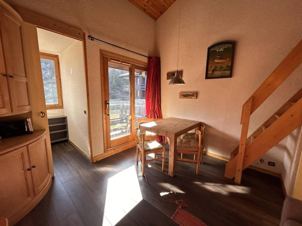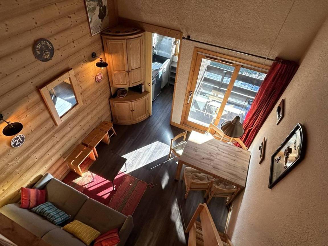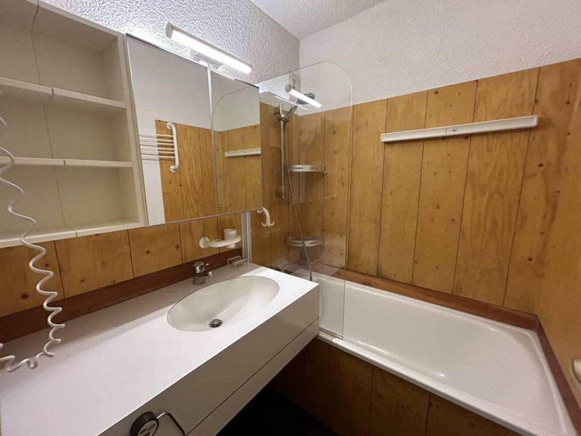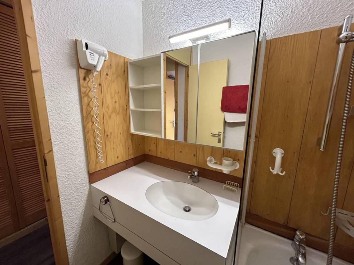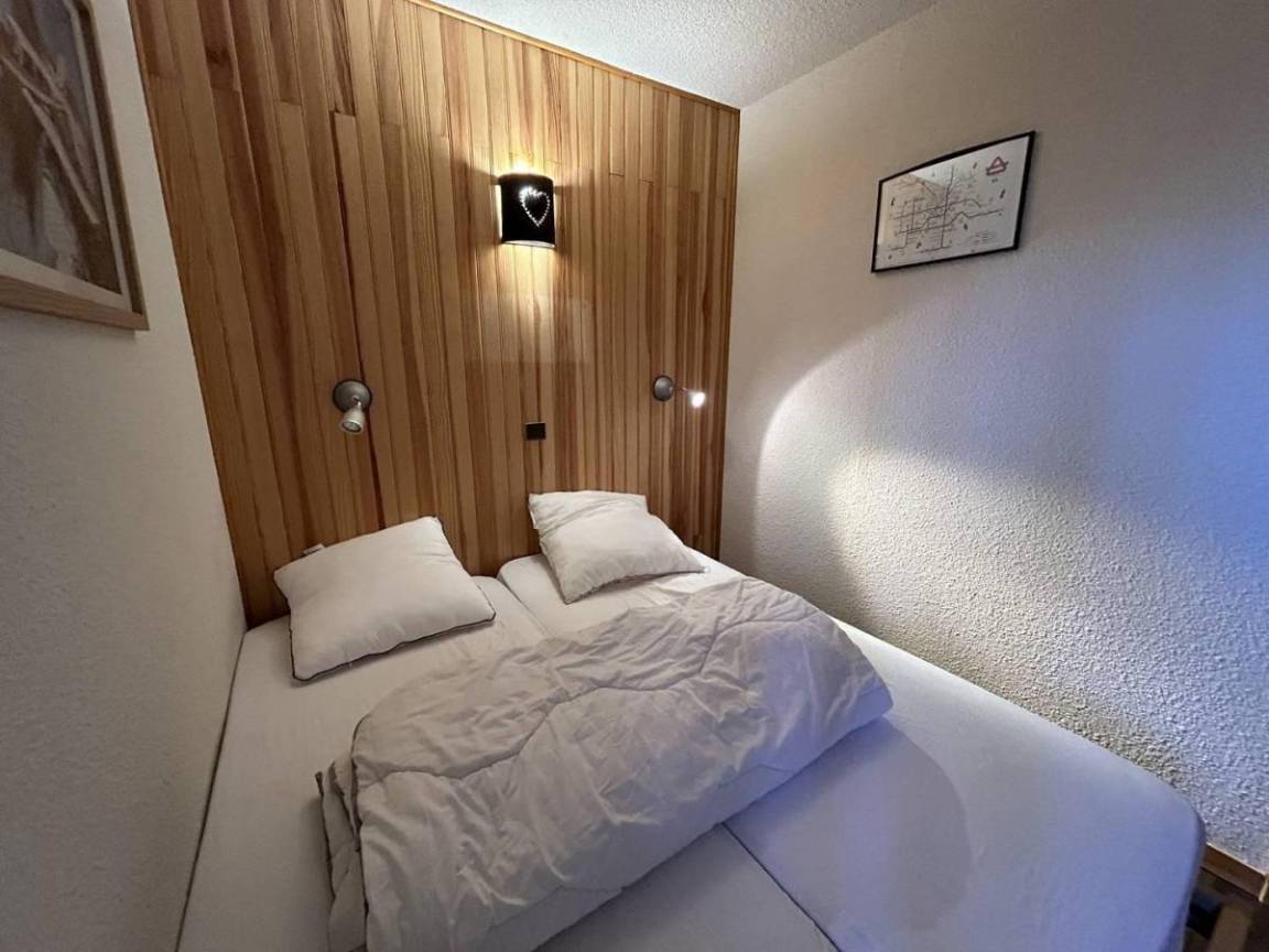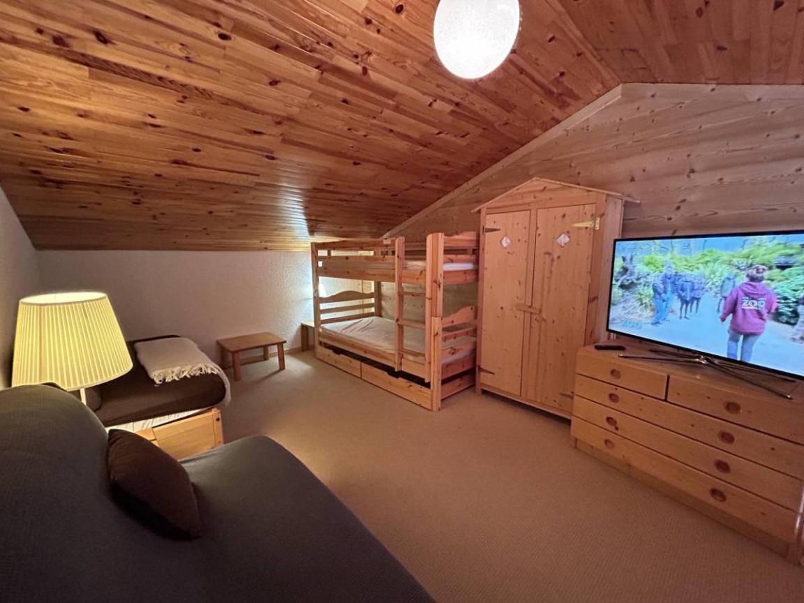 Fläche von ungefähr 38 m². 5te Etage. Orientierung : Nord, Süd. Blick skipisten. Diele. Wohnzimmer mit Klappschlafcouch. Schlafzimmer mit 2 Einzelbetten (80x190). Zwischengeschoss mit Klappschlafcouch, Ausziehschlafcouch für 2 Personen, 2 Stockbetten. Küche mit Raclettegerät, Wasserkocher, Kaffeemaschine, kleiner Backofen mit Mikrowellenfunktion, Toaster, Geschirrspülmaschine, Glaskeramikkochfelder, Kühlschrank. Badezimmer. WC. Balkon. Die oberen Betten sind nicht für Kinder unter 6 Jahren geeignet.
