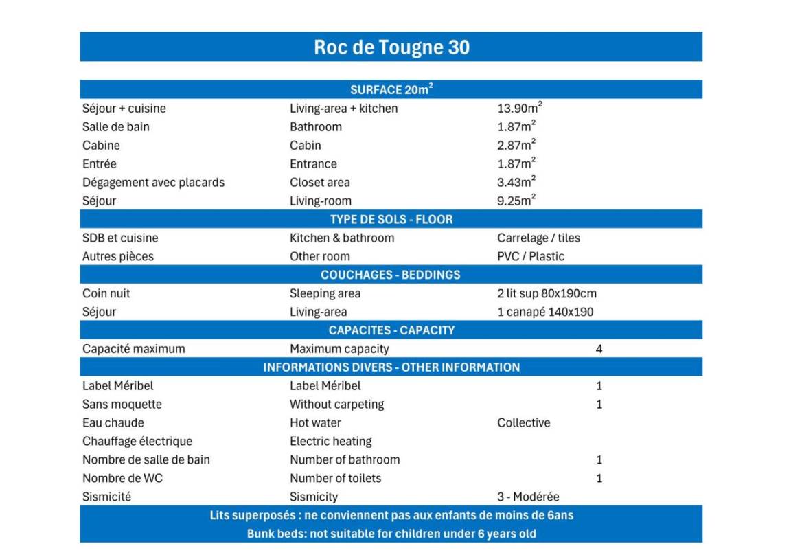 Die Residenz Roc de Tougne ohne Aufzug liegt an den Hängen. Entfernung zu den Geschäften: 100 m über die Treppe, die Residenz liegt direkt oberhalb des Geschäftszentrums von Mottaret. Fläche von ungefähr 20 m². 1te Etage. Orientierung : Nord. Wohnzimmer mit BZ-Sofas. Schlafbereich mit 2 Stockbetten, schiebetüren. Kochnische mit Wasserkocher, Kaffeemaschine (filtre), kleiner Backofen mit Mikrowellenfunktion, Toaster, Dunstabzugshaube, Geschirrspülmaschine, 2 Glaskeramikkochfelder, Kühlschrank. Waschräume mit Dusche, WC. Balkon. Die oberen Betten sind nicht für Kinder unter 6 Jahren geeignet.