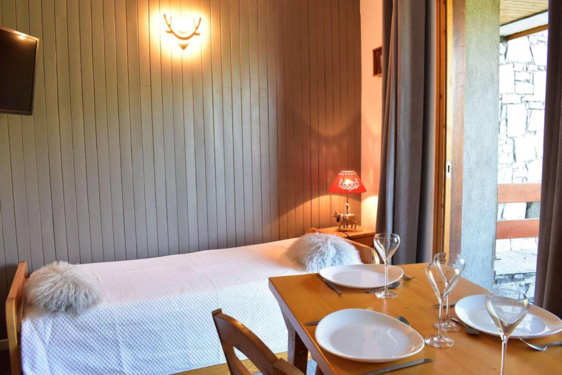 Die Résidence Peclet befindet sich im Gebiet Plan du Moulin von Méribel, 400 m vom Sessellift Morel und 200 m von der Haltestelle des kostenlosen Ski-Shuttlebusses entfernt. Méribel ist Teil des Skigebietes Trois Vallées. Fläche von ungefähr 22 m². Erdgeschoss. Orientierung : West. Wohnzimmer mit Klappschlafcouch (140), 2 Ausziehbetten (80). Kochnische mit Wasserkocher, Kaffeemaschine, kleiner Backofen mit Mikrowellenfunktion, Toaster, Geschirrspülmaschine, 2 Glaskeramikkochfelder, Kühl-Gefrier-Kombination. Waschräume mit Dusche, Waschbecken, Handtuchtrockner, WC. Balkon.
