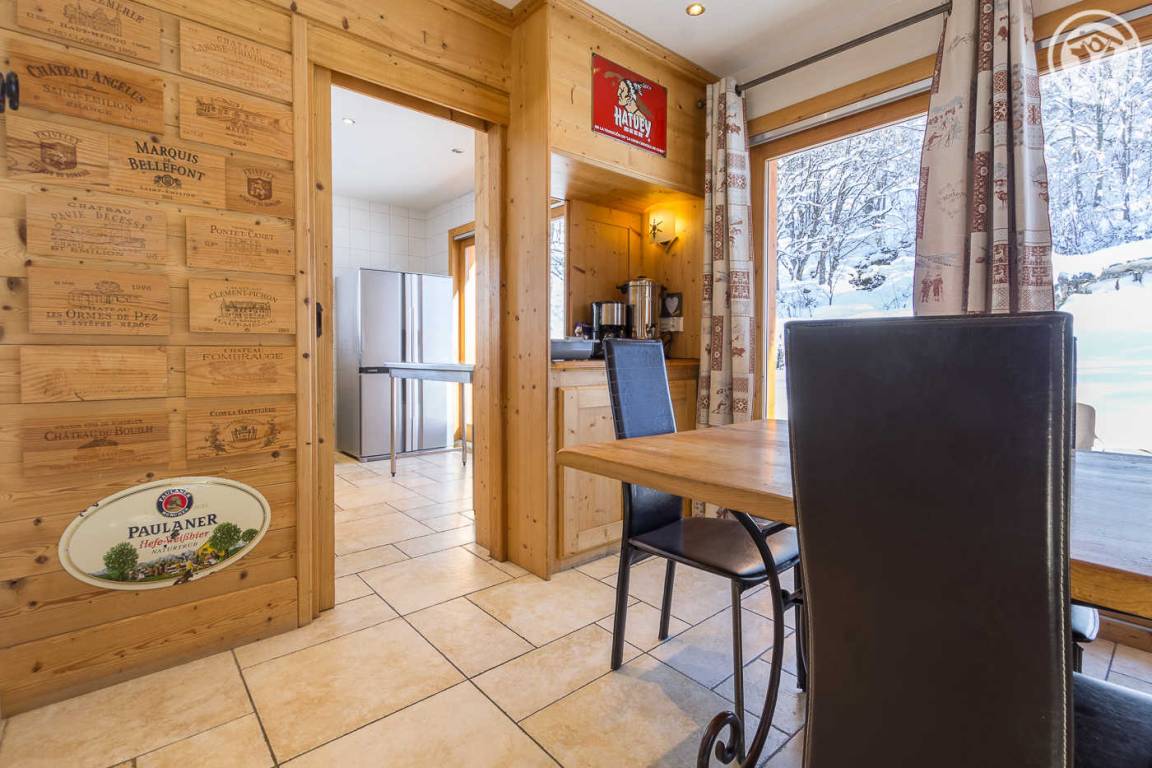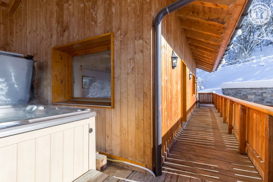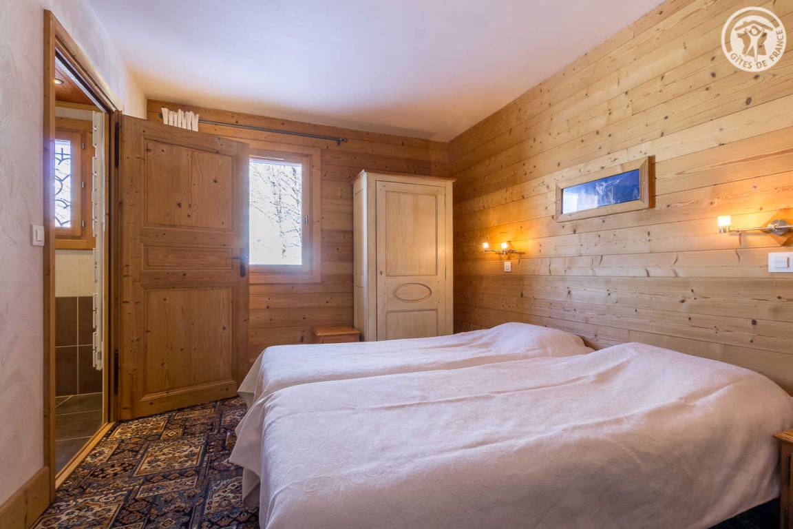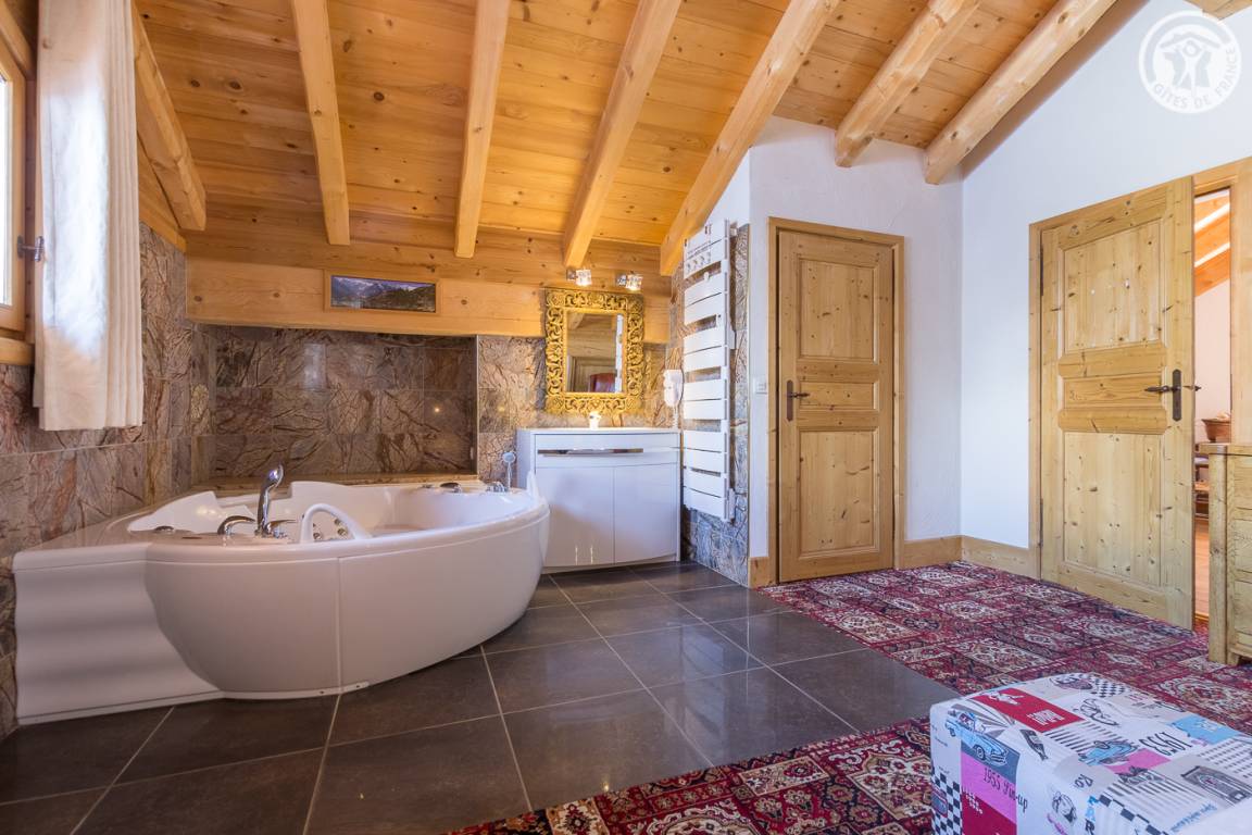 Chalet auf 4 Ebenen inklusive der Wohnung des Eigentümers im Erdgeschoss. Unabhängiger Eingang. Erdgeschoss: Kinoraum, 1 Schlafzimmer (2 Einzelbetten 90x190 cm) mit eigenem Bad (Dusche und WC), separates WC. 1. Stock: Wohnzimmer mit Zugang zum Balkon (Whirlpool im Freien gegen Aufpreis) und das Gelände, Küche, 2 private Schlafzimmer mit Badezimmer (Whirlpool und WC) und 1 Schlafzimmer mit eigenem Bad (Dusche und WC) (2 Einzelbetten 90x190cm in jedem Zimmer), separates WC. 2. Stock: großes Schlafzimmer mit Eck-Whirlpool und separater Toilette (1 Bett 180x200), Zwischengeschoss. Im Untergeschoss: Wellnessbereich (Laufband, Rudergerät und Crosstrainer), Waschküche und Skiraum.