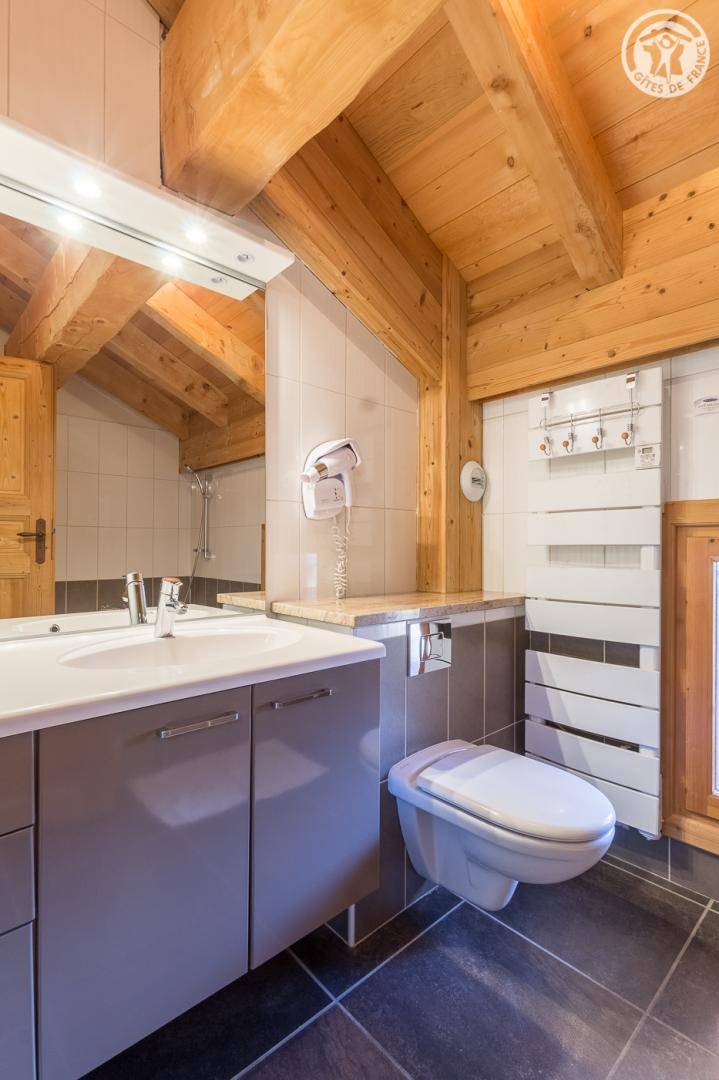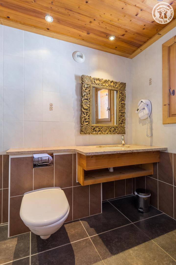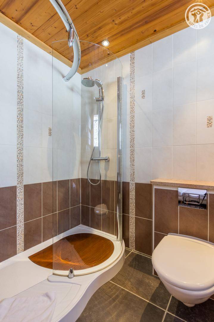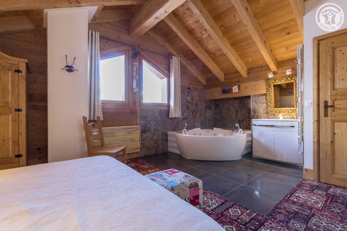 Chalet auf 4 Ebenen inklusive der Wohnung des Eigentümers im Erdgeschoss. Unabhängiger Eingang. Erdgeschoss: Kinoraum, 1 Schlafzimmer (2 Einzelbetten 90x190 cm) mit eigenem Bad (Dusche und WC), separates WC. 1. Stock: Wohnzimmer mit Zugang zum Balkon (Whirlpool im Freien gegen Aufpreis) und das Gelände, Küche, 2 private Schlafzimmer mit Badezimmer (Whirlpool und WC) und 1 Schlafzimmer mit eigenem Bad (Dusche und WC) (2 Einzelbetten 90x190cm in jedem Zimmer), separates WC. 2. Stock: großes Schlafzimmer mit Eck-Whirlpool und separater Toilette (1 Bett 180x200), Zwischengeschoss. Im Untergeschoss: Wellnessbereich (Laufband, Rudergerät und Crosstrainer), Waschküche und Skiraum.