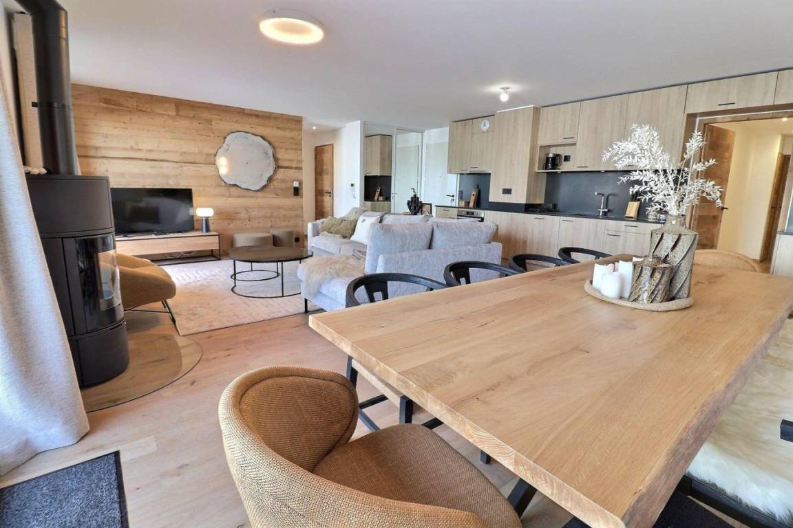 Fläche von ungefähr 112 m². 1te Etage. Orientierung : Ost. Blick berg (Saulire). Wohnzimmer mit , TV. Schlafzimmer mit , Doppelbett (160*200), , TV. Schlafzimmer mit , Doppelbett (160*200), TV. Schlafzimmer mit , Doppelbett (140*190), TV. offener Schlafbereich mit 4 Stockbetten (90*190). offene Küche mit Wasserkocher, Kaffeemaschine (filtre), Backofen, Toaster, , Geschirrspülmaschine, 2 Induktionsherdplatten, Kühlschrank. Badezimmer mit Waschmaschine. 2 WCs. Terrasse mit Gartentisch und -stühle. Sauna. Die oberen Betten sind nicht für Kinder unter 6 Jahren geeignet.