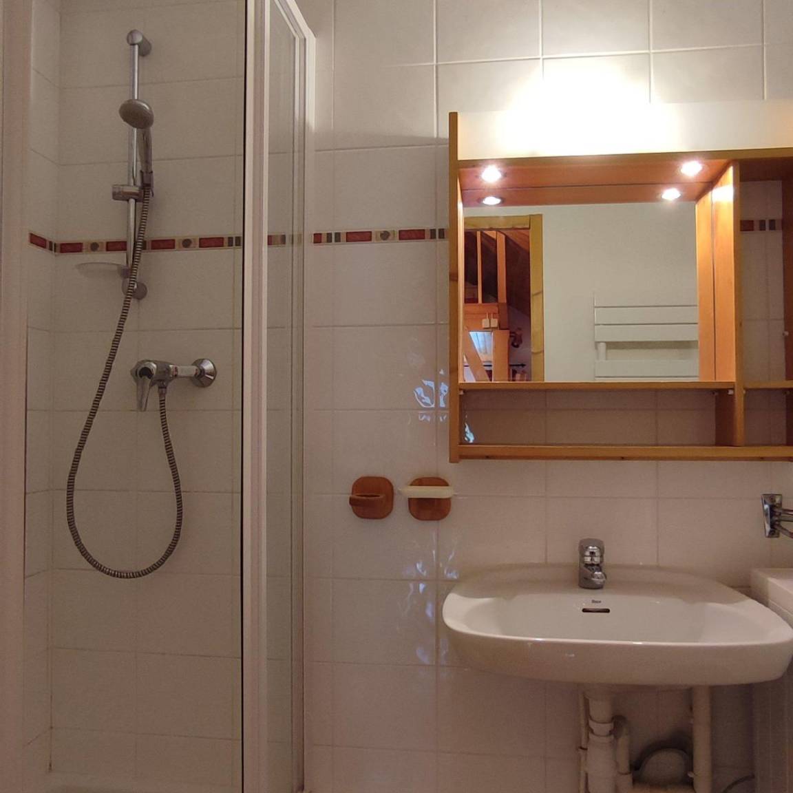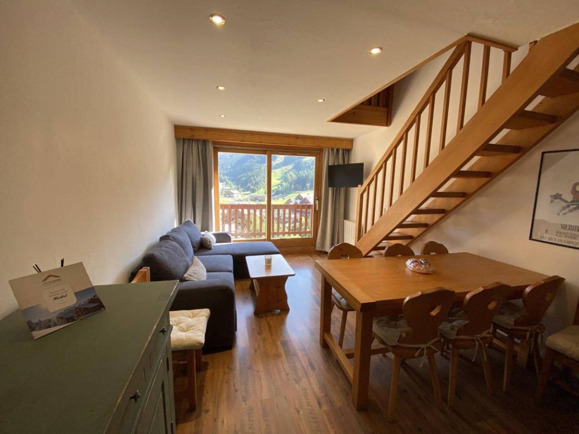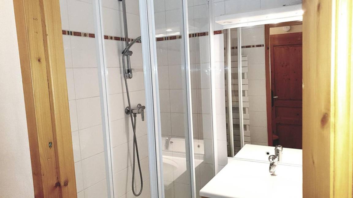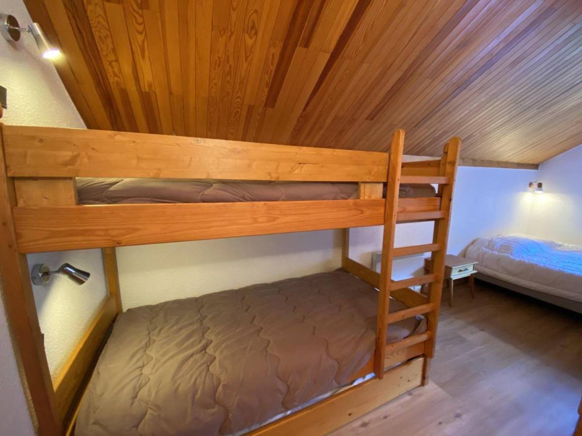 Fläche von ungefähr 42 m². 5te Etage. Orientierung : Süd. Blick station. Niveau 0 : Wohnzimmer. Schlafzimmer mit Doppelbett (140). Kochnische mit kleiner Backofen mit Mikrowellenfunktion, Geschirrspülmaschine, 2 Glaskeramikkochfelder, Kühlschrank. Waschräume mit Dusche, Waschmaschine. separates WC. Balkon. Niveau 1 : Zwischengeschoss mit Doppelbett (160), 2 Stockbetten (80). Waschräume mit Dusche, WC. Die oberen Betten sind nicht für Kinder unter 6 Jahren geeignet.