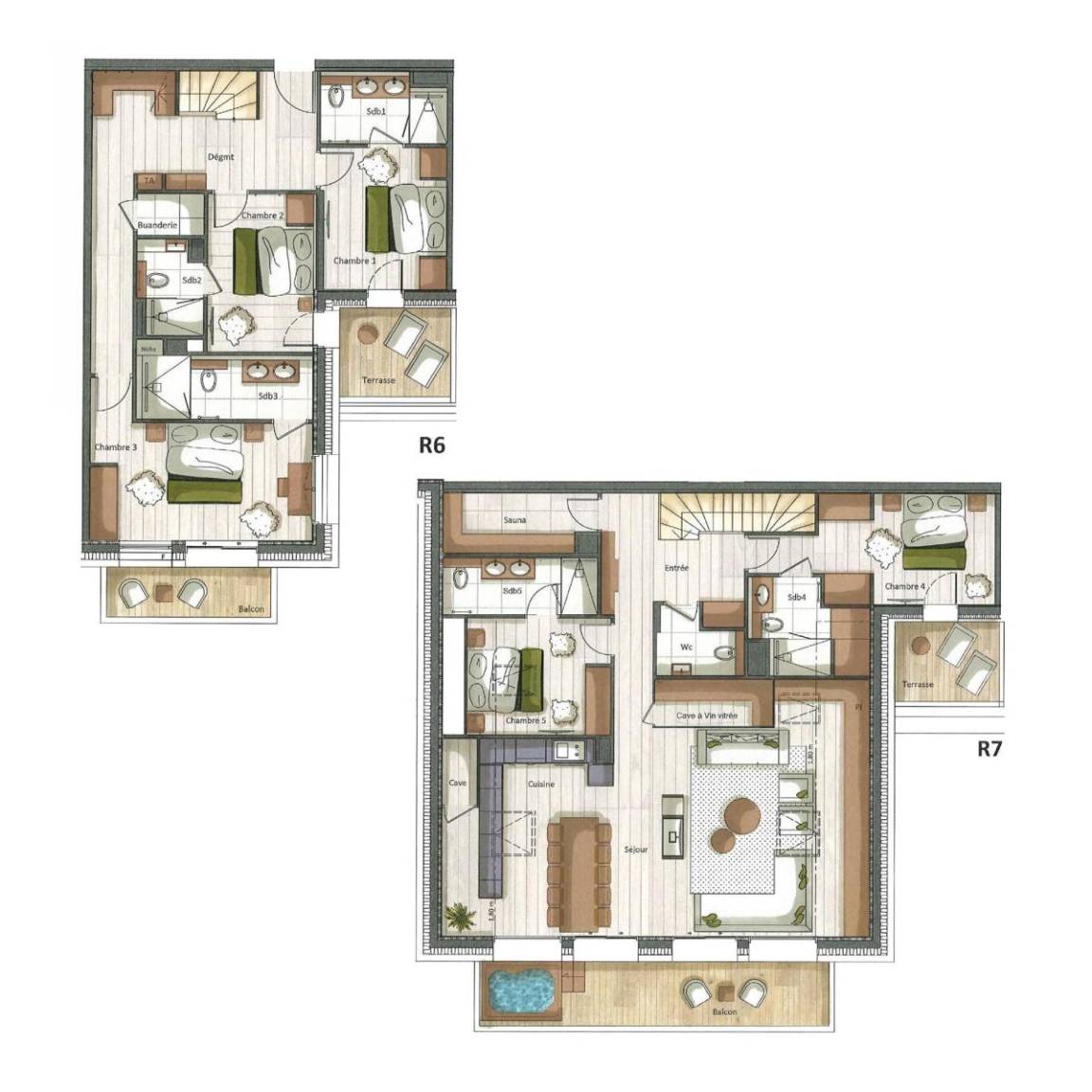 Fläche von ungefähr 202 m². Einige als Maisonette. 1te Etage. Niveau 0 : 2 Schlafzimmer mit Doppelbett, , Haartrockner, Handtuchtrockner, WC. Schlafzimmer mit Balkon, Doppelbett, , Haartrockner, Handtuchtrockner, WC. Waschküche mit Waschmaschine. separates WC. Terrasse. Niveau 1 : Wohnzimmer mit Kamin. 2 Schlafzimmer mit Doppelbett, , Haartrockner, Handtuchtrockner, WC. Küche mit Kaffeemaschine (Nespresso), , Backofen, Toaster, Dunstabzugshaube, Geschirrspülmaschine, Herdplatten, , Kühlschrank. Terrasse. Keller. Sauna.
