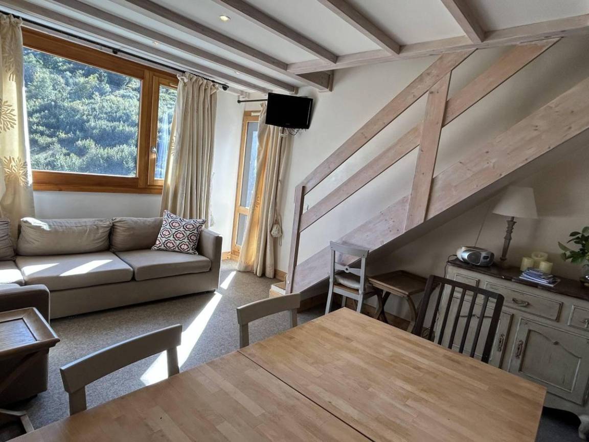 Die Residenz Le Nantchu befindet sich im Herzen des Viertels Le Laitelet im oberen Teil der Staion Mottaret in den französischen Nordalpen. Sie steht am Fuß der Piste und in der Nähe der Geschäfte. Den Zugang zum Zentrum Mottaret macht man mit der Gondelbahn Les Chalets oder mit den kostenlosen Pendelbussen (Méribus). Fläche von ungefähr 50 m². 3te Etage. Orientierung : Süd. Niveau 0 : Wohnzimmer. Schlafzimmer mit Doppelbett (160*200). Kochnische mit Wasserkocher, Kaffeemaschine, Backofen, Toaster, Geschirrspülmaschine, Glaskeramikkochfelder, Kühlschrank. separates WC. Badezimmer. Balkon. Niveau 1 : Zwischengeschoss mit Klappschlafcouch. Schlafzimmer mit 2 Einzelbetten (90*190). Schlafzimmer mit einfache Klappschlafcouch (80*190), Doppelbett (140*190). Waschräume mit WC.