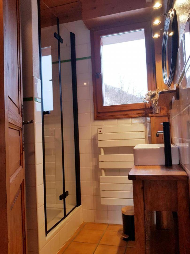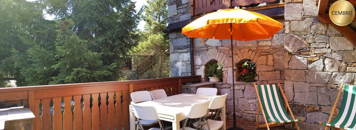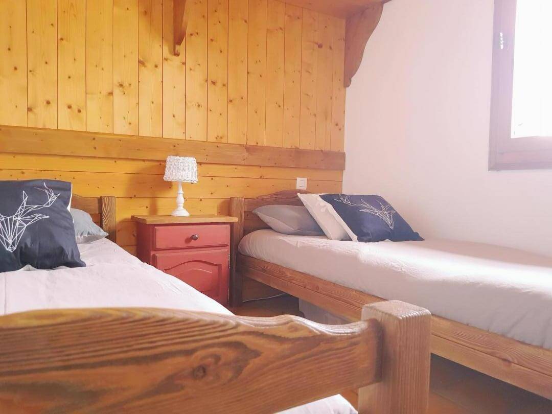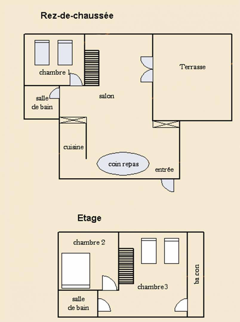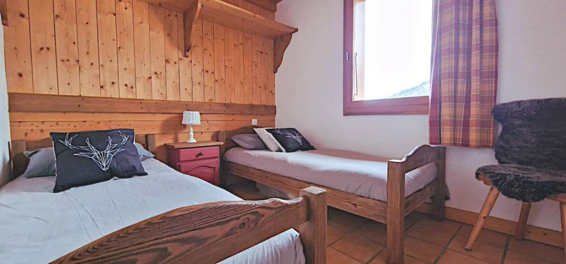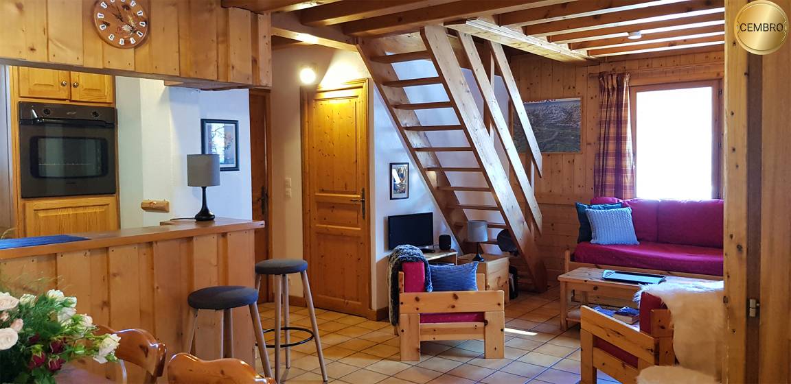 Chalet bestehend aus 2 Gîtes + Zweitwohnsitz der Besitzer. Unabhängiger Zugang im Erdgeschoss mit privater Terrasse (20 m²). Erdgeschoss: Wohnküche mit Sitzecke, 1 Schlafzimmer (2 Einzelbetten 80x190 cm). Badezimmer (Dusche) mit WC. Obergeschoss: Mezzanine (2 Einzelbetten 80x190 cm). 1 Schlafzimmer (1 Doppelbett 140x190 cm). 1 Badezimmer (Badewanne) mit WC). Gesamtwohnfläche: 72 m² Dachgeschoss inklusive. Gemeinsamkeit. Skigondelverbindung Méribel und Pisten auf 200m. Thermen von Brides les Bains 10 km.