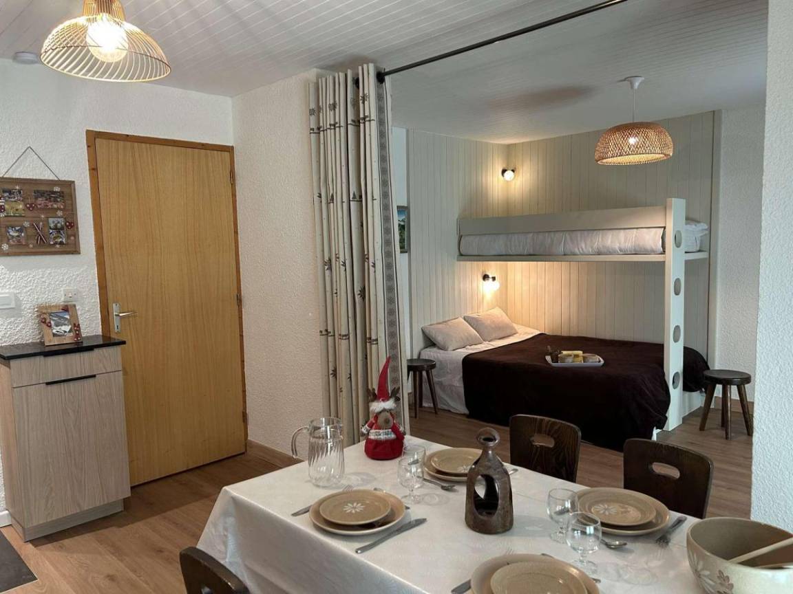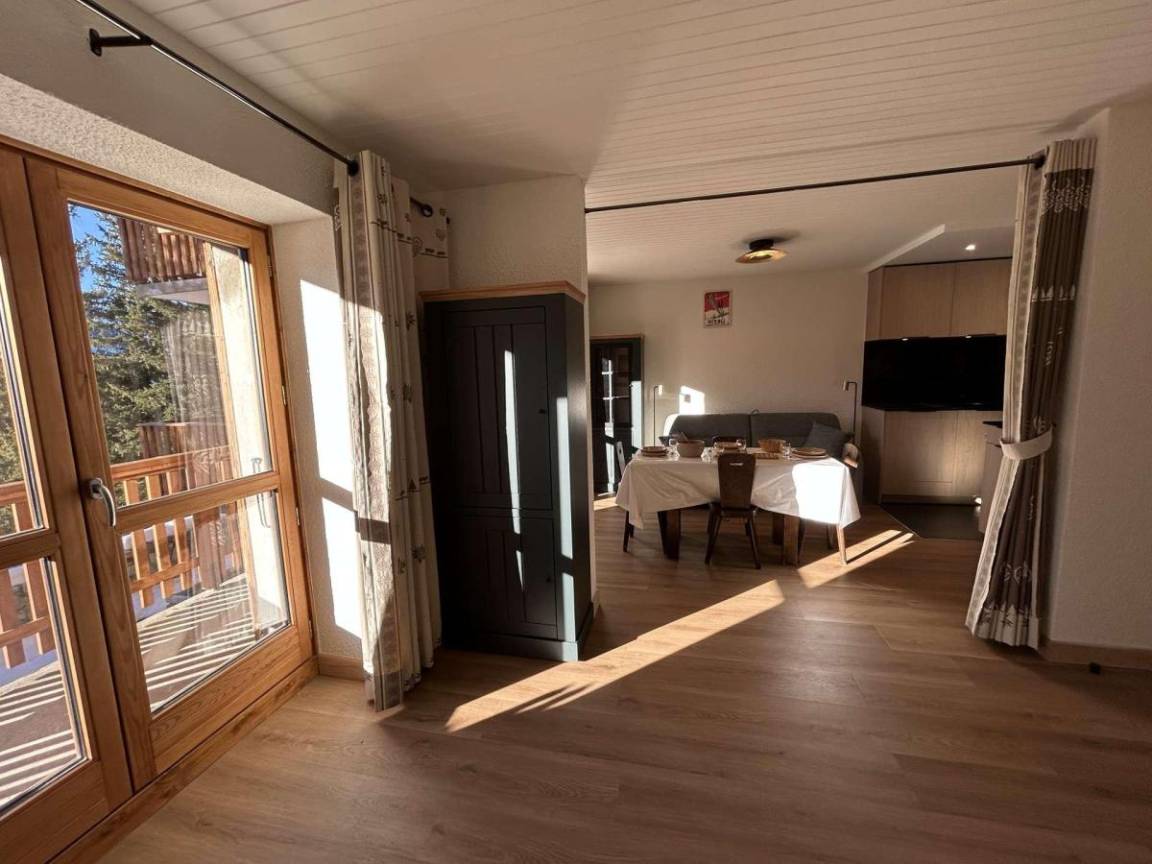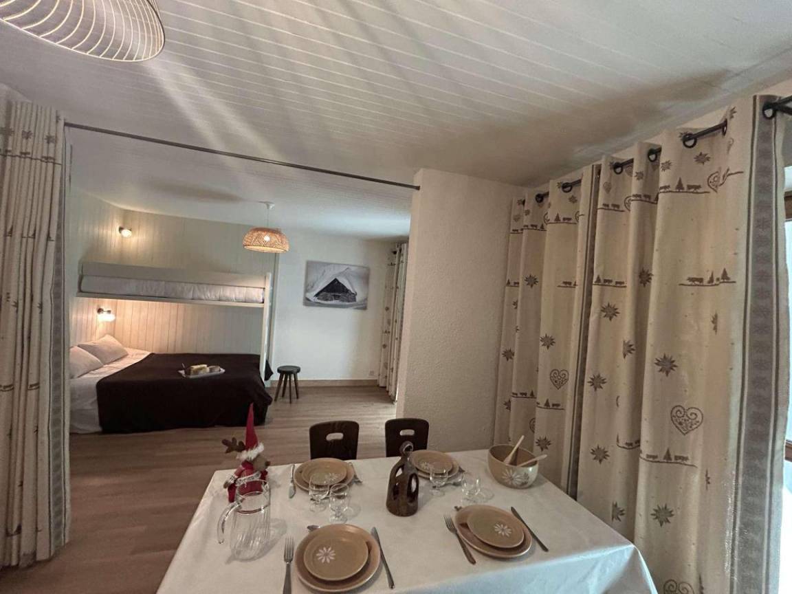 Die Residenz Le Cirsé befindet ca. 100 Meter entfernt von den Skipisten im Viertel Plateau und 150 Meter entfernt von der Haltestelle für die kostenlosen Pendelbussen. Fläche von ungefähr 35 m². Erdgeschoss. Orientierung : West. Wohnzimmer mit Klappschlafcouch (160*200). offener Schlafbereich mit Doppelbett (140*190). Kochnische mit Backofen, kleiner Backofen mit Mikrowellenfunktion, Geschirrspülmaschine, 2 elektronische Herdplatten, Kühlschrank. Badezimmer. WC. Balkon.