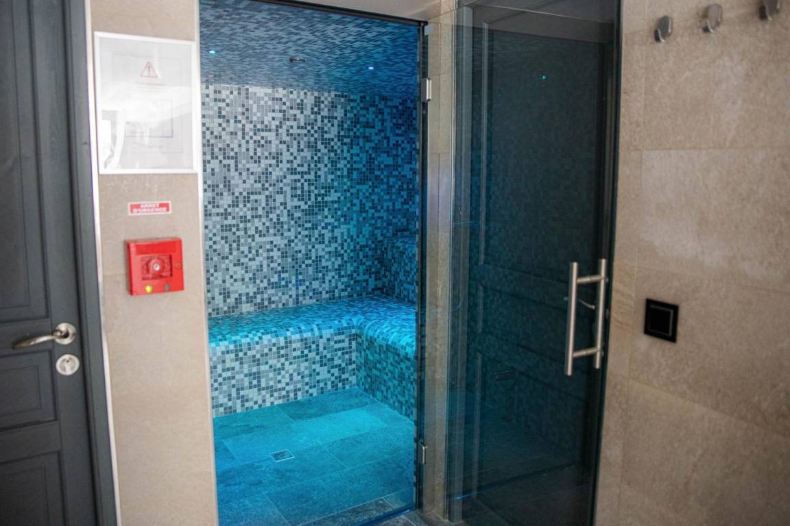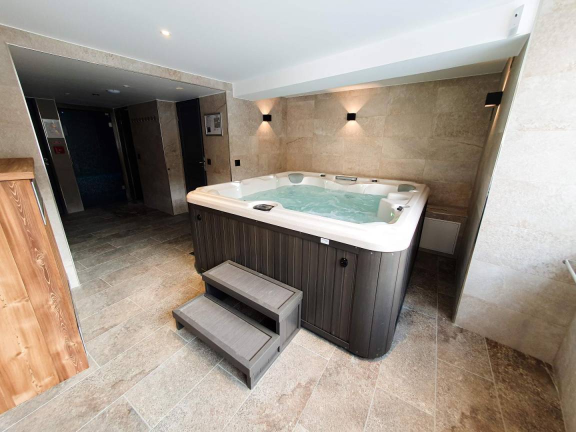Wellnessbereich mit Whirlpool für 6 Personen, Hamam, Duschraum und WC. Um Ihnen die Nutzung zu erleichtern, stellen die Eigentümer Ihnen Richtlinien und Zeitfenster zur Verfügung, für die Sie sich anmelden können.
