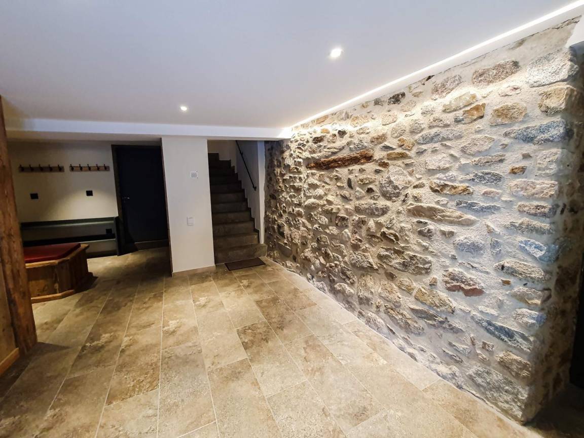 Der Eingang zum Ferienhaus befindet sich in der Gemeinschaftshalle. Erste Ebene: