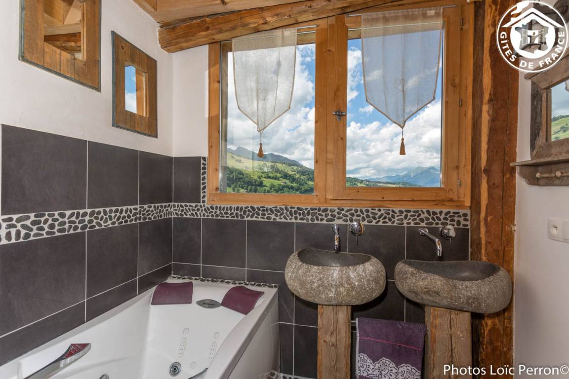 2 Gîtes im Nebenhaus (separater Zugang). 1. + 2. Stock (verteilt auf 4 Halbebenen): Wohnzimmer-Küchen-Lounge, kostenloses WLAN, 3 Schlafzimmer, davon 1 nicht nach außen offen (1 Doppelbett/1 Doppelbett 160 x 200 cm, 2 1 Etagenbett /1 Doppelbett), 1 Mezzanine mit niedriger Höhe 1,80 m (1 Einzelbett), Badezimmer (Whirlpool), Duschraum (Multi-Jet-Dusche/Hamam), Sauna. Gesamtwohnfläche: 150m² Dachgeschoss inklusive. Balkon. Garten. Skiliftverbindung Valmorel 200m, Valmorel 2km. Langlaufen + Schneeschuhwandern 200m. Thermes la Léchere. Ausrüstungsverleih 200m. Parkplatz 50m. Kostenloser Shuttle nur im Winter.