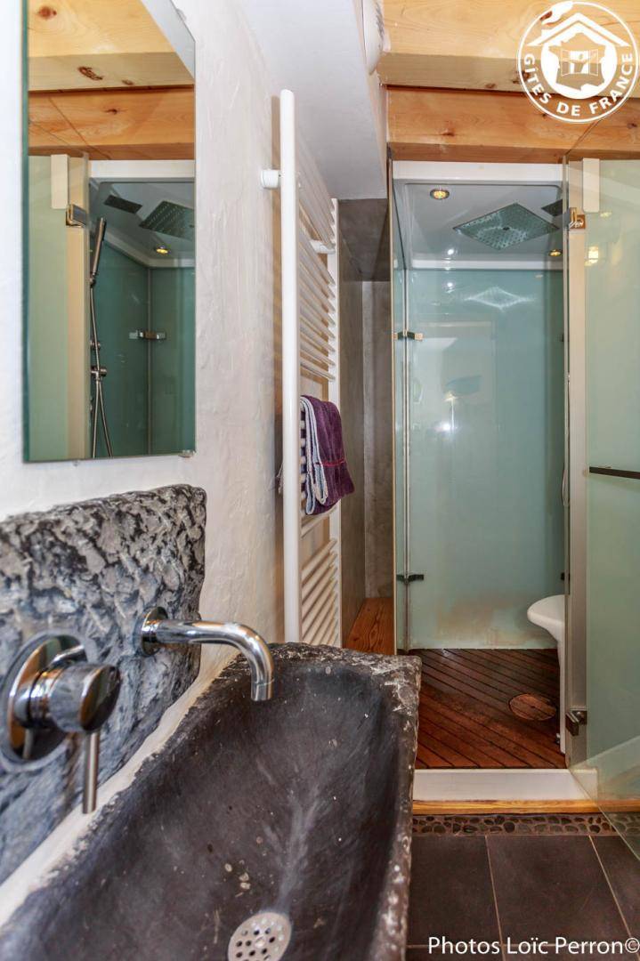 „Très beau gîte en intérieur Il manquerait un peu de rénovation en ce qui concerne le tissu d'ameublement (rideaux dechires, coussins canapé arraches) Quelques ampoules qui sont grillées, et des dysfonctionnement pour la douche et le hammam qui fuit...C'est dommage Sinon très fonctionnel“