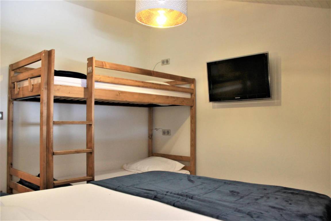 Fläche von ungefähr 50 m². 1te Etage. Orientierung : Süd. Blick skipisten. Diele. Wohnzimmer mit DVD-Spieler, Heizkörper. Schlafzimmer mit Doppelbett (160x190), Heizkörper. Schlafzimmer mit Einzelbett. Schlafzimmer mit Klappschlafcouch, Stockbett. Küche mit Kaffeemaschine, Stuhl, kleiner Backofen mit Mikrowellenfunktion, Toaster, elektronische Herdplatten, Kühl-Gefrier-Kombination, Tisch. 2 Badezimmer. WC. Balkon mit Tisch. Die oberen Betten sind nicht für Kinder unter 6 Jahren geeignet.