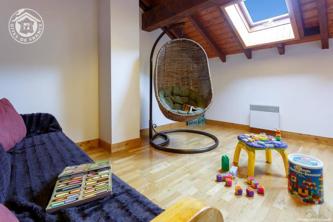 Gîte in einem Haus, bestehend aus einer Unterkunft, auf 2 Ebenen. 1. Stock: Wohnzimmer-Küche-Lounge, WIFI, 1 Schlafzimmer (1 Doppelbett), Badezimmer (Dusche), separates WC. 2. Stock: 3 Schlafzimmer, eines mit Balkon-Terrasse (1 Doppelbett / 1 Doppelbett / 3 Einzelbetten), Mezzanine mit Spielen für Kinder (1 Schlafsofa für 2 Personen), Badezimmer (Eckbadewanne), separates WC. Gesamtwohnfläche: 160 m² Dachgeschoss inklusive. Drei Balkone + Balkonterrasse. Private Garage für 2 Autos.