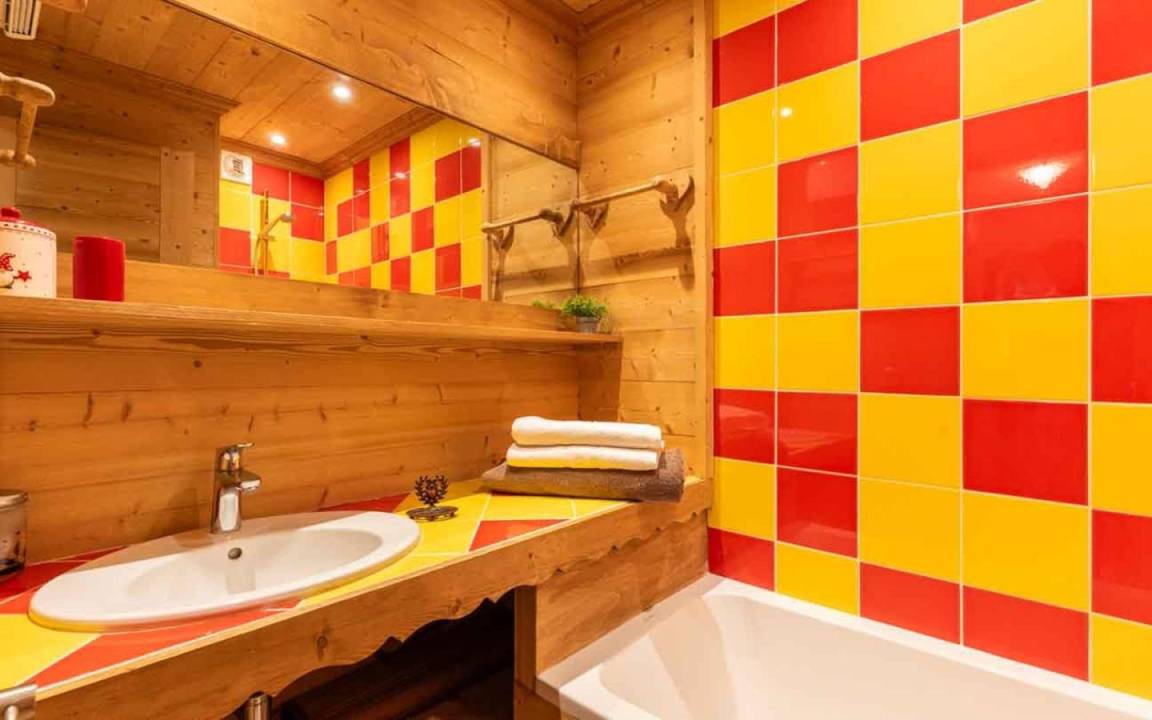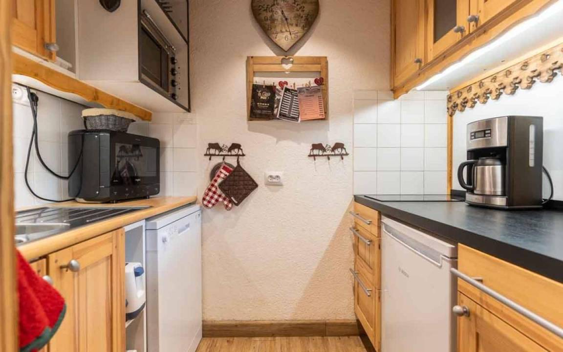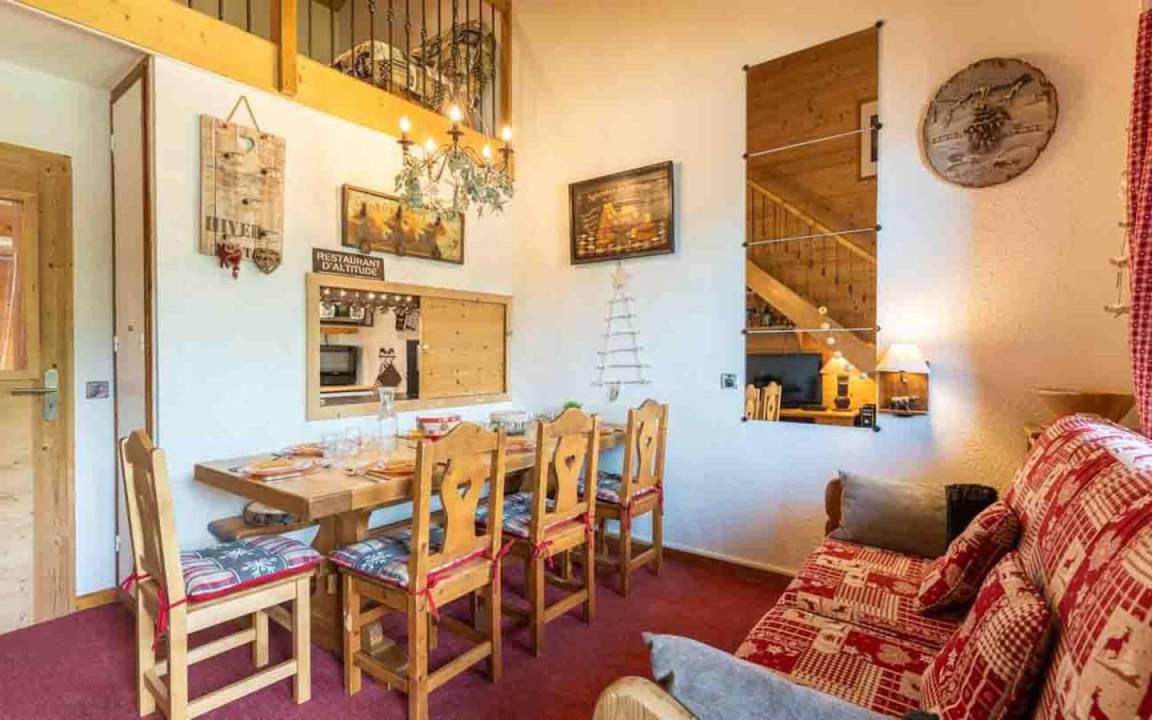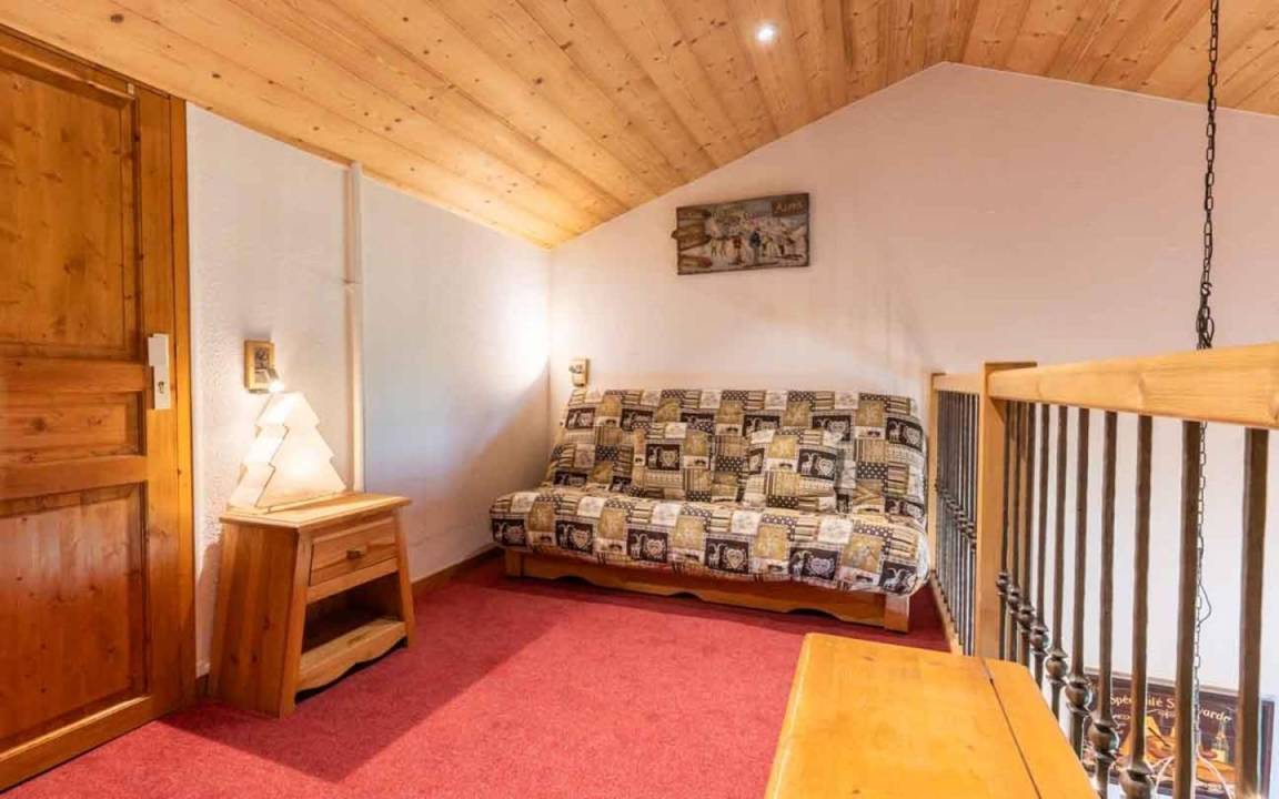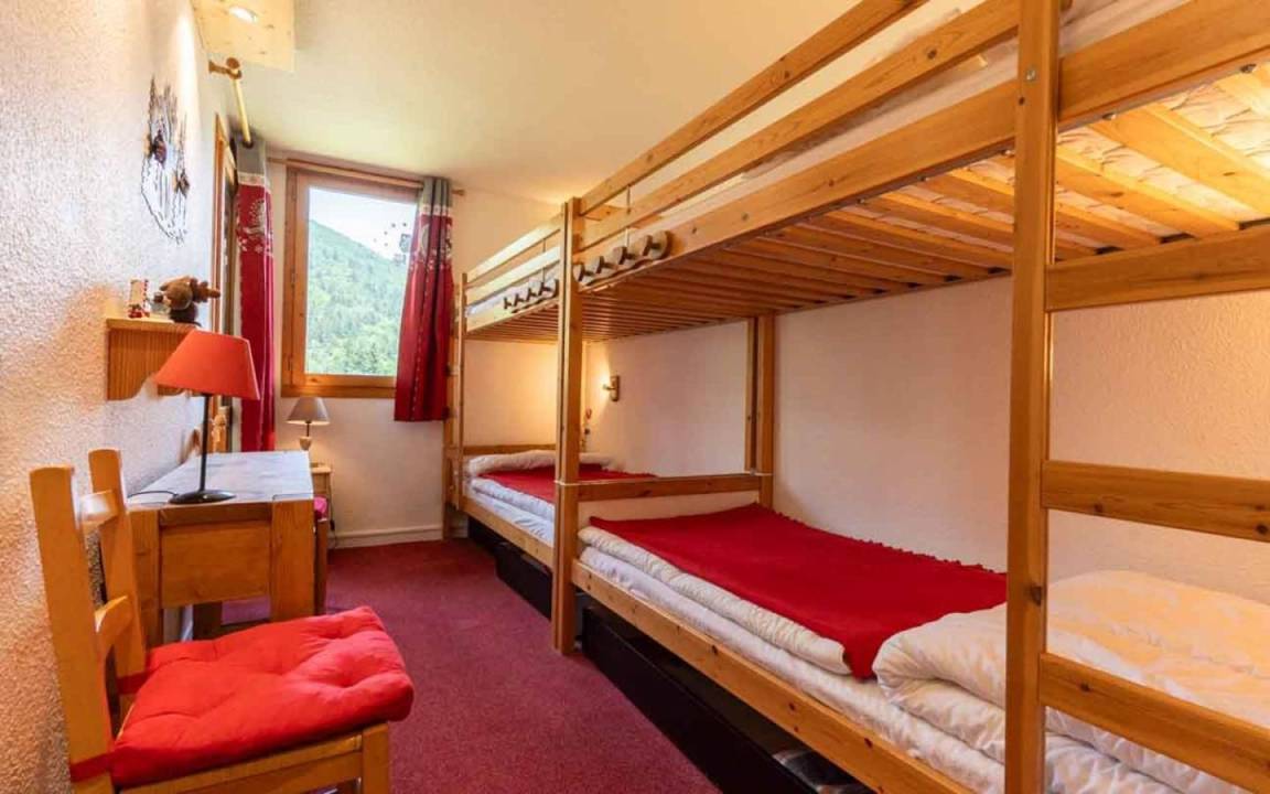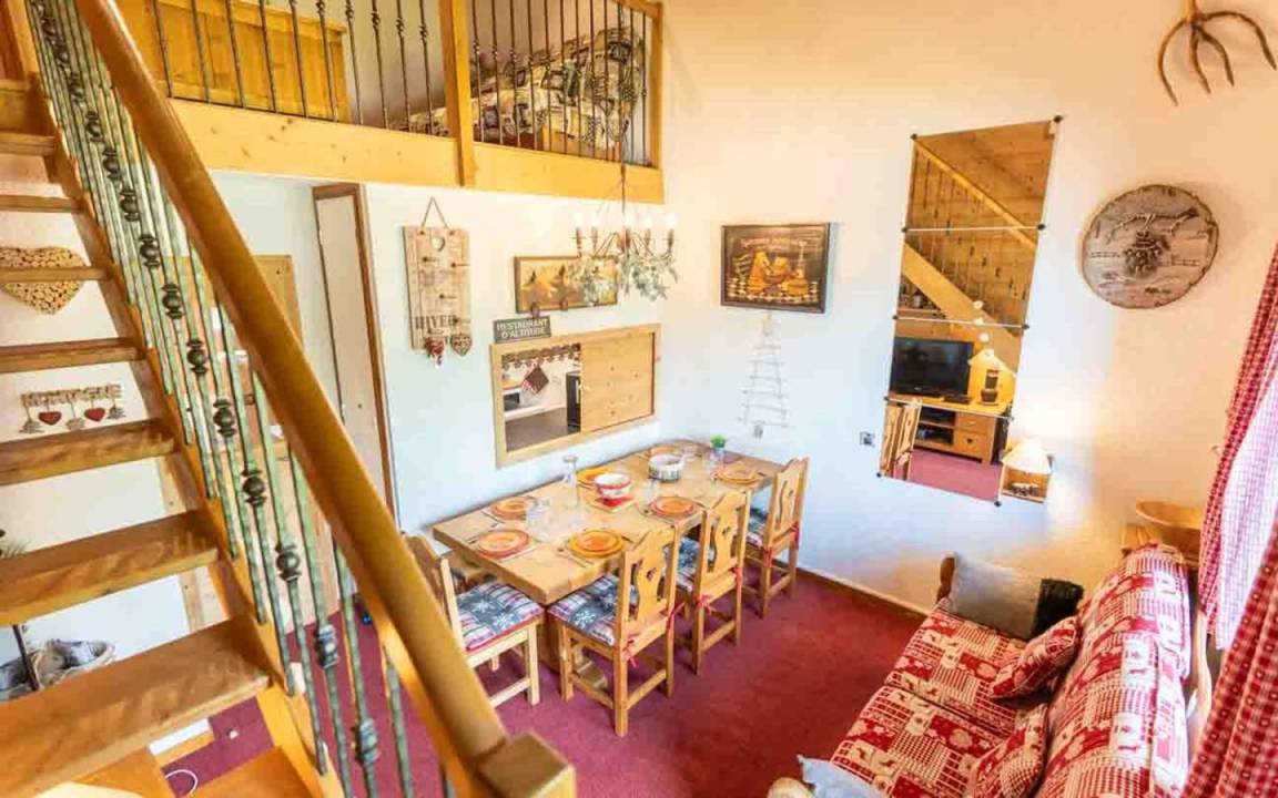 Fläche von ungefähr 61 m². 4te Etage. Orientierung : Nord, West. Blick berg und Station. Niveau 0 : Wohnzimmer. Schlafzimmer mit 4 Stockbetten. Kochnische mit Wasserkocher, Kaffeemaschine, Backofen, Toaster, Geschirrspülmaschine, 2 Herdplatten. Badezimmer mit Badewanne. separates WC. Niveau 1 : Schlafzimmer mit Doppelbett. Zwischengeschoss mit Klappschlafcouch. Waschräume mit Dusche, WC. Die oberen Betten sind nicht für Kinder unter 6 Jahren geeignet.