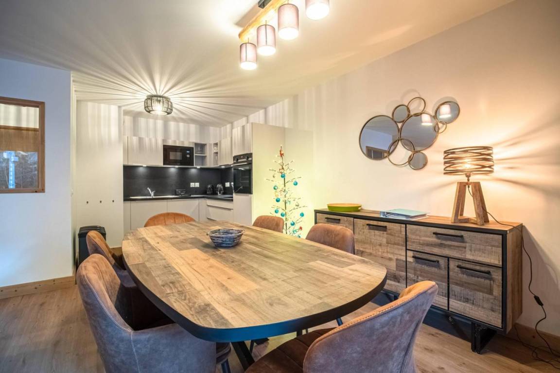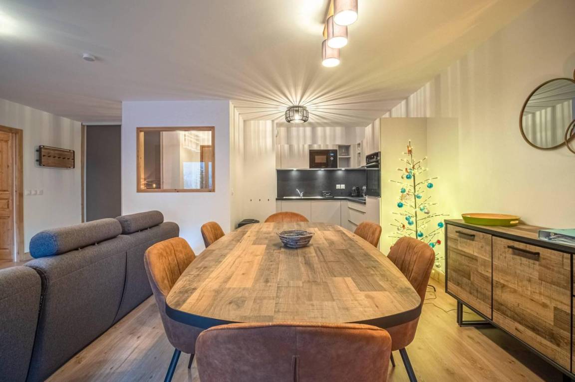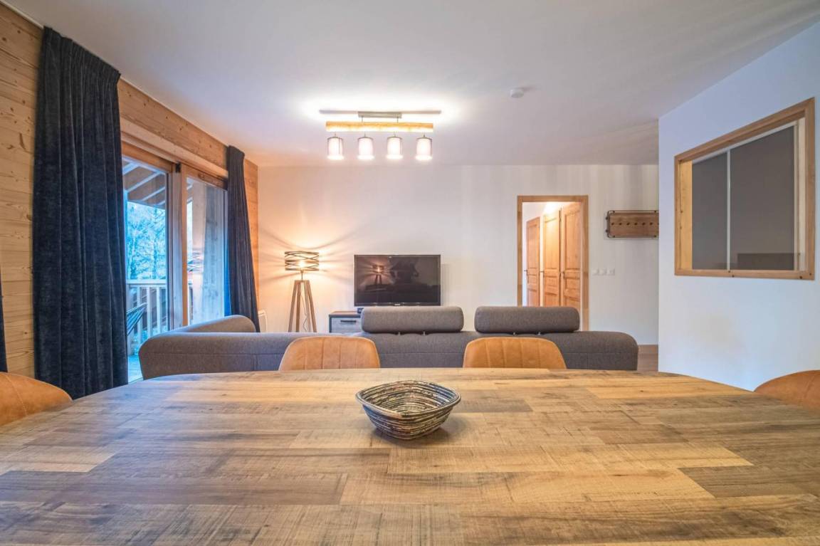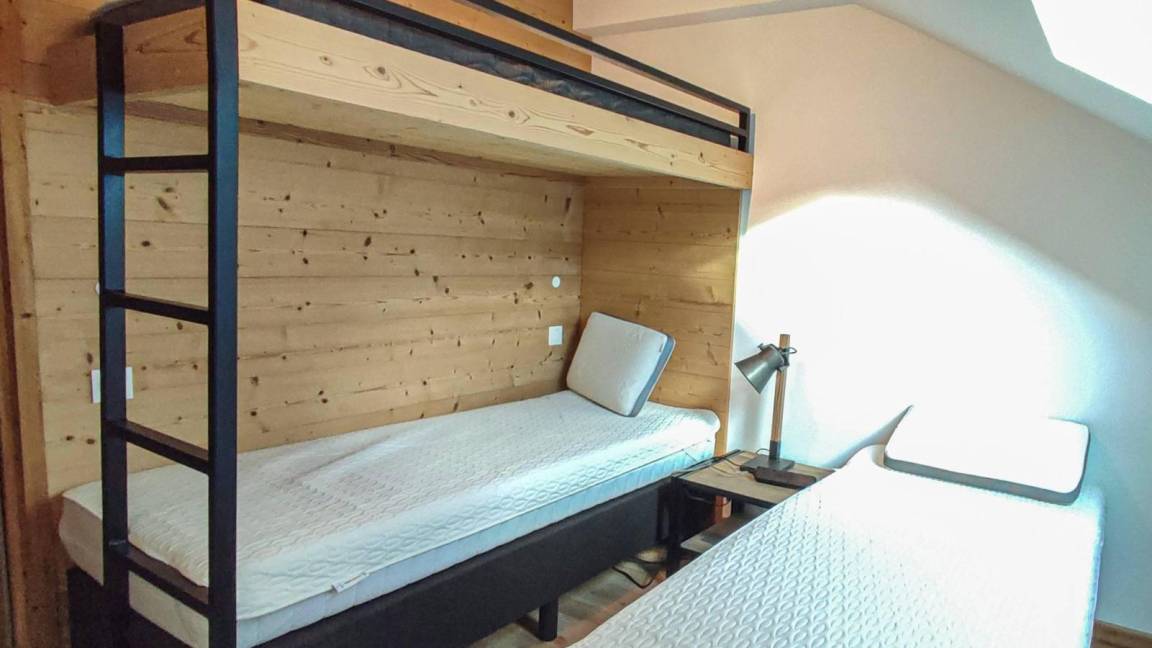 Fläche von ungefähr 66 m² enthält 7 m² unter 1,80 m. 5te Etage. Orientierung : Süd, Süd-West. Blick berg. Diele. Wohnzimmer mit Klappschlafcouch (160x200). Schlafzimmer mit Stuhl, Doppelbett (160x200). Schlafzimmer mit Einzelbett (80x200), Stockbett. Küche mit Fonduegerät, Raclettegerät, 3 Kaffeemaschinen, Backofen, Toaster, Mikrowellenherd, Mixer, Induktionsherdplatten, Kühlschrank. Badezimmer. Waschräume mit Dusche. WC. Waschküche mit Waschmaschine, Wäschetrockner. Balkon mit Stuhl, Tisch. Die oberen Betten sind nicht für Kinder unter 6 Jahren geeignet.