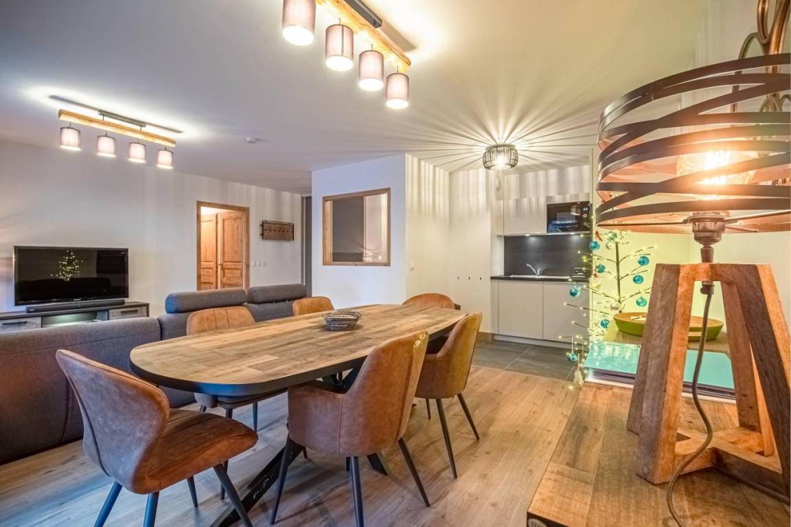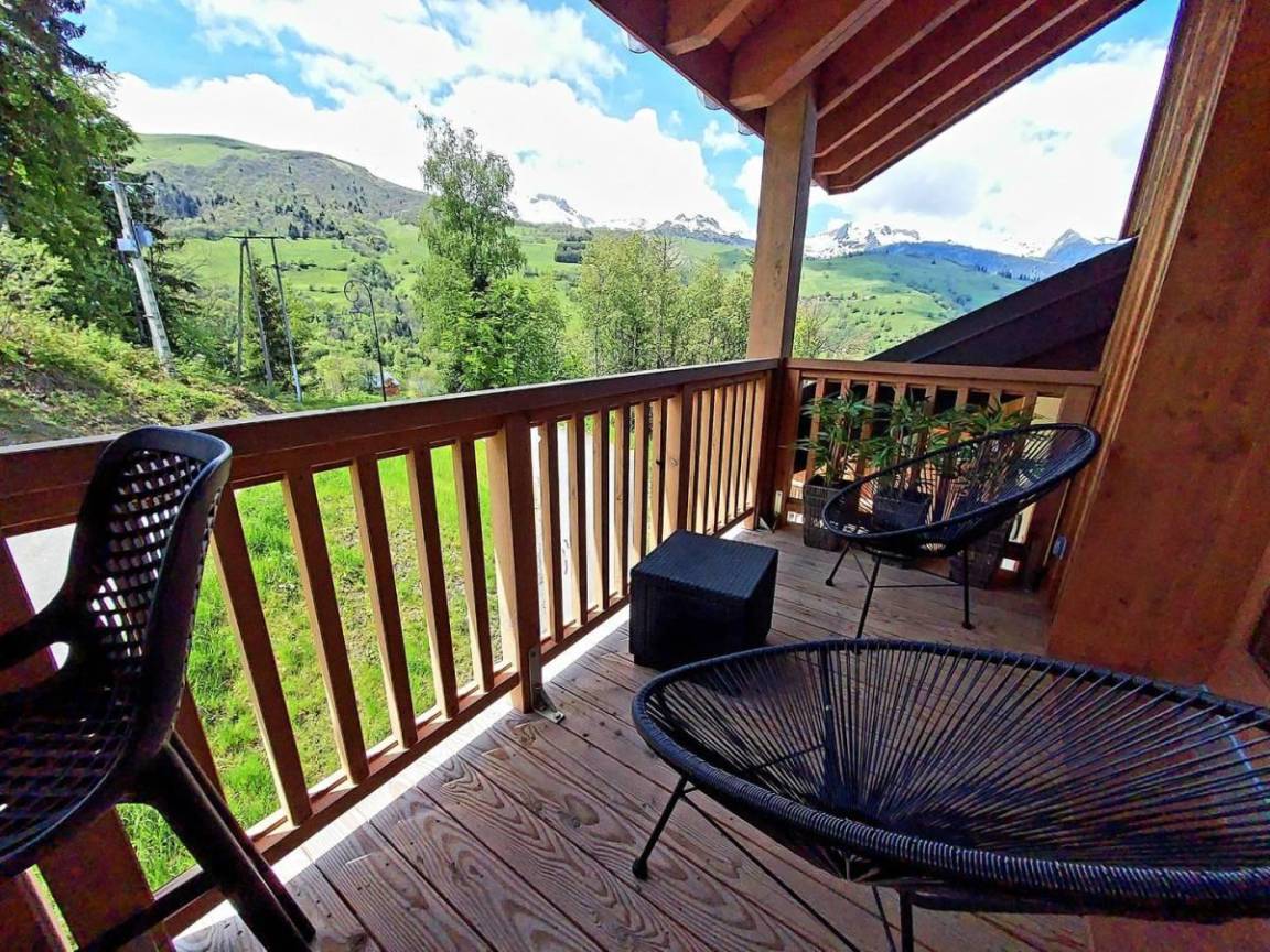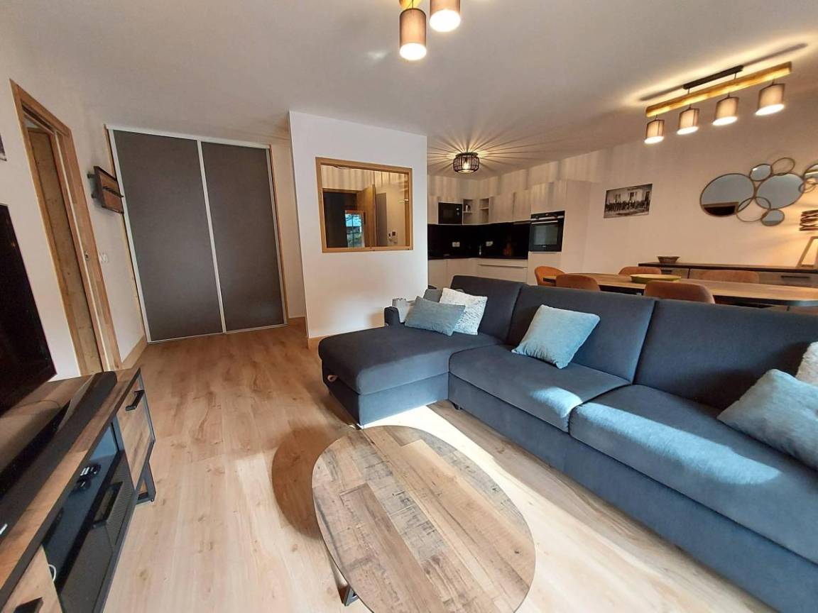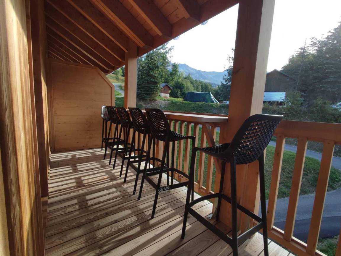 Fläche von ungefähr 66 m² enthält 7 m² unter 1,80 m. 5te Etage. Orientierung : Süd, Süd-West. Blick berg. Diele. Wohnzimmer mit Klappschlafcouch (160x200). Schlafzimmer mit Stuhl, Doppelbett (160x200). Schlafzimmer mit Einzelbett (80x200), Stockbett. Küche mit Fonduegerät, Raclettegerät, 3 Kaffeemaschinen, Backofen, Toaster, Mikrowellenherd, Mixer, Induktionsherdplatten, Kühlschrank. Badezimmer. Waschräume mit Dusche. WC. Waschküche mit Waschmaschine, Wäschetrockner. Balkon mit Stuhl, Tisch. Die oberen Betten sind nicht für Kinder unter 6 Jahren geeignet.