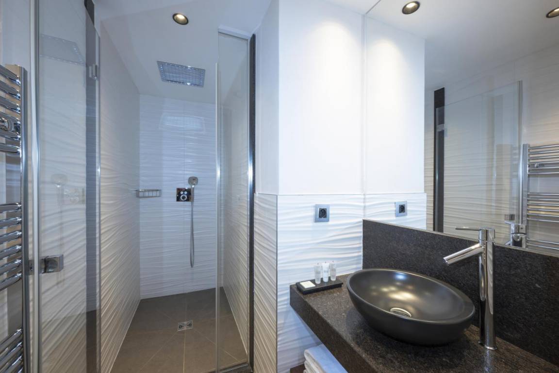 Fläche von ungefähr 100 m². Einige als Maisonette. Wohnzimmer mit Klappschlafcouch. Schlafzimmer mit Doppelbett. 2 Schlafzimmer mit 2 Einzelbetten (90x200). Schlafzimmer mit Safe, Dusche, Doppelbett, WC. Küche mit Wasserkocher, 2 Kaffeemaschinen, , kleiner Backofen mit Mikrowellenfunktion, Toaster, Geschirrspülmaschine, Induktionsherdplatten. Badezimmer mit Badewanne, Haartrockner, Handtuchtrockner. separates WC. Balkon mit Gartentisch und -stühle.