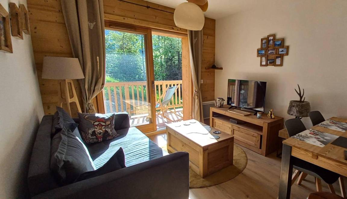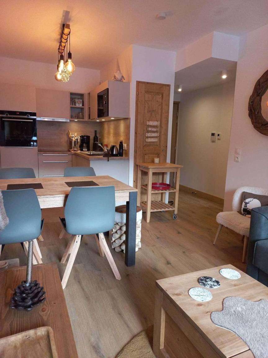 Fläche von ungefähr 51 m². 3te Etage. Orientierung : Süd, Süd-West. Blick berg. Wohnzimmer. Schlafzimmer mit Doppelbett (140x200), einfaches Mezzanine Bett. Schlafzimmer mit Doppelbett (160x200). Küche mit Fonduegerät, Raclettegerät, Wasserkocher, Kaffeemaschine (Nespresso), Backofen, Toaster, Geschirrspülmaschine, Mikrowellenherd, 2 Glaskeramikkochfelder, Kühlschrank. Badezimmer mit Haartrockner. Waschräume mit Dusche. WC. Balkon mit Tisch. Waschmaschine, Wäschetrockner.