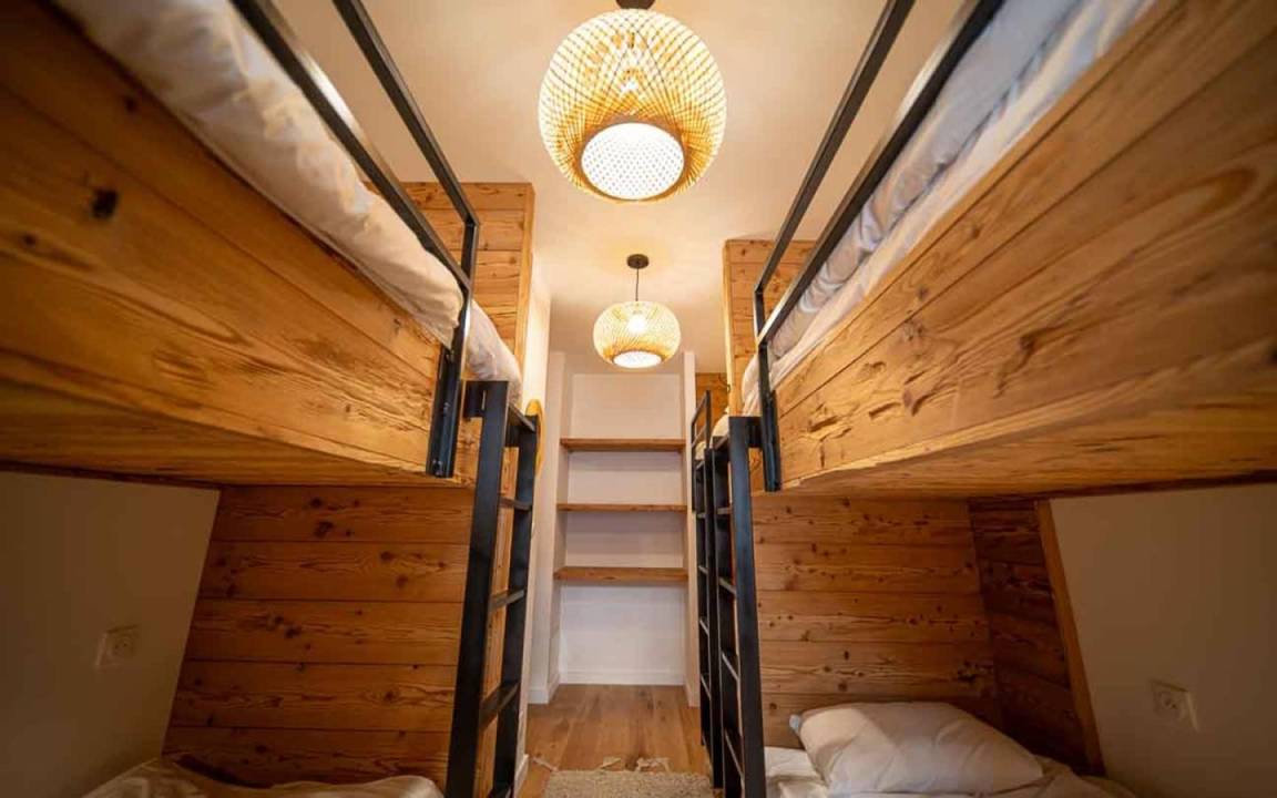 Das Chalet Abondance, das Platz für bis zu 24 Personen bietet, befindet sich im Stadtteil Charmette von Valmorel. Nur 100 Meter von den ersten Skipisten und 300 Meter von den Skiliften entfernt können Sie in dieser Unterkunft Winteraktivitäten in vollen Zügen genießen und gleichzeitig die Ruhe der Berge genießen. Die 100 Meter entfernte Shuttle-Haltestelle bringt Sie ins Zentrum des Resorts mit all seinen Geschäften und Aktivitäten. Fläche von ungefähr 320 m². 2te Etage. Orientierung : Süd-Ost. Niveau 0 : 2 Schlafzimmer mit Doppelbett (160), Waschraum. 2 separate WCs. Badezimmer mit Dusche. Terrasse. mit 6 Stockbetten. Niveau 1 : Wohnzimmer. Schlafzimmer mit Doppelbett (160), Waschraum. Küche mit Fonduegerät, Raclettegerät, Wasserkocher, 2 Kaffeemaschinen (Delonghi et filtre), Gefrierschrank, Backofen, Toaster, 4 Herdplatten, Kühlschrank. Waschküche mit 2 Waschmaschinen, Kühlschrank. separates WC. Badezimmer mit Badewanne, WC. Terrasse mit . mit 6 Stockbetten. Niveau 2 : 3 Schlafzimmer mit Doppelbett (160), Waschraum, WC. Die oberen Betten sind nicht für Kinder unter 6 Jahren geeignet.