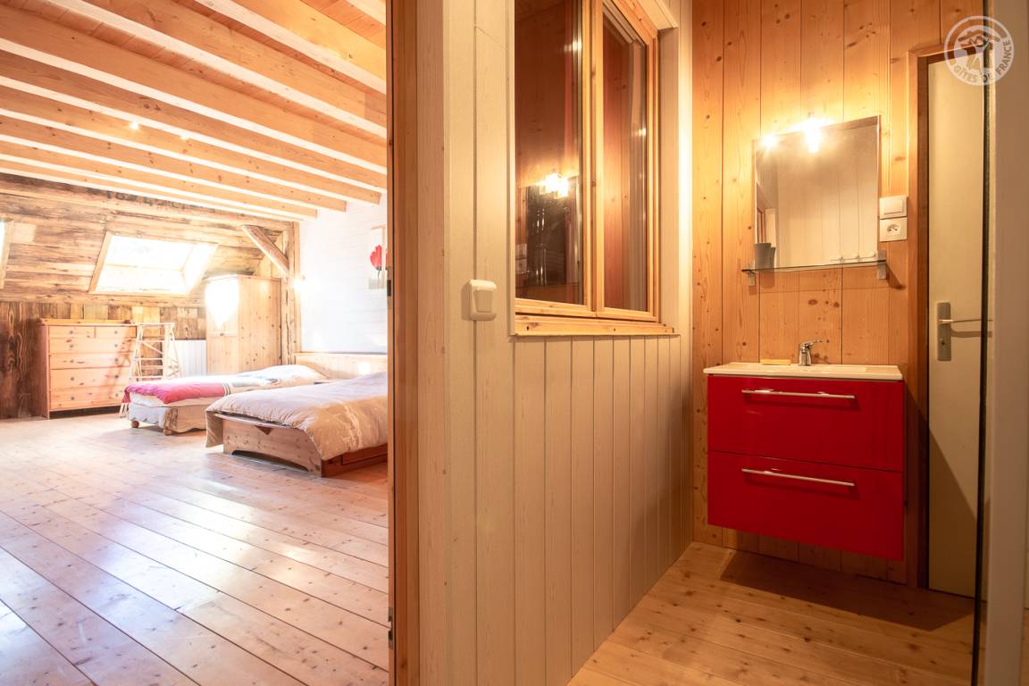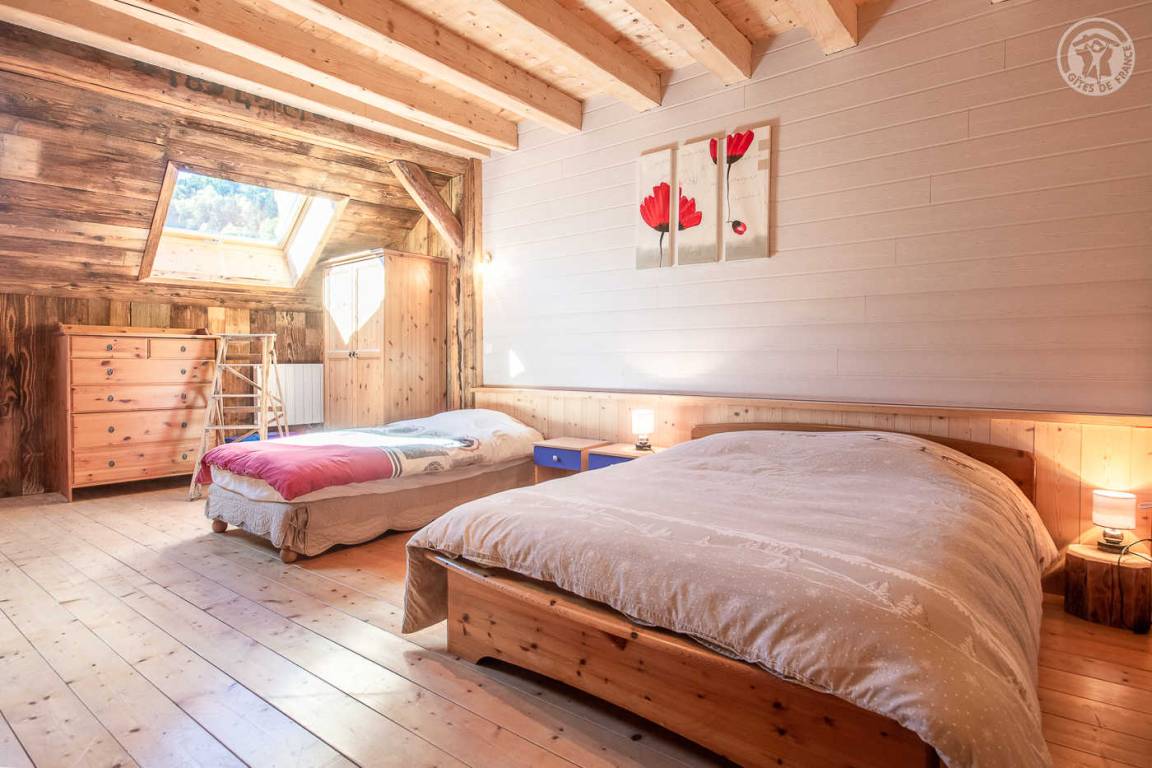 2. Stock: 1 Schlafzimmer (1 Doppelbett 140 x 190 cm + 2 Einzelbetten 90 x 190 cm) mit separatem WC und 2 privaten Badezimmern.