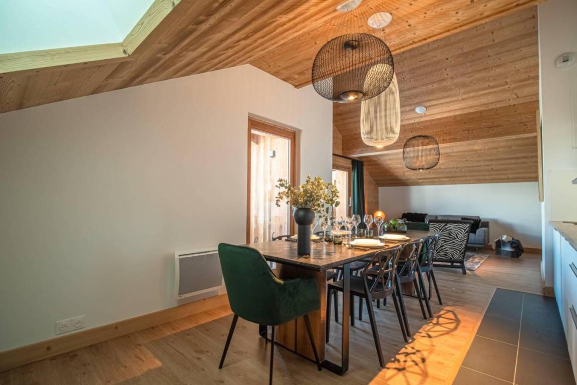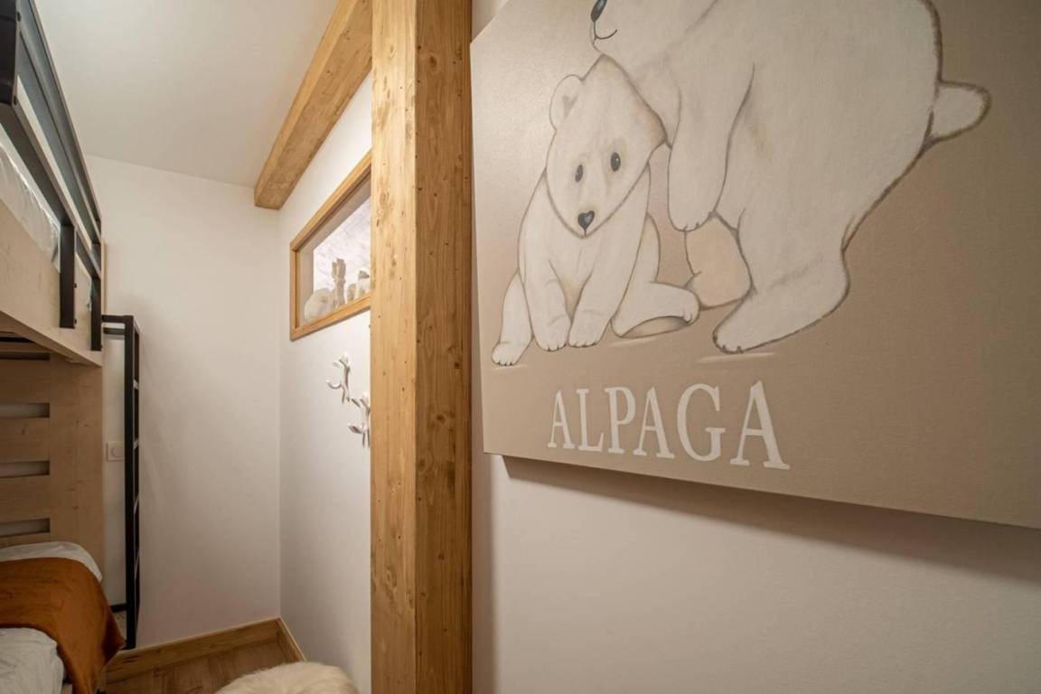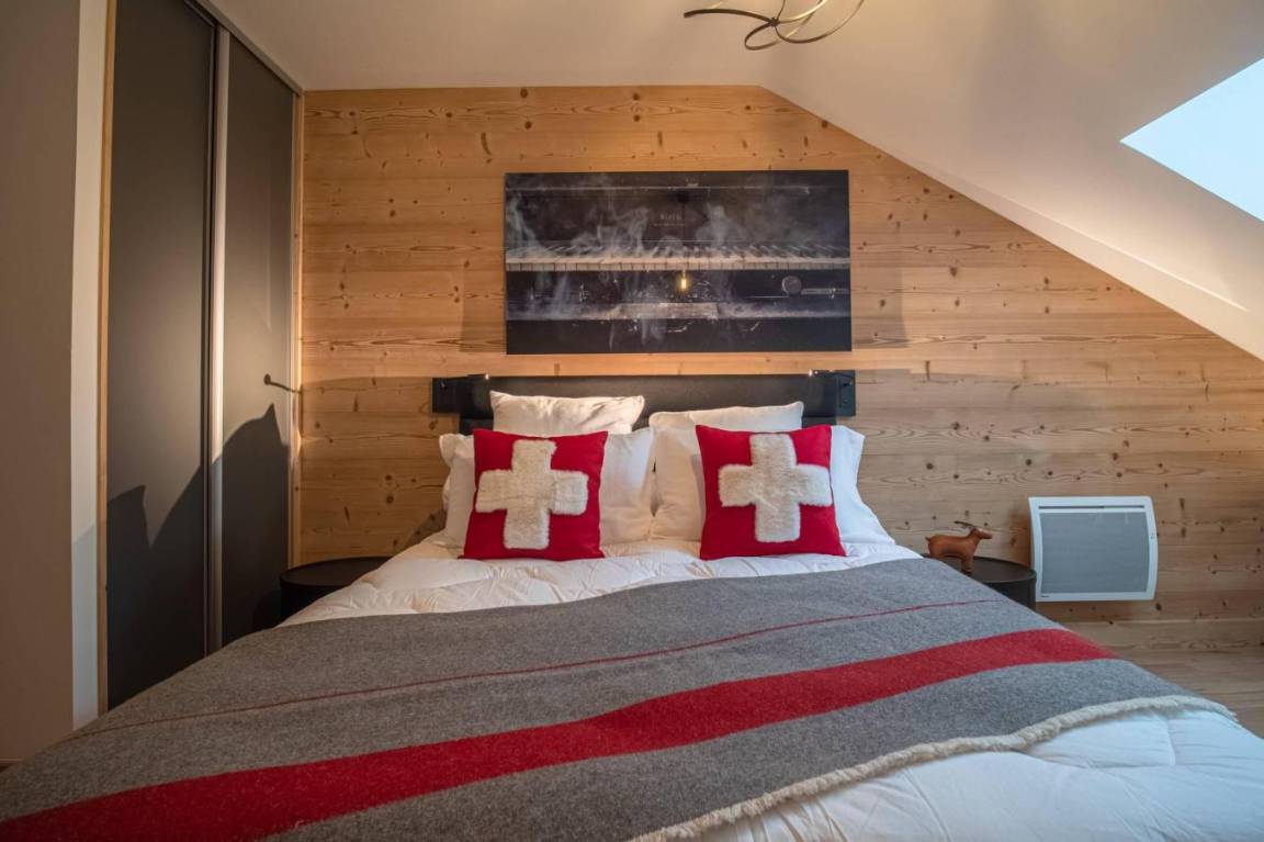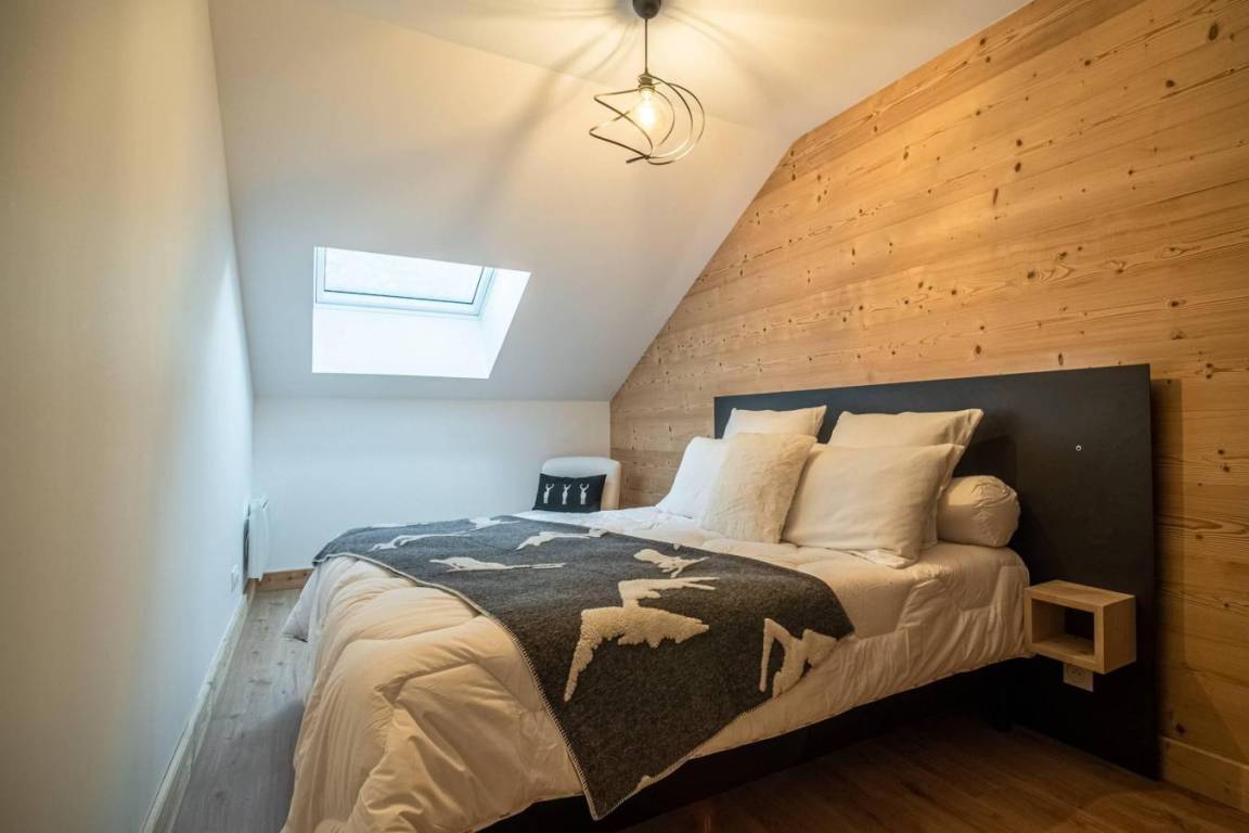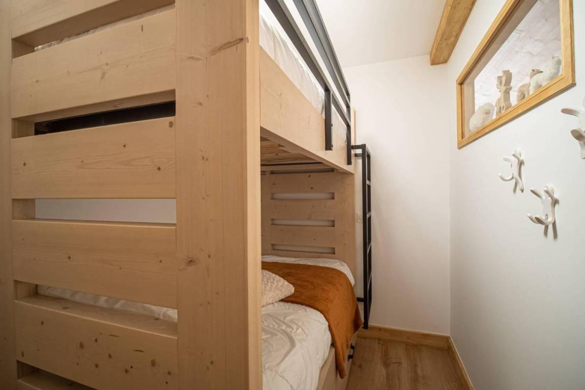 Fläche von ungefähr 99 m² enthält 15 m² unter 1,80 m. 3te Etage. Orientierung : West. Diele. Wohnzimmer mit Heizkörper. 3 Schlafzimmer mit Doppelbett (160x200). offener Schlafbereich mit Stockbett. Küche mit Fonduegerät, Raclettegerät, Kaffeemaschine, Backofen, Toaster, Mikrowellenherd, Mixer, Glaskeramikkochfelder, Kühl-Gefrier-Kombination. Badezimmer. Waschräume mit Dusche. WC. Balkon. Die oberen Betten sind nicht für Kinder unter 6 Jahren geeignet.