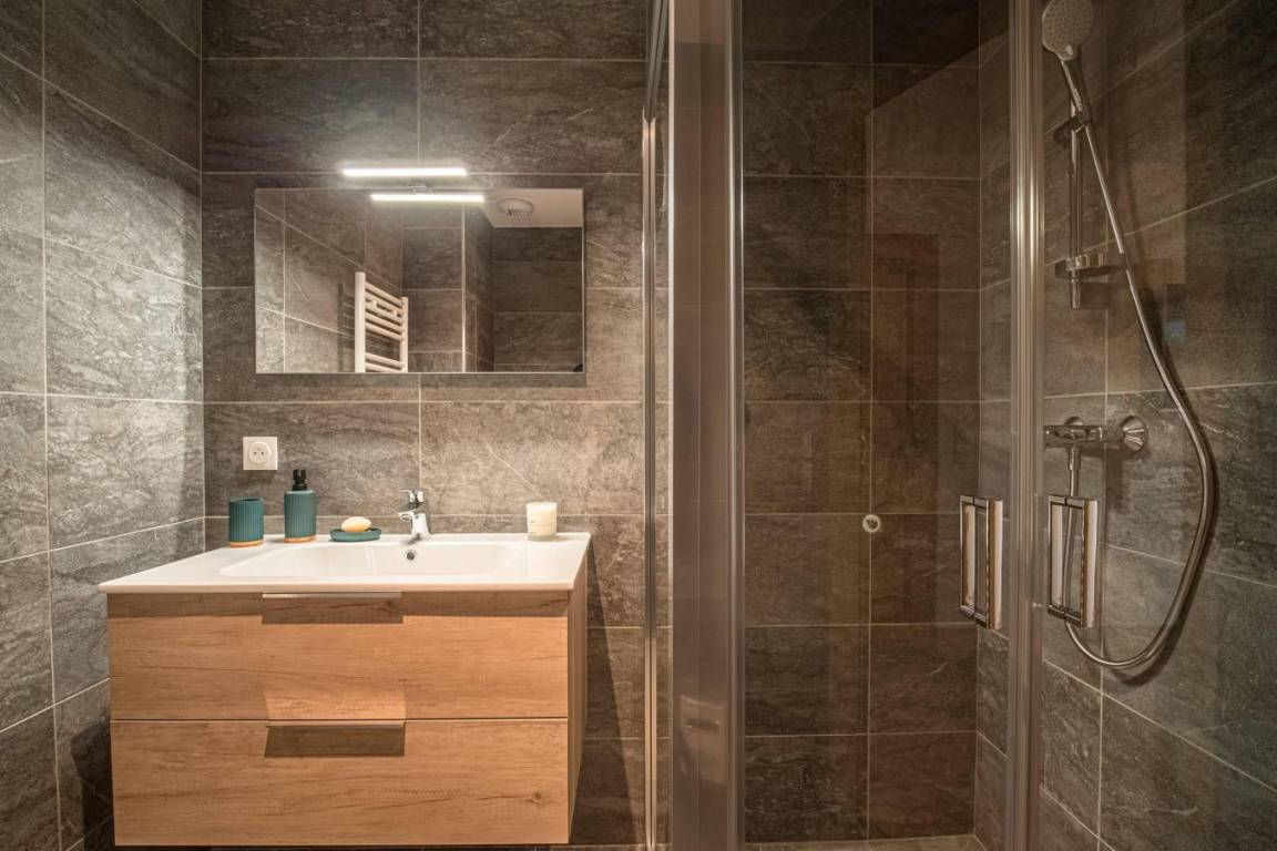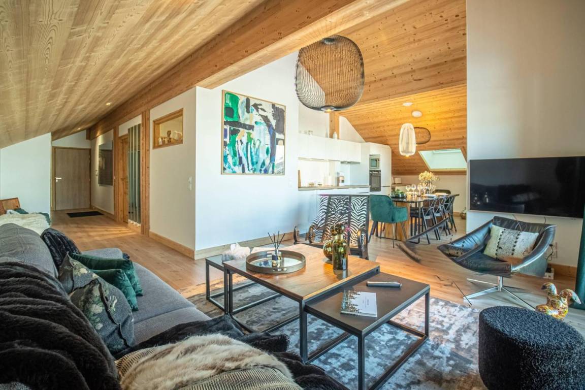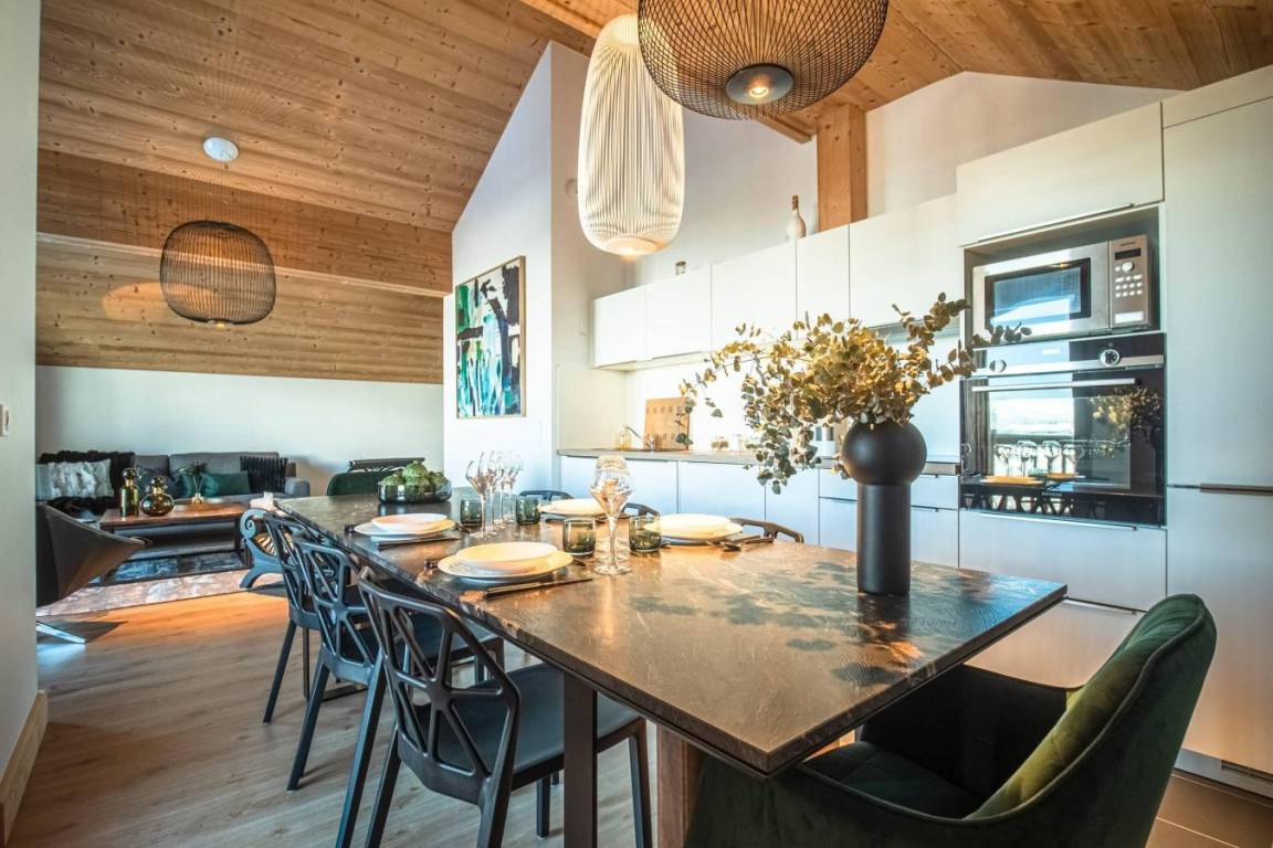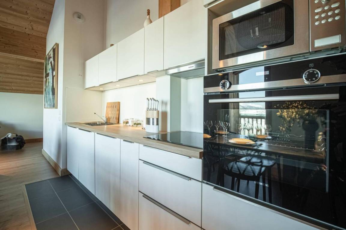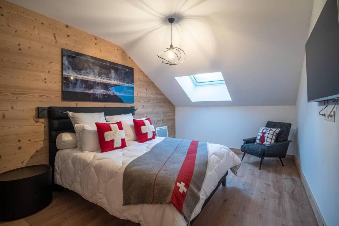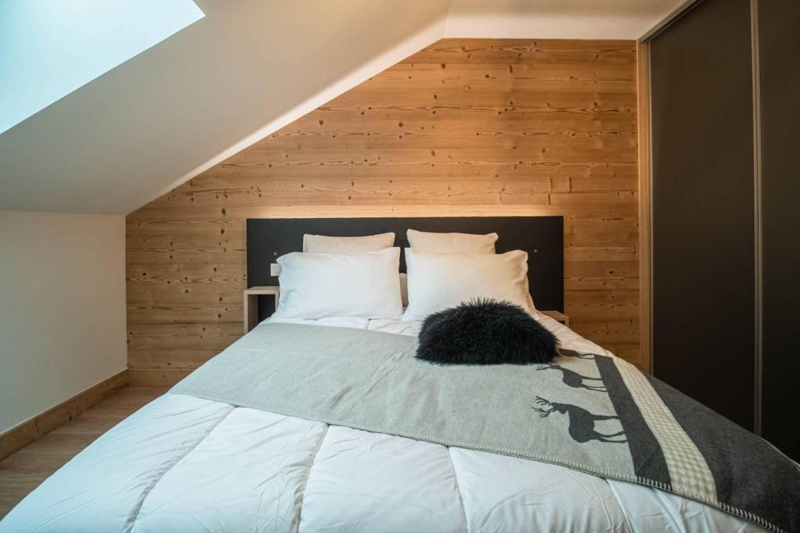 Fläche von ungefähr 99 m² enthält 15 m² unter 1,80 m. 3te Etage. Orientierung : West. Diele. Wohnzimmer mit Heizkörper. 3 Schlafzimmer mit Doppelbett (160x200). offener Schlafbereich mit Stockbett. Küche mit Fonduegerät, Raclettegerät, Kaffeemaschine, Backofen, Toaster, Mikrowellenherd, Mixer, Glaskeramikkochfelder, Kühl-Gefrier-Kombination. Badezimmer. Waschräume mit Dusche. WC. Balkon. Die oberen Betten sind nicht für Kinder unter 6 Jahren geeignet.