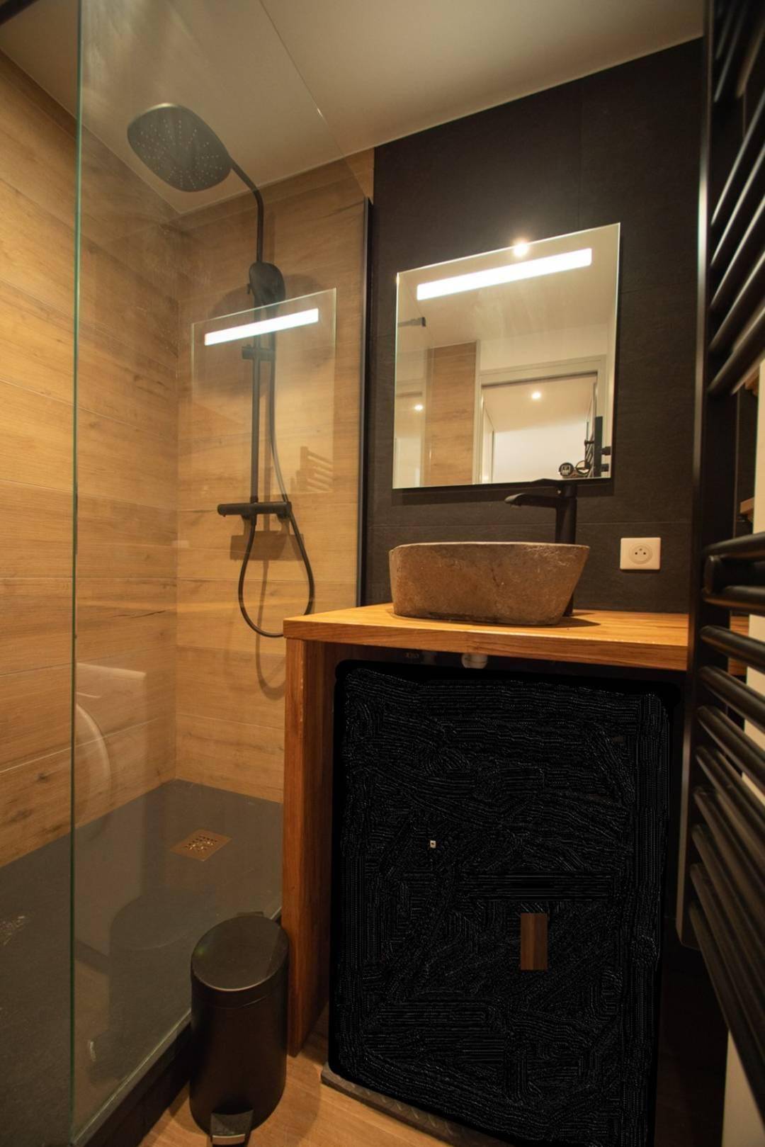 Fläche von ungefähr 34 m². 1te Etage. Orientierung : Süd-Ost. Blick berg. Wohnzimmer mit Klappschlafcouch (140). Schlafzimmer mit Ausziehschlafcouch für 2 Personen, 2 Stockbetten. Kochnische mit Wasserkocher, Kaffeemaschine (Nespresso), Backofen, Mikrowellenherd, 4 Induktionsherdplatten, Kühlschrank, Teekanne. separates WC. Badezimmer mit Handtuchtrockner. Balkon mit Gartentisch und -stühle. Die oberen Betten sind nicht für Kinder unter 6 Jahren geeignet.